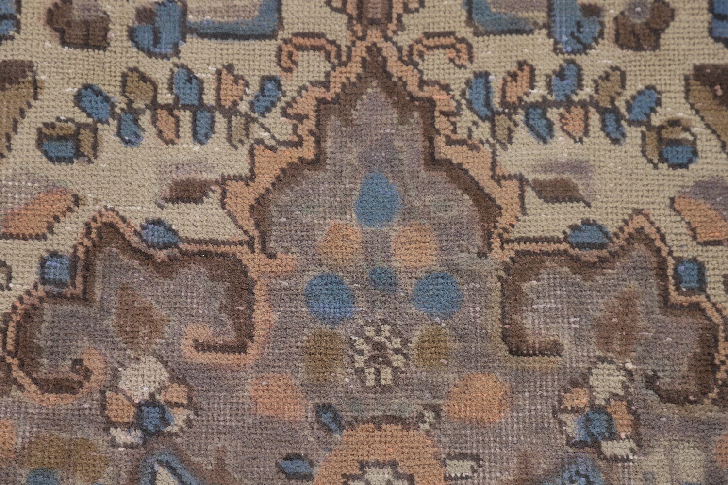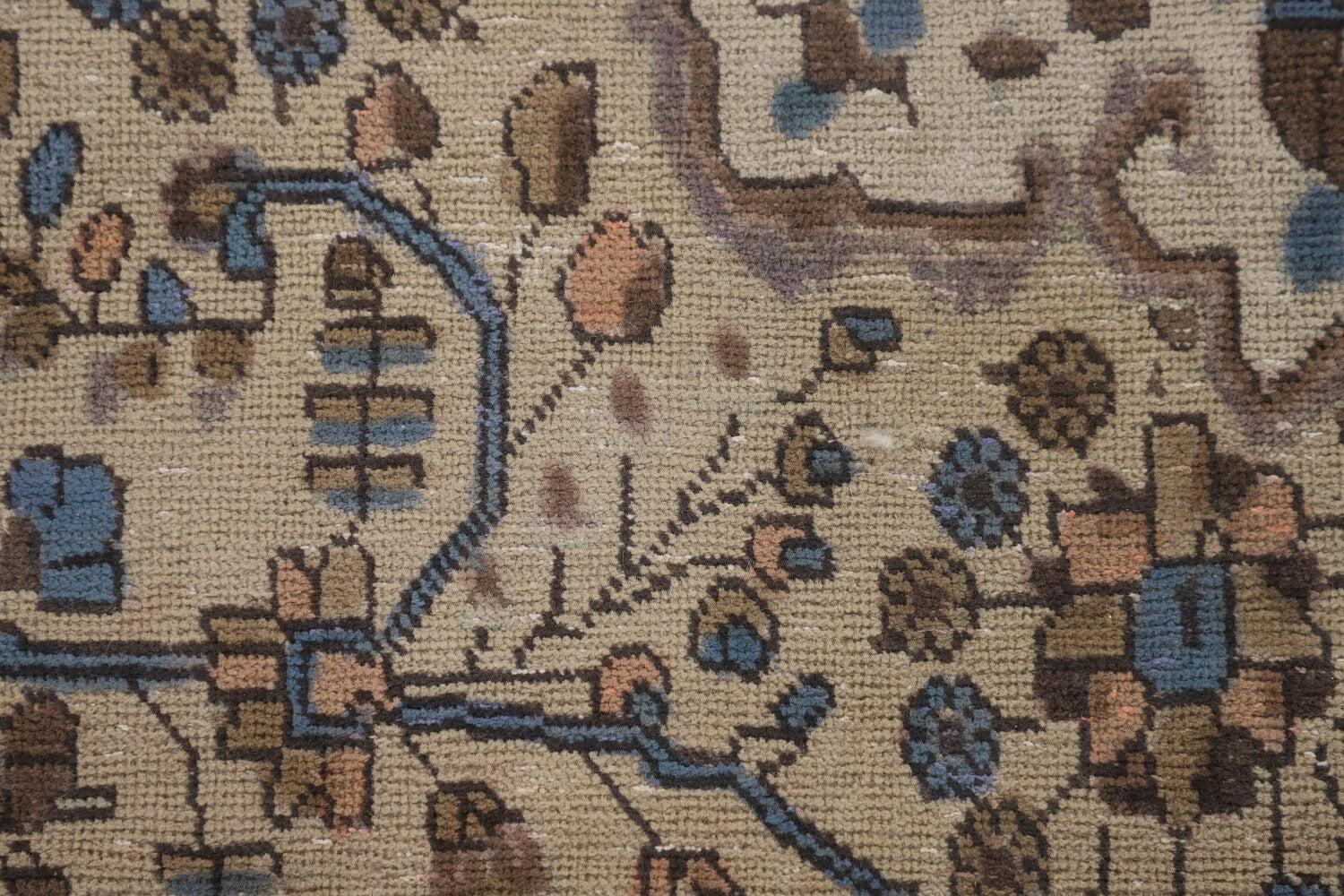 A Beautiful Genuine Persia ( Persia ) Tabriz rug is Hand Knotted by skillful weavers in Persia ( Persia ) with 100% Wool Material. This rug is in Very Good (Evenly Low Pile) condition. dimensions are 9' 10'' X 6' 10'' in foot and 300 X 208 in centimeter. the primary color is Beige & Ivories.