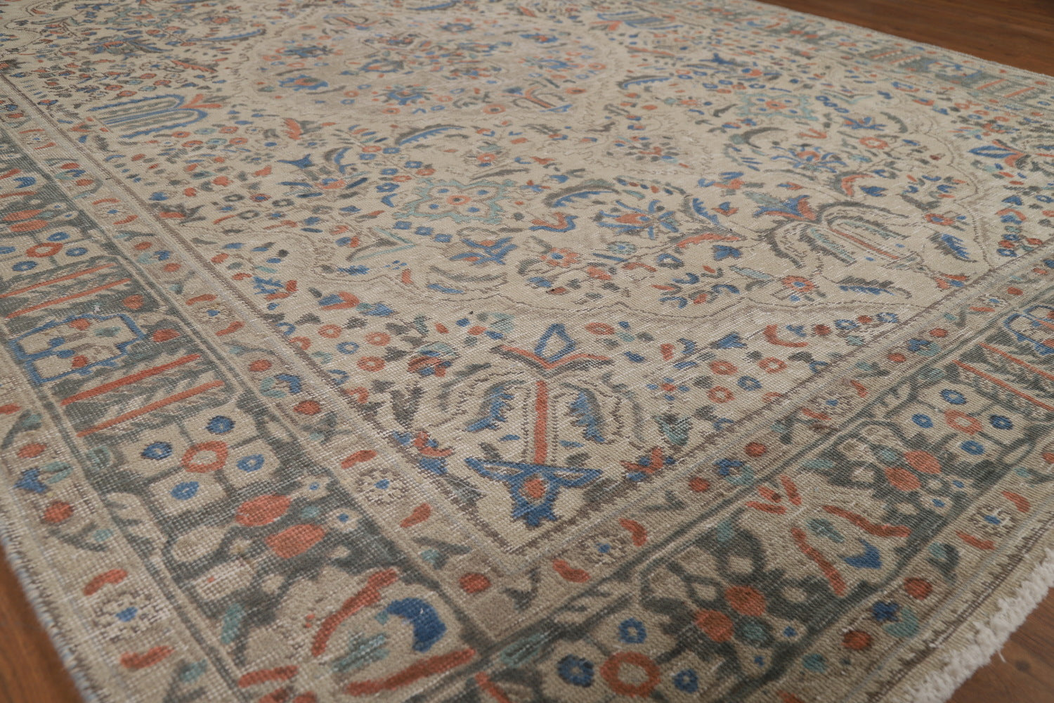 A Beautiful Genuine Persia ( Persia ) Tabriz rug is Hand Knotted by skillful weavers in Persia ( Persia ) with 100% Wool Material. This rug is in Very Good (Evenly Low Pile) condition. dimensions are 9' 7'' X 6' 9'' in foot and 292 X 206 in centimeter. the primary color is Beige & Ivories.