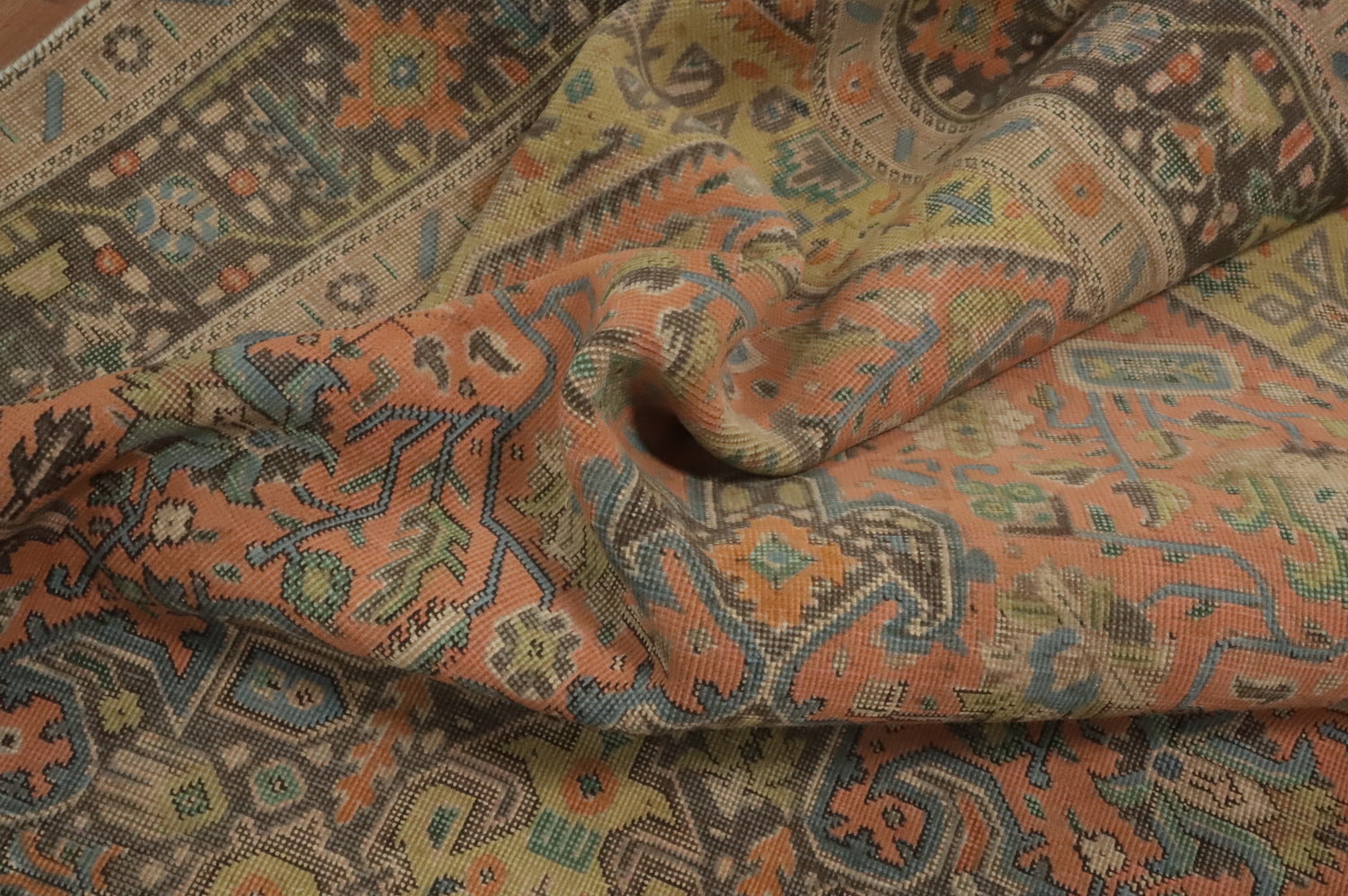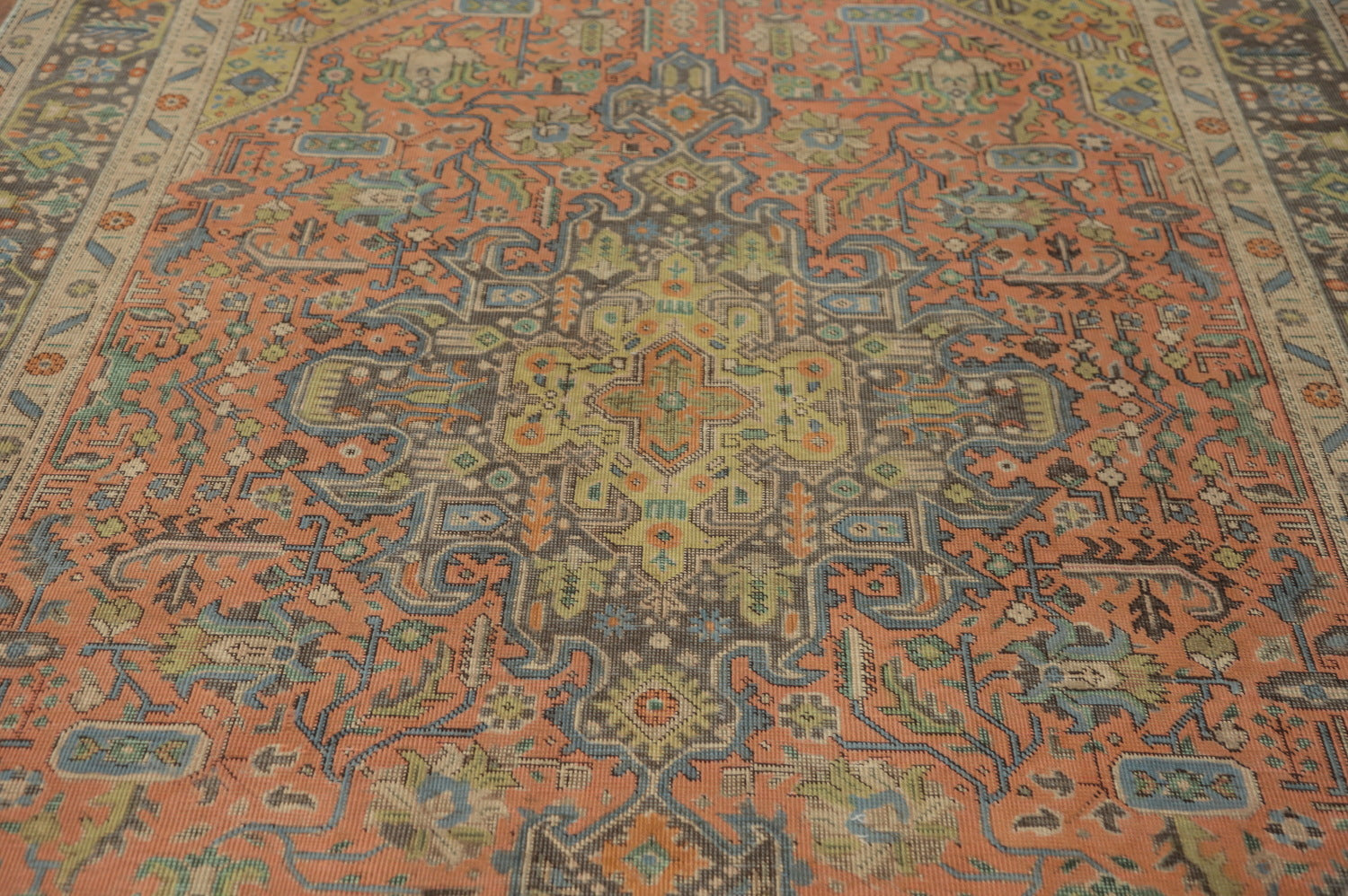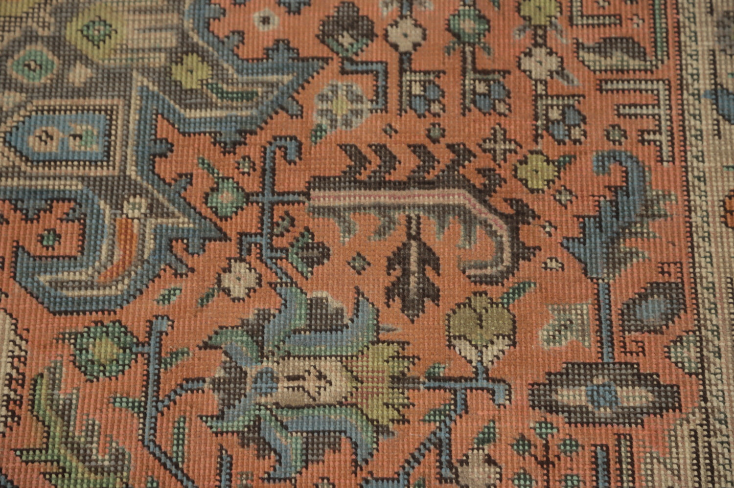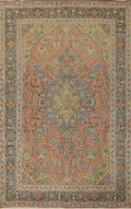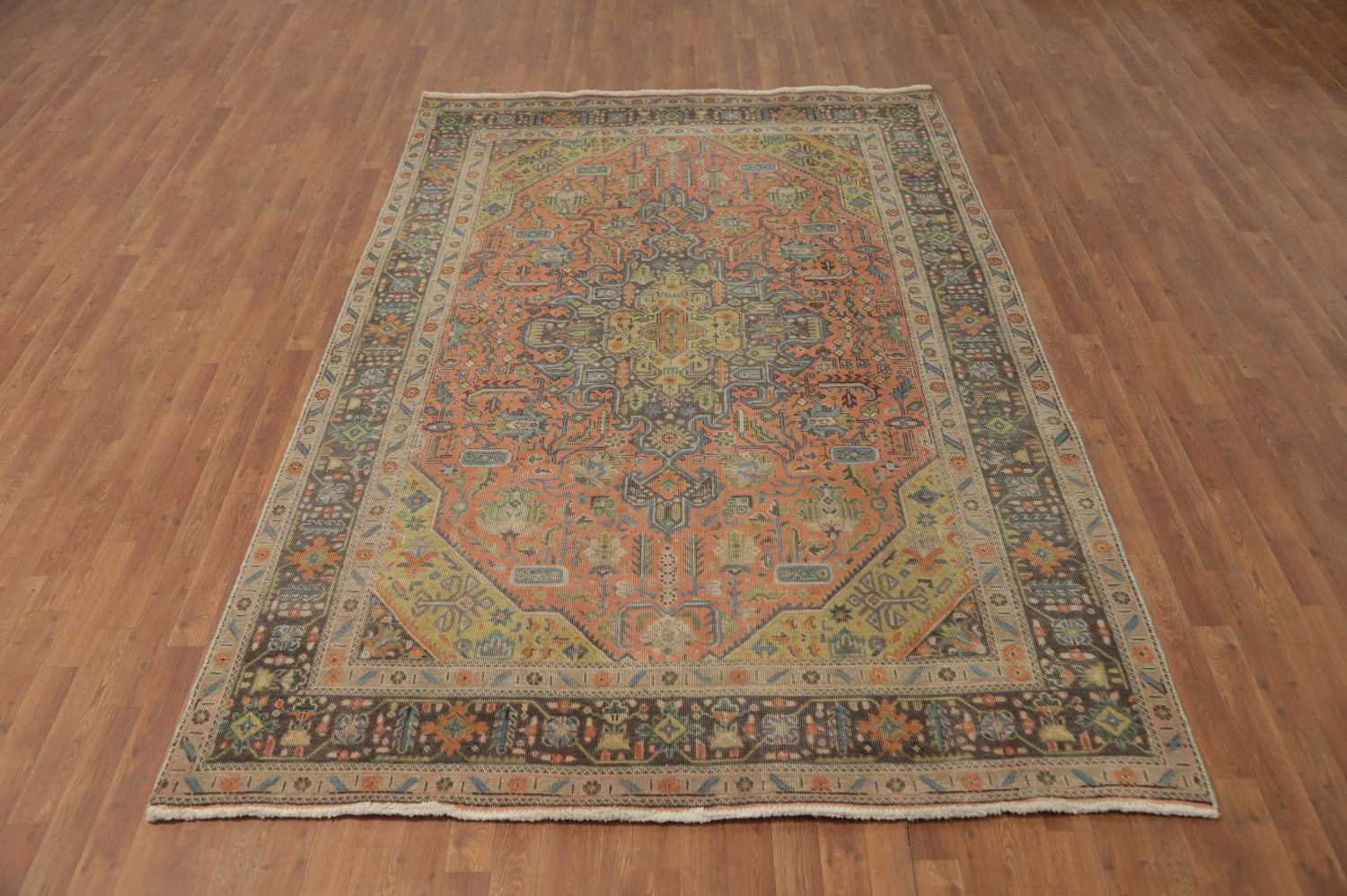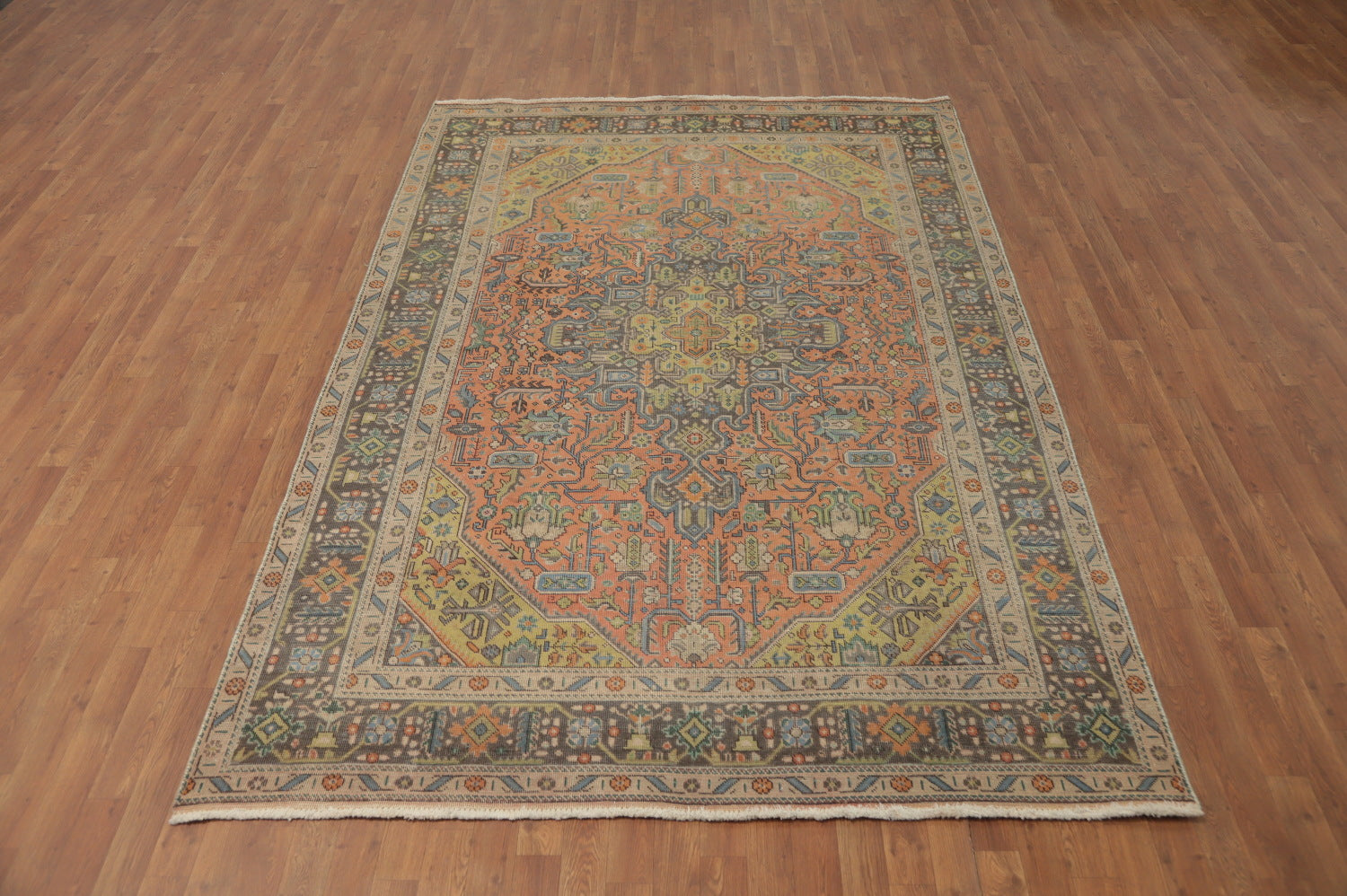 A Beautiful Genuine Persia ( Persia ) Tabriz rug is Hand Knotted by skillful weavers in Persia ( Persia ) with 100% Wool Material. This rug is in Very Good (Evenly Low Pile) condition. dimensions are 9' 6'' X 6' 6'' in foot and 290 X 198 in centimeter. the primary color is Peach.