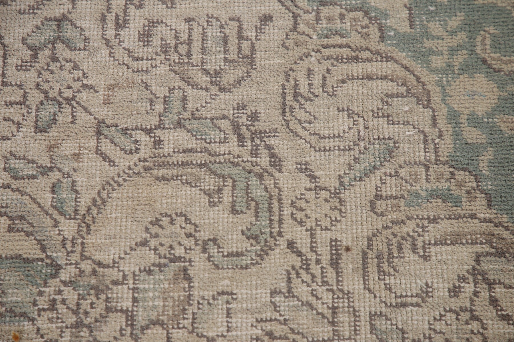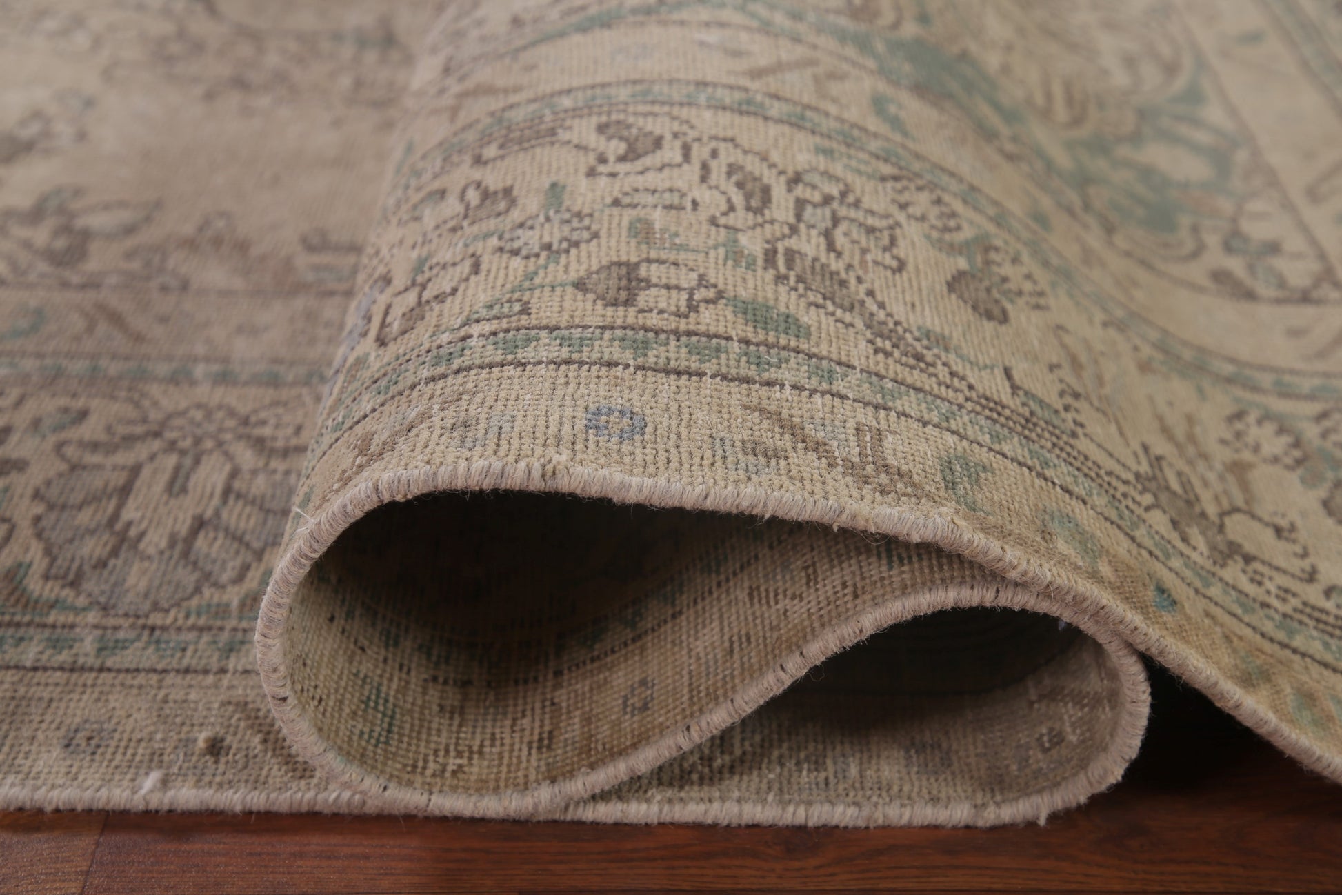A Beautiful Genuine Persia ( Persia ) Tabriz rug is Hand Knotted by skillful weavers in Persia ( Persia ) with 100% Wool Material. This rug is in Very Good (Evenly Low Pile) condition. dimensions are 10' 5'' X 7' 1'' in foot and 318 X 216 in centimeter. the primary color is Beige & Ivories.