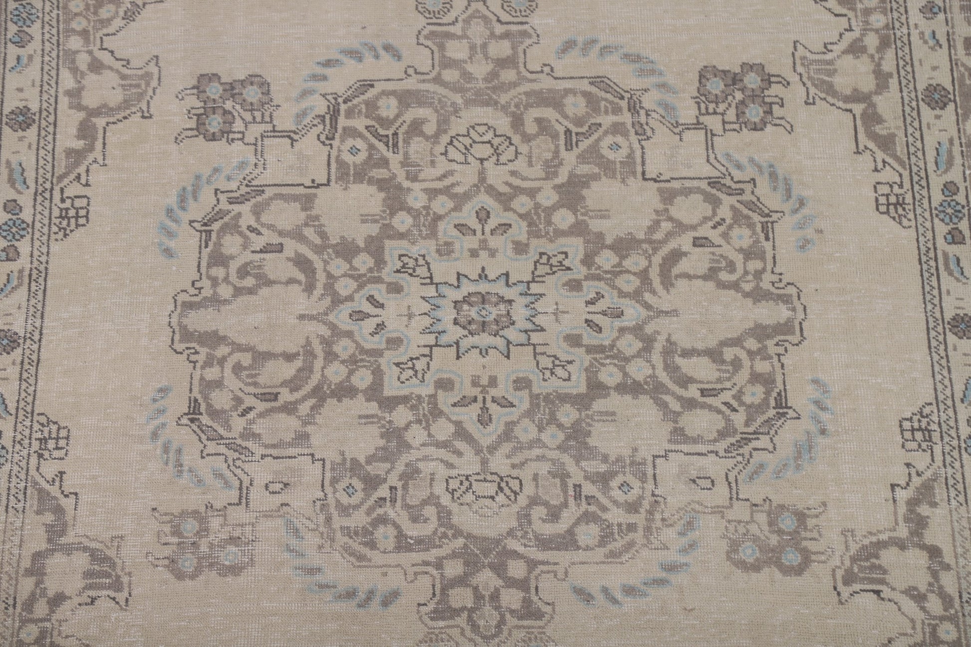 A Beautiful Genuine Persia ( Persia ) Tabriz rug is Hand Knotted by skillful weavers in Persia ( Persia ) with 100% Wool Material. This rug is in Very Good (Evenly Low Pile) condition. dimensions are 9' 2'' X 6' 6'' in foot and 279 X 198 in centimeter. the primary color is Beige & Ivories.
