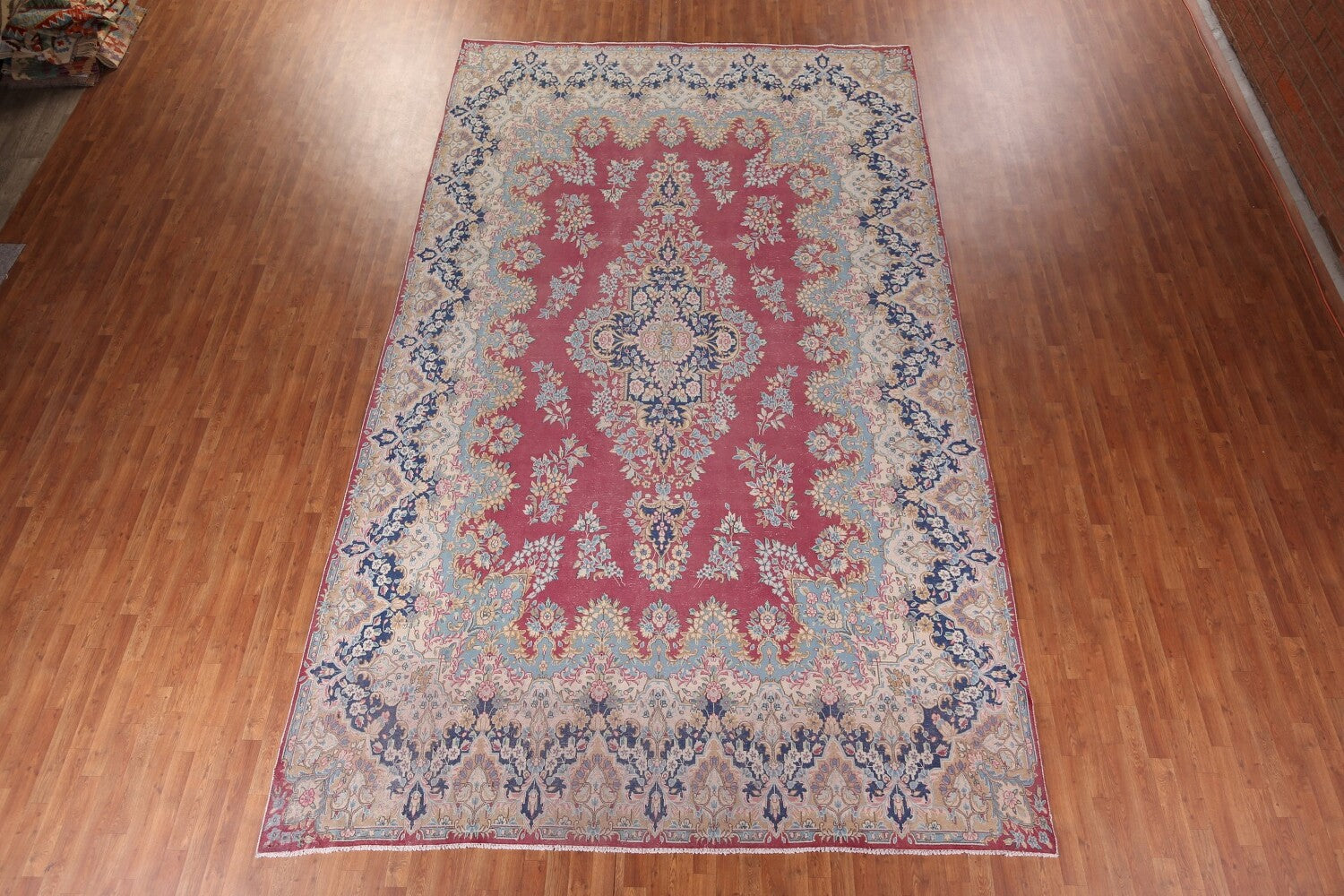 Handmade Wool Vintage Kerman Persian Large Rug 10x16