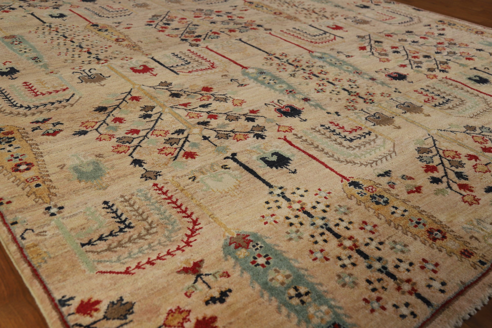 A Beautiful Genuine Pakistan Ziegler rug is Hand Knotted by skillful weavers in Pakistan with 100% Wool Material. This rug is in New, First Quality condition. dimensions are 9' 8'' X 6' 3'' in foot and 295 X 191 in centimeter. the primary color is Multi-Colored.