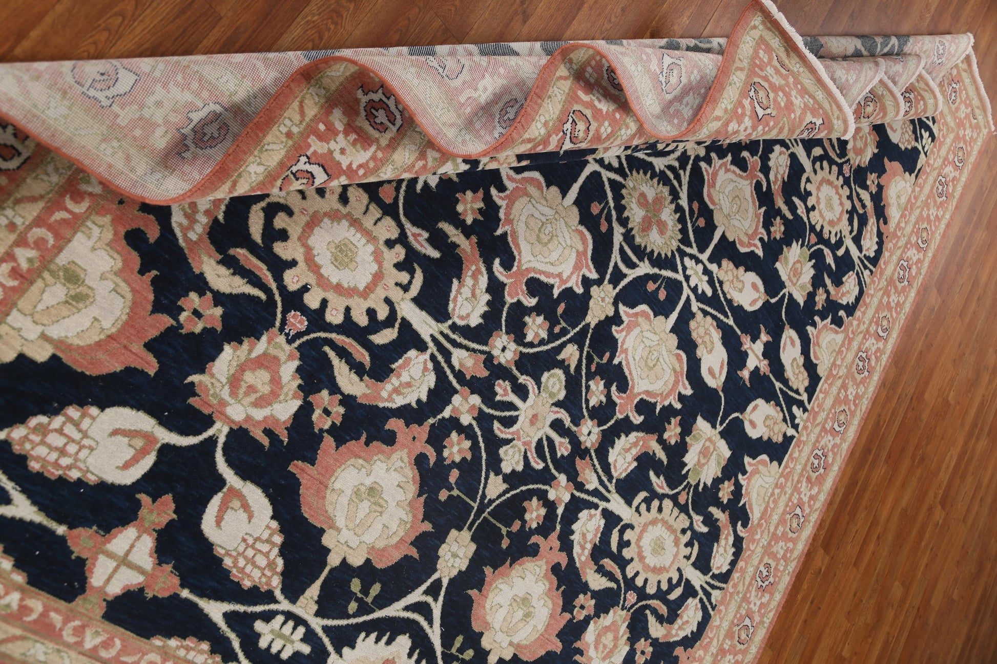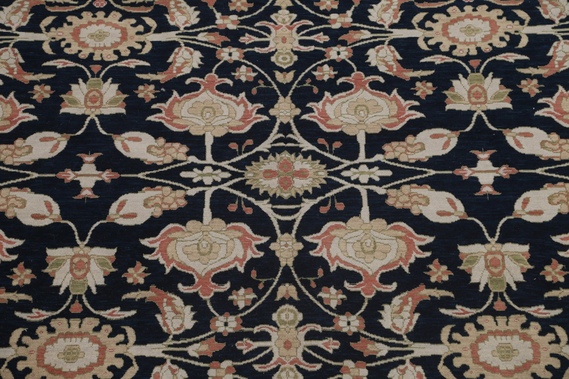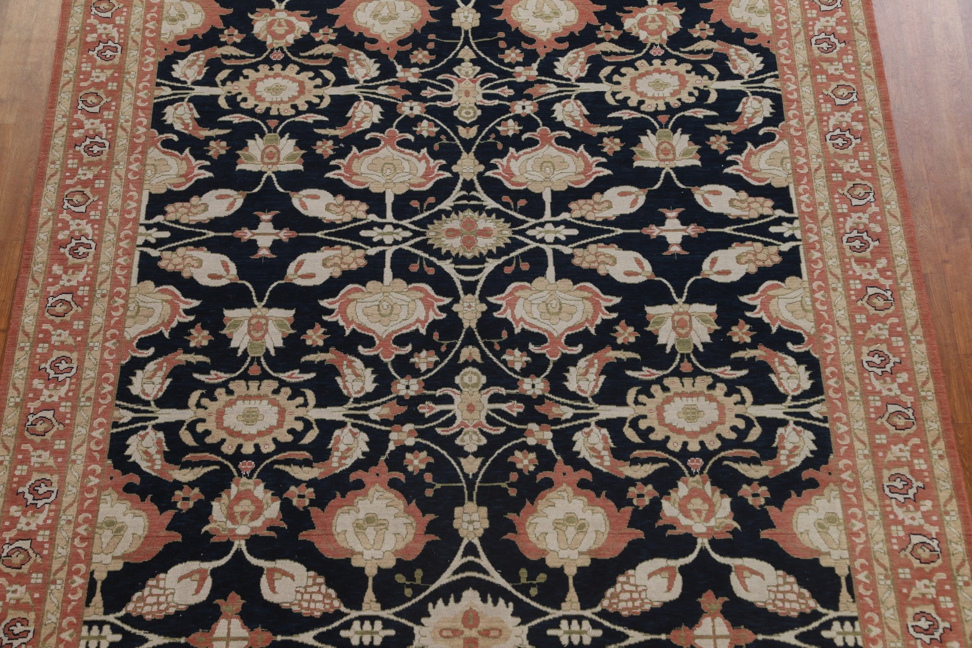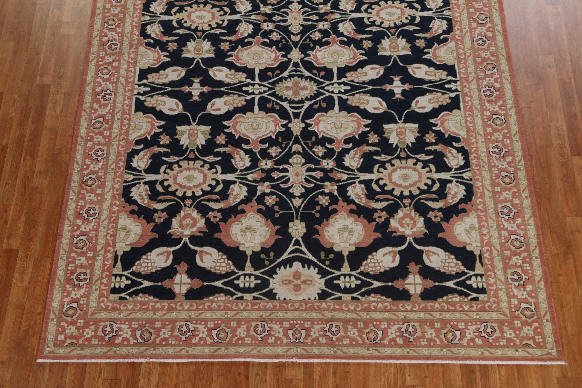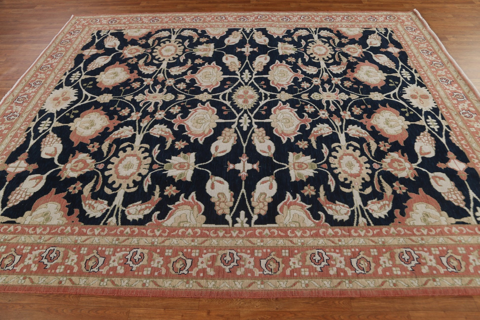 A Beautiful Genuine Turkey Ziegler rug is Hand Knotted by skillful weavers in Turkey with 100% Wool Material. This rug is in New, First Quality condition. dimensions are 9' 9'' X 7' 10'' in foot and 297 X 239 in centimeter. the primary color is Navy Blue & Blues.