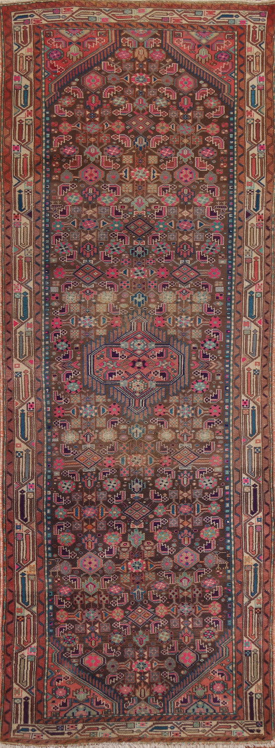 A Beautiful Genuine Persia ( Persia ) Zanjan rug is Hand Knotted by skillful weavers in Persia ( Persia ) with 100% Wool Material. This rug is in Very Good (Abrash) condition. dimensions are 9' 0'' X 3' 1'' in foot and 274 X 94 in centimeter. the primary color is Brown.