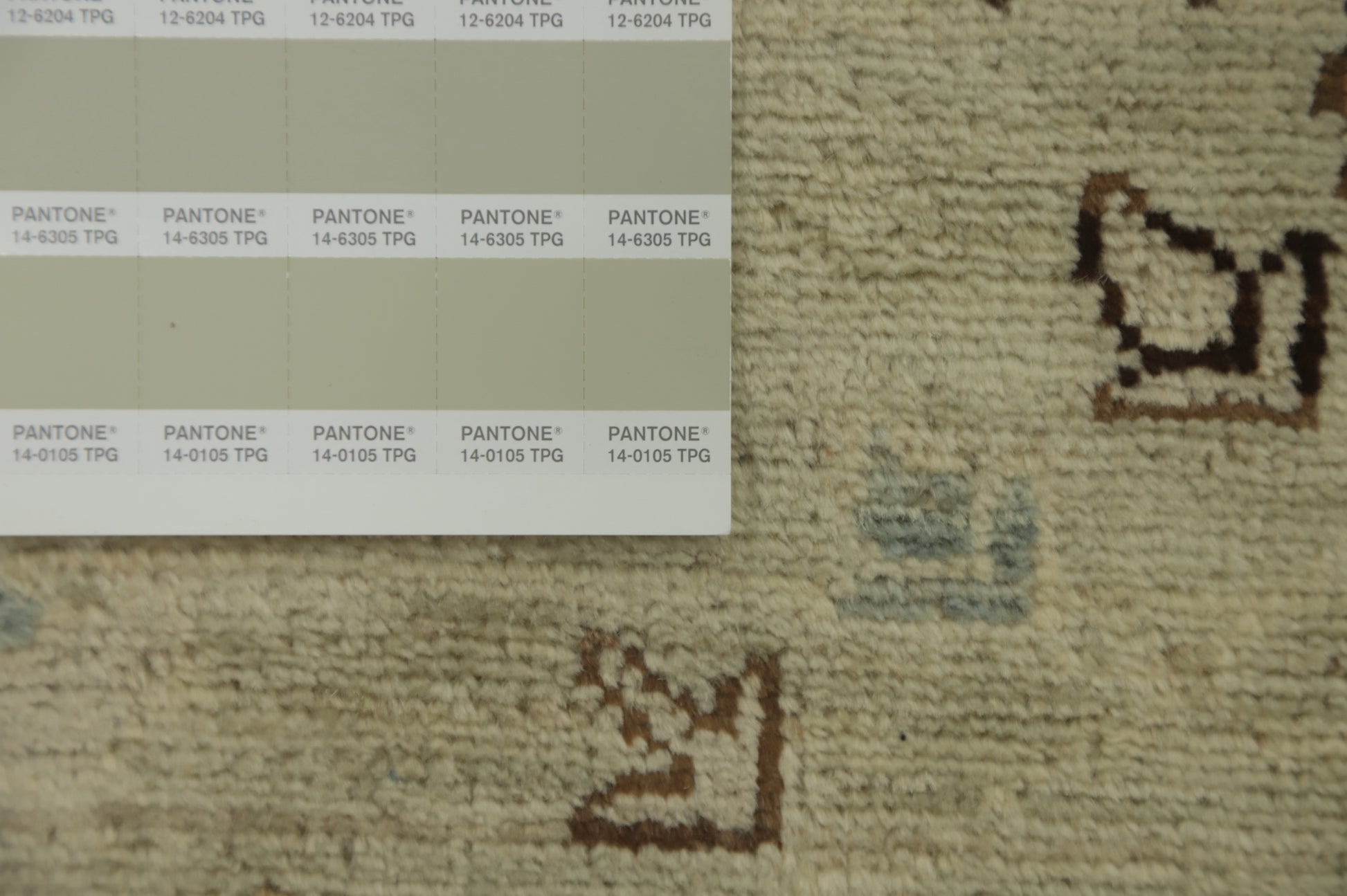 A Beautiful Genuine Pakistan Ziegler rug is Hand Knotted by skillful weavers in Pakistan with 100% Wool Material. This rug is in New, First Quality condition. dimensions are 11' 10'' X 3' 1'' in foot and 361 X 94 in centimeter. the primary color is Green.