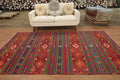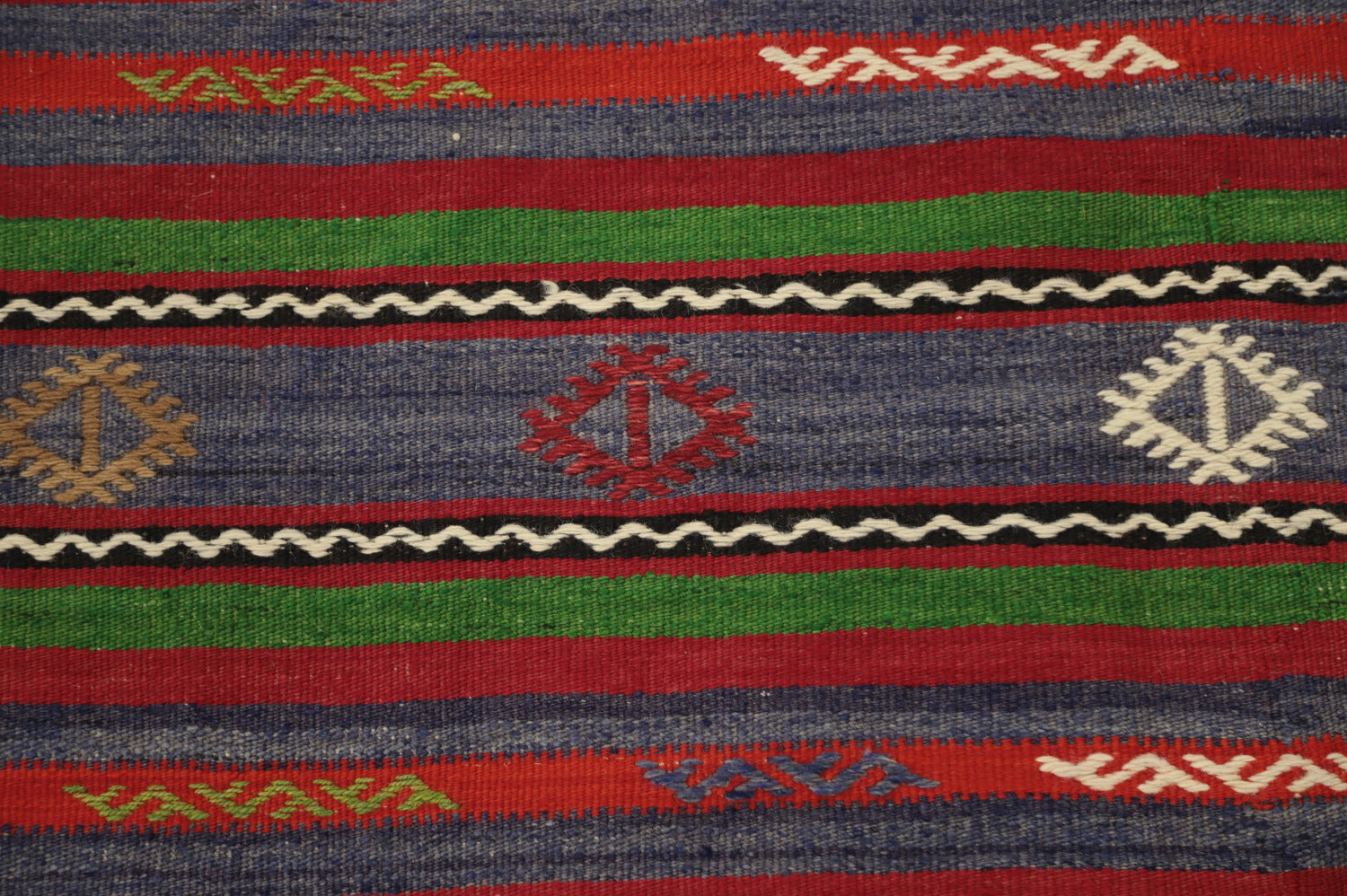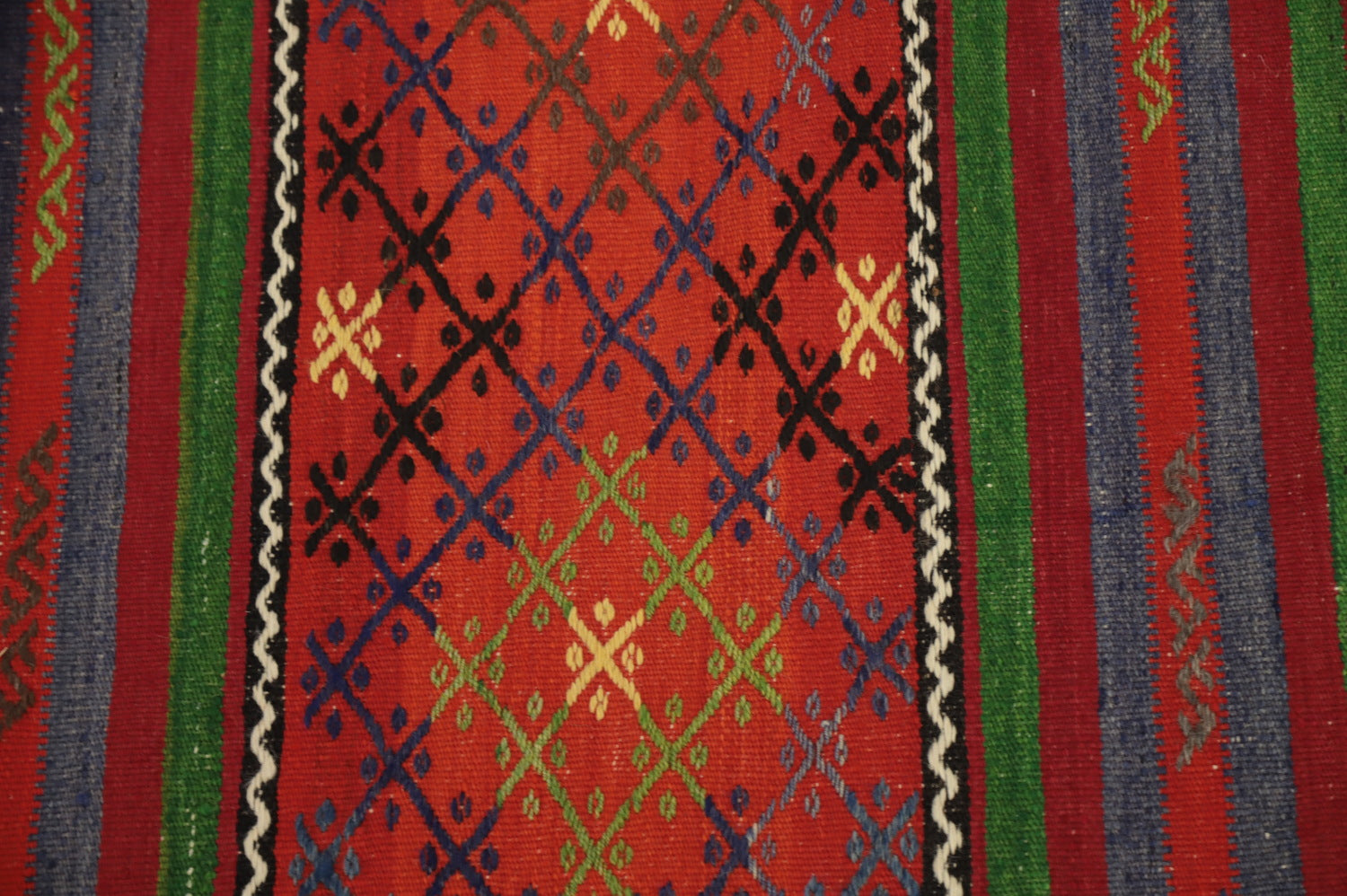 A Beautiful Genuine Turkey Kilim rug is Hand Woven by skillful weavers in Turkey with 100% Wool Material. This rug is in New, First Quality condition. dimensions are 9' 6'' X 6' 1'' in foot and 290 X 185 in centimeter. the primary color is Multi-Colored.