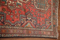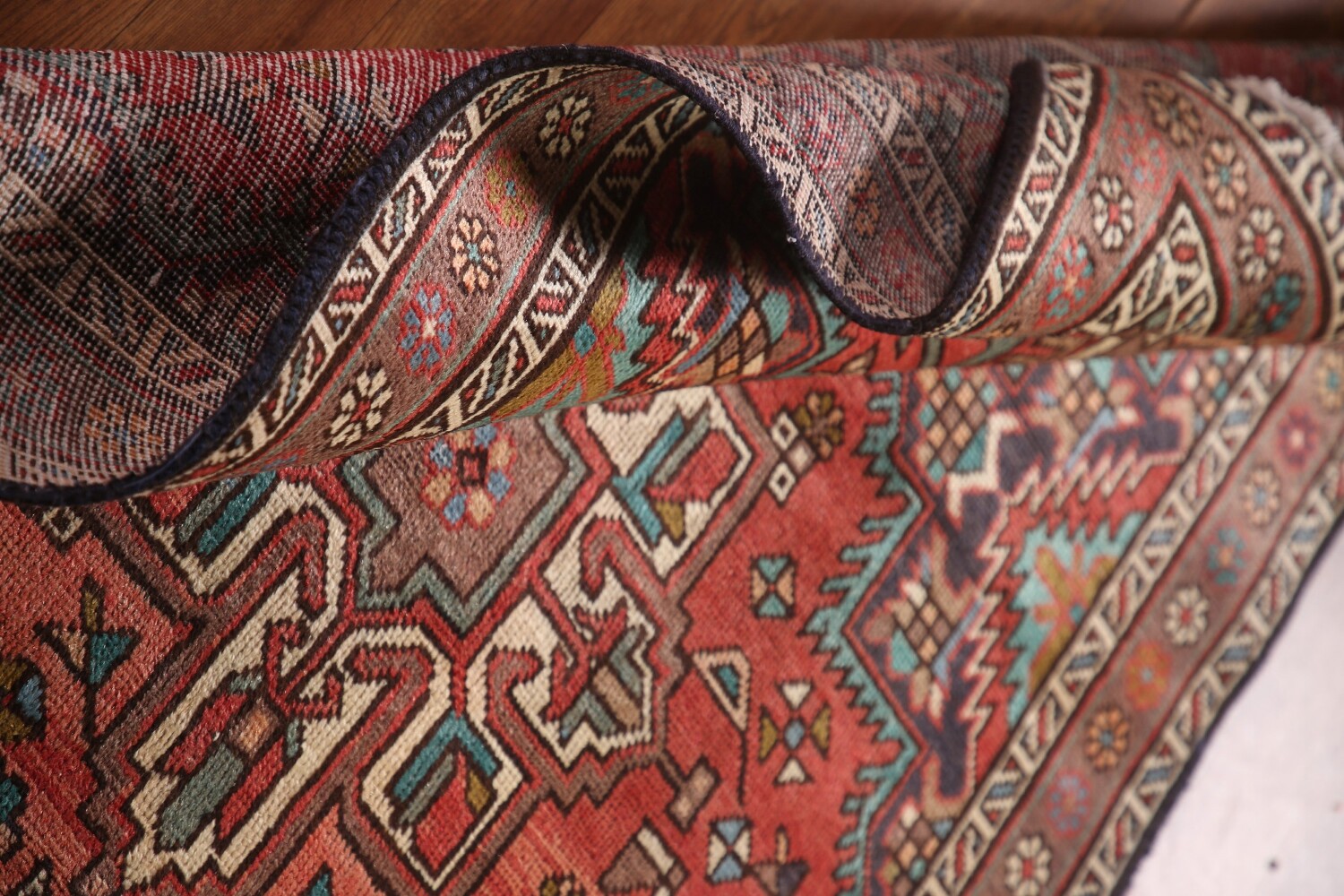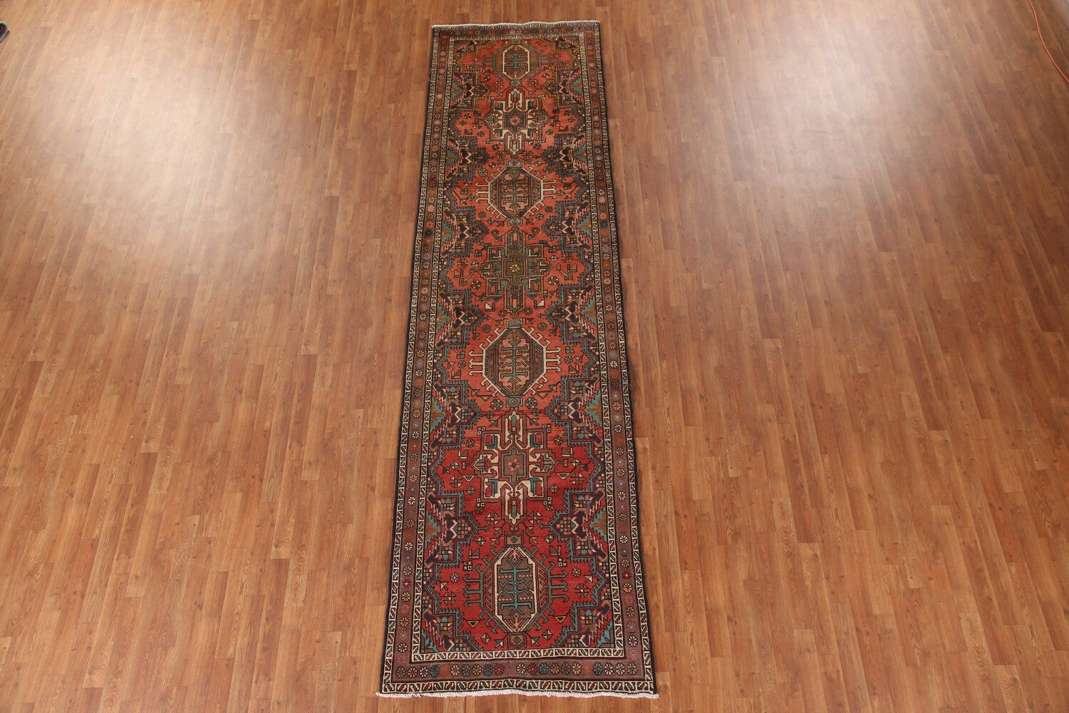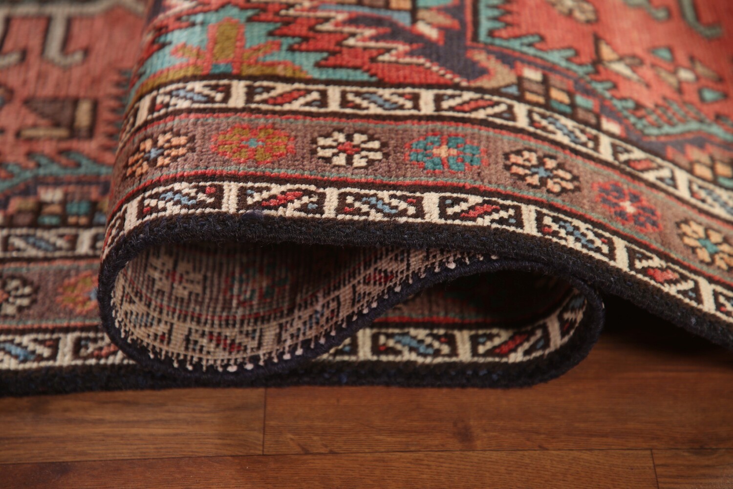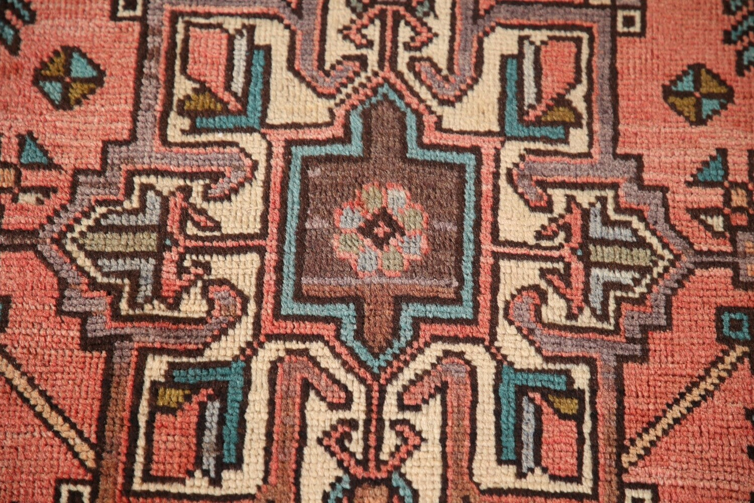 A Beautiful Genuine Persia ( Persia ) Heriz rug is Hand Knotted by skillful weavers in Persia ( Persia ) with 100% Wool Material. This rug is in Very Good condition. dimensions are 12' 11'' X 3' 6'' in foot and 394 X 107 in centimeter. the primary color is Pink.