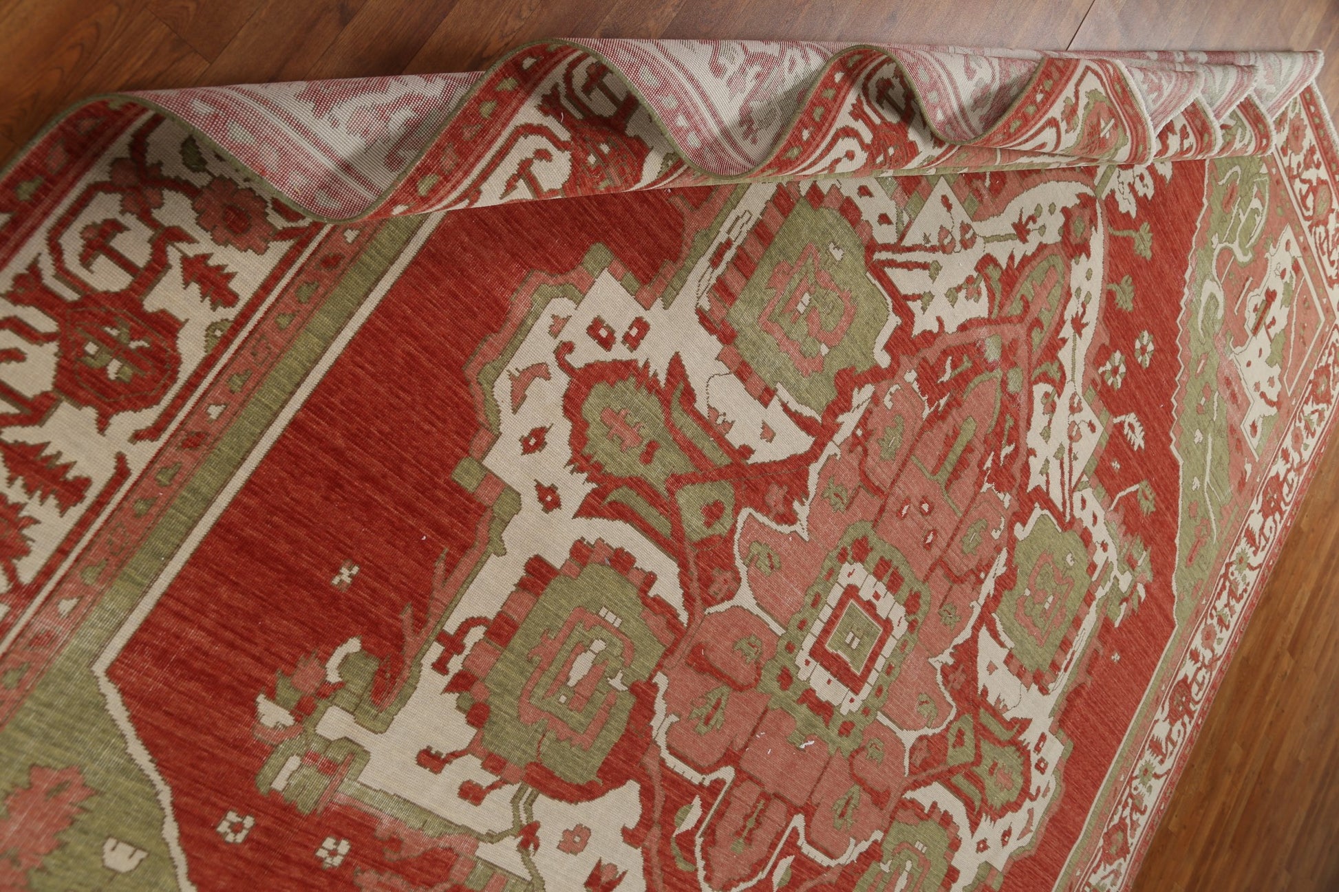 A Beautiful Genuine Turkey Heriz (serapi) rug is Hand Knotted by skillful weavers in Turkey with 100% Wool Material. This rug is in New, First Quality condition. dimensions are 12' 11'' X 9' 10'' in foot and 394 X 300 in centimeter. the primary color is Red.