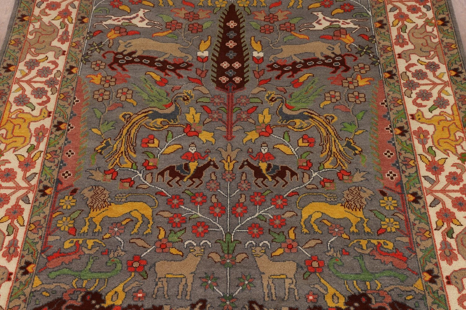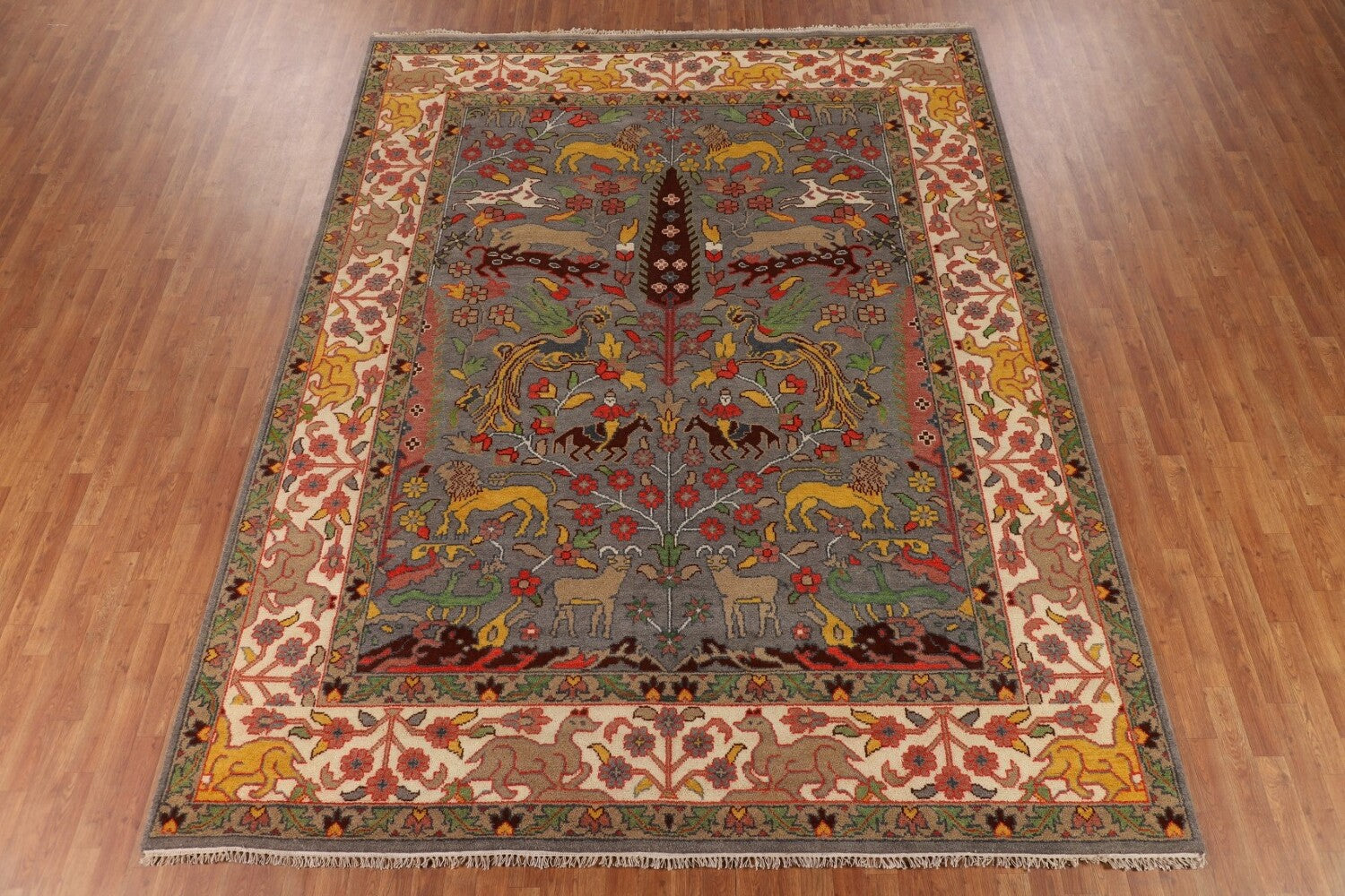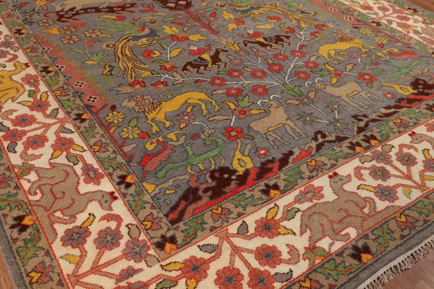 Hunting Animals Wool Ziegler Indian Area Rug 9x12