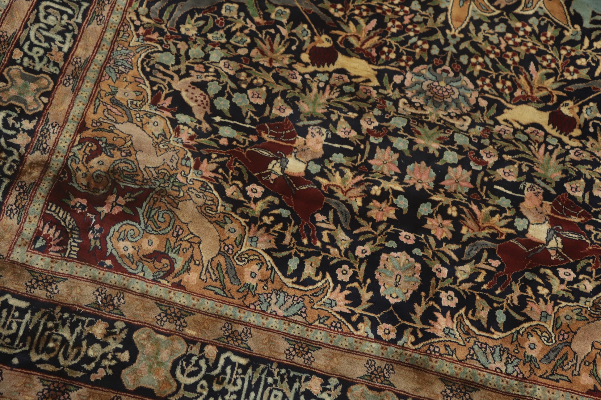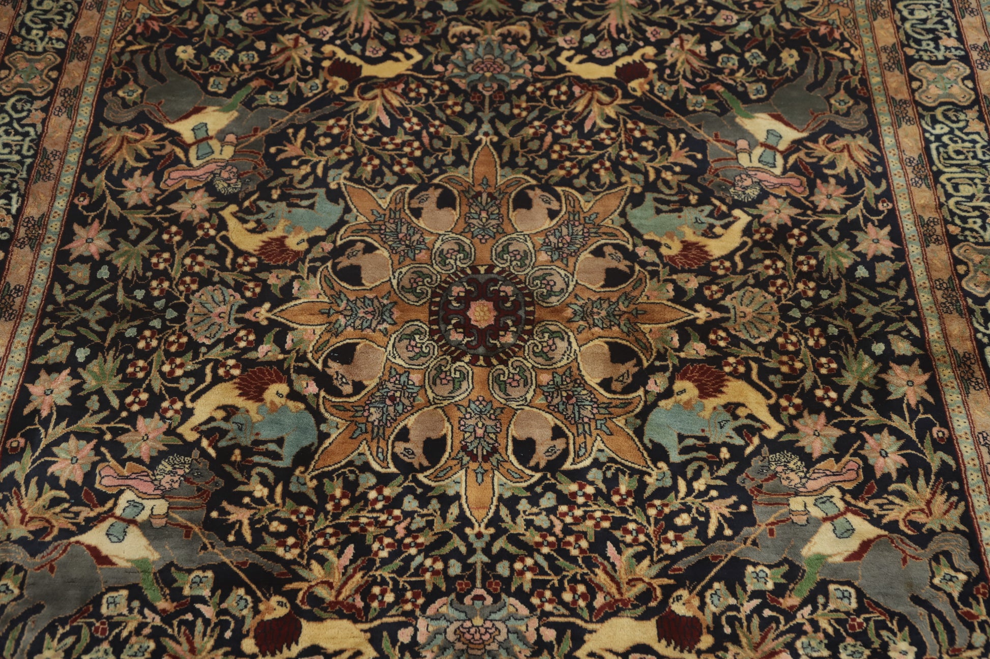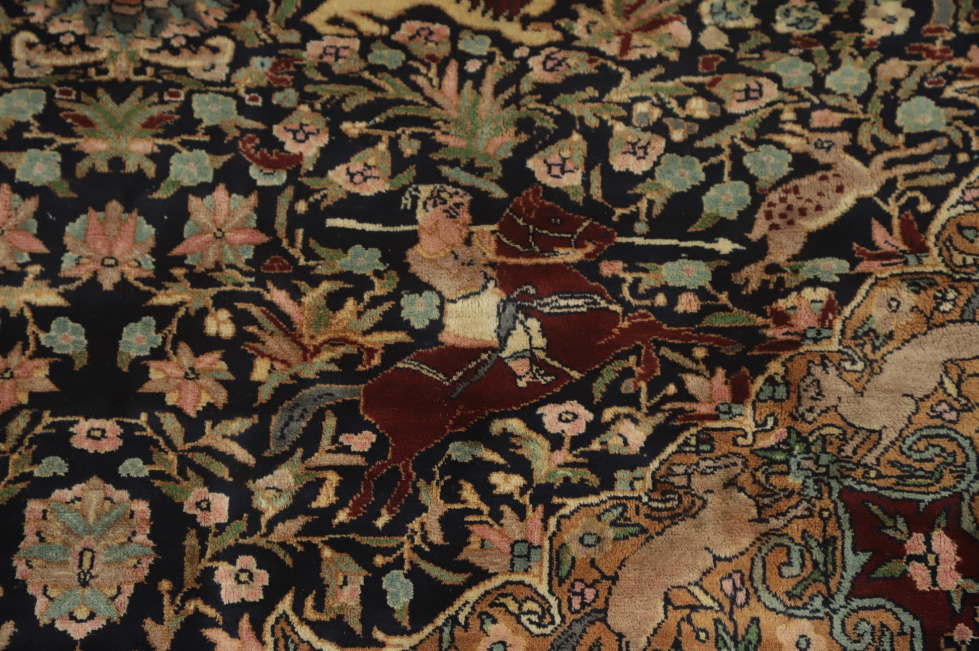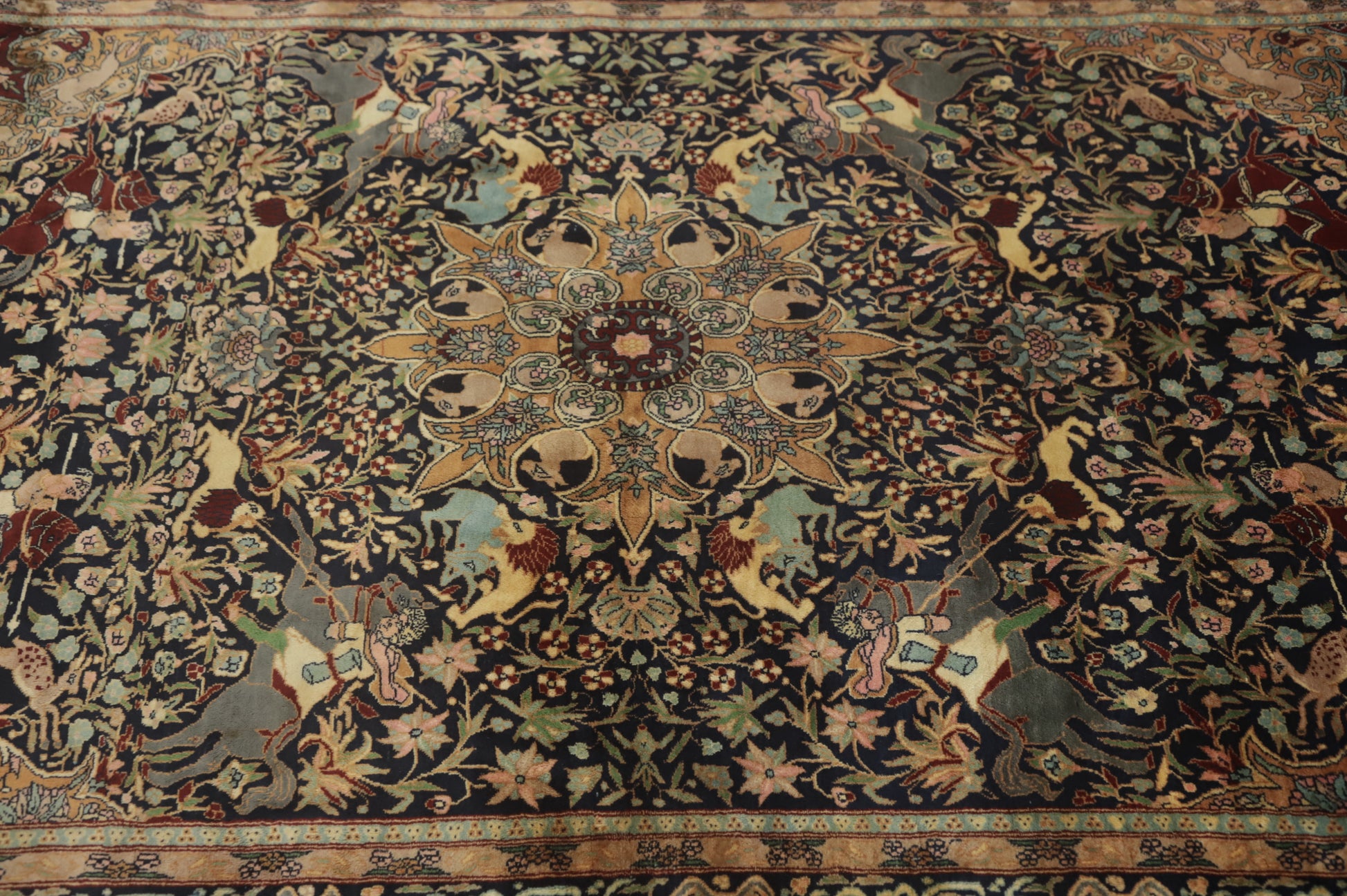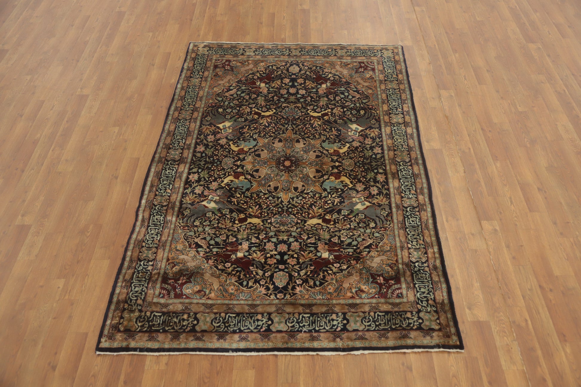 Hunting Design Hereke Vegetable Dye Rug 5x7