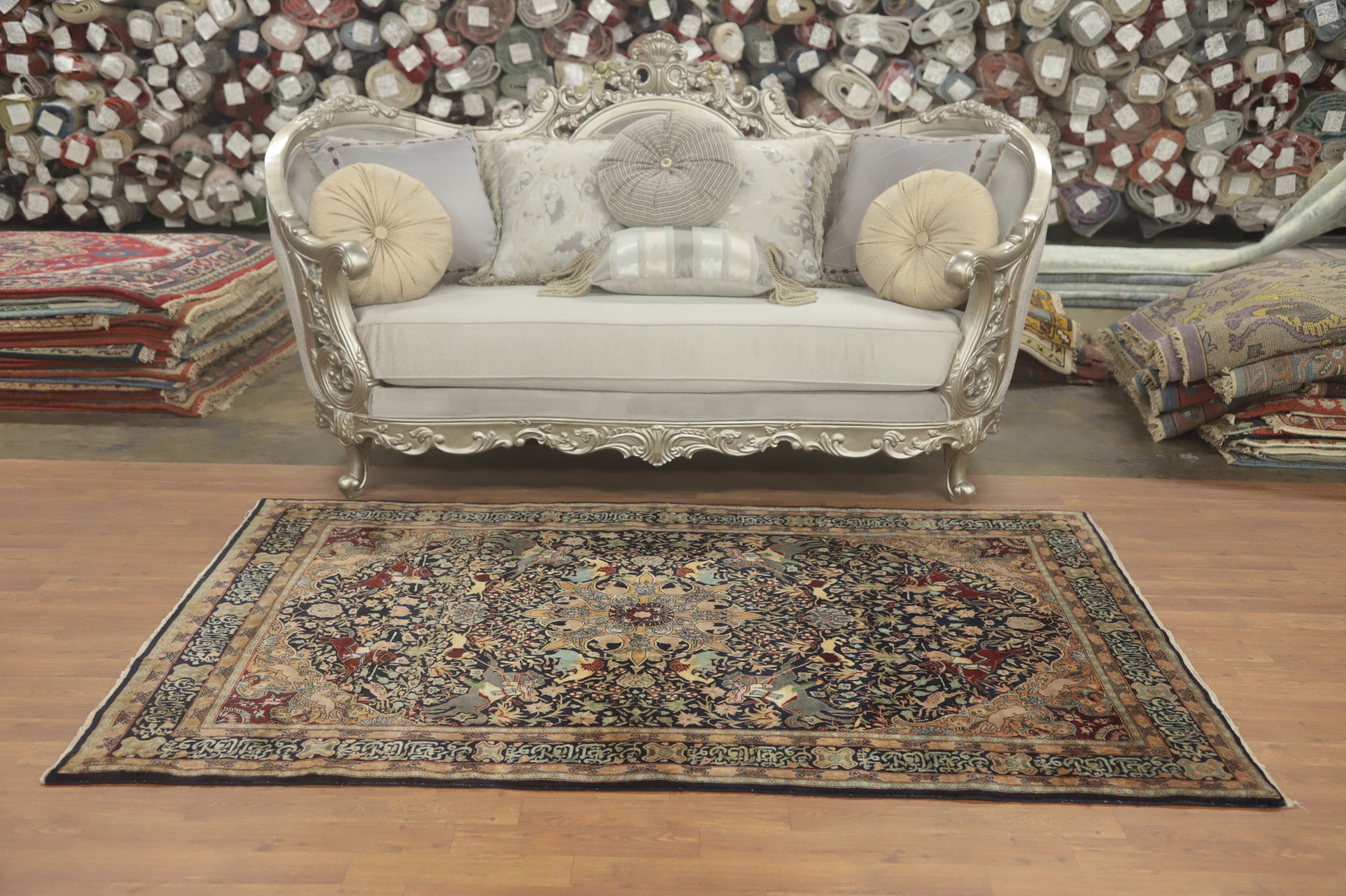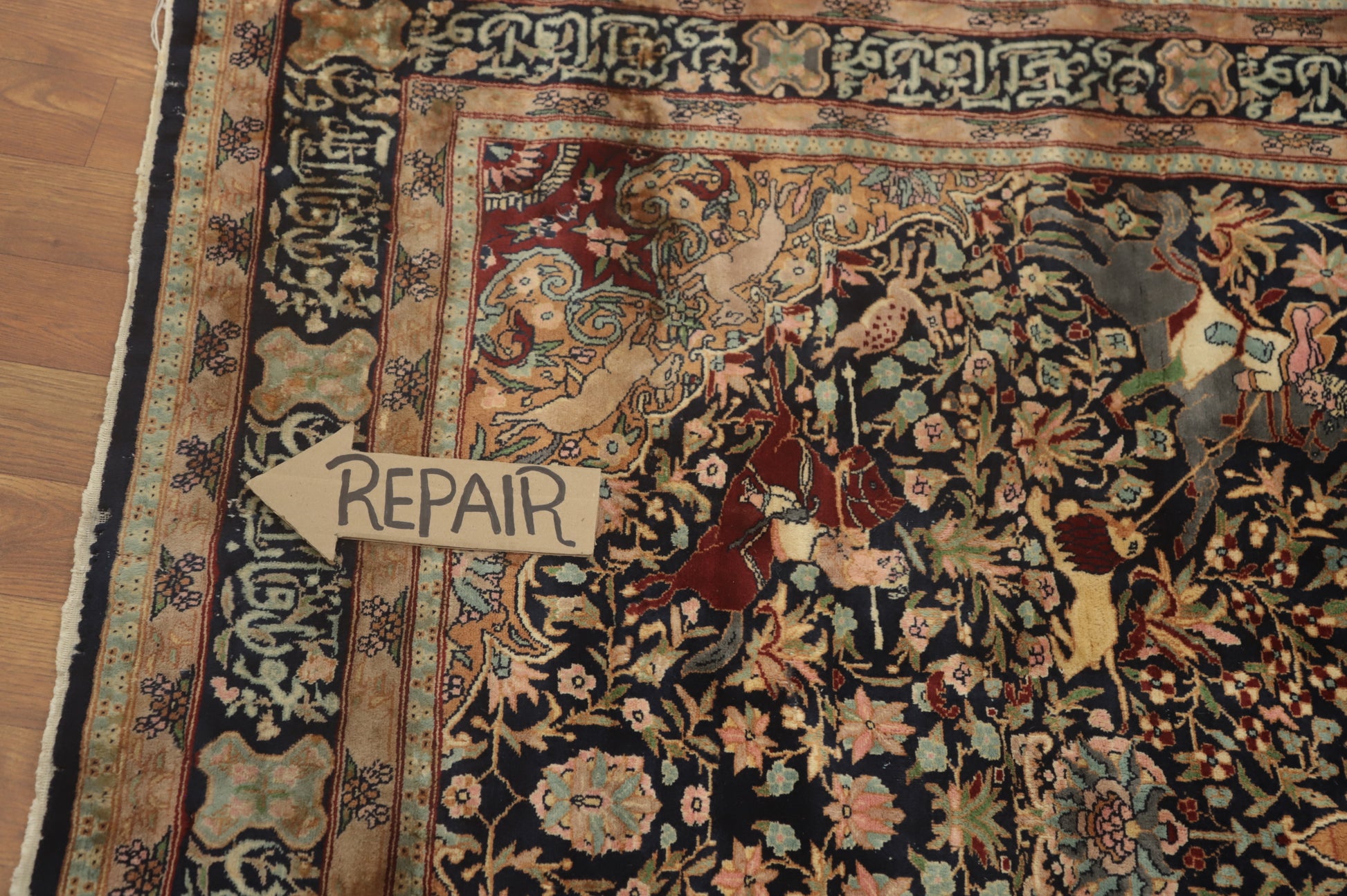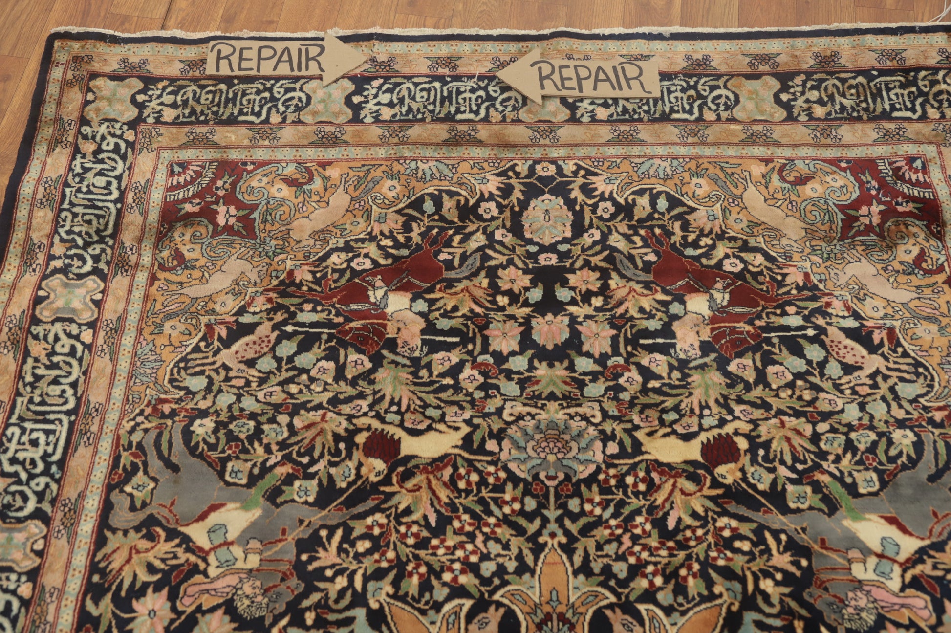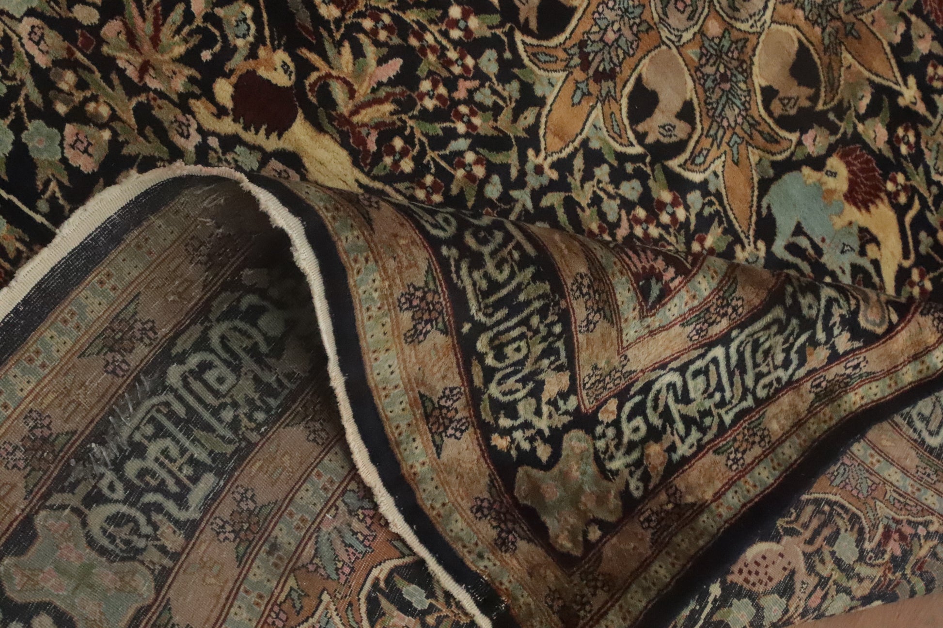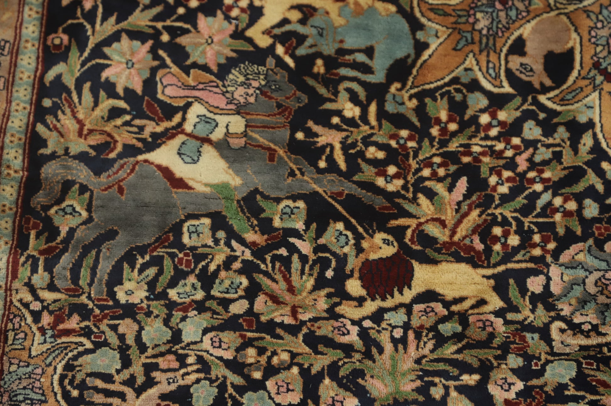 Hunting Design Hereke Vegetable Dye Rug 5x7