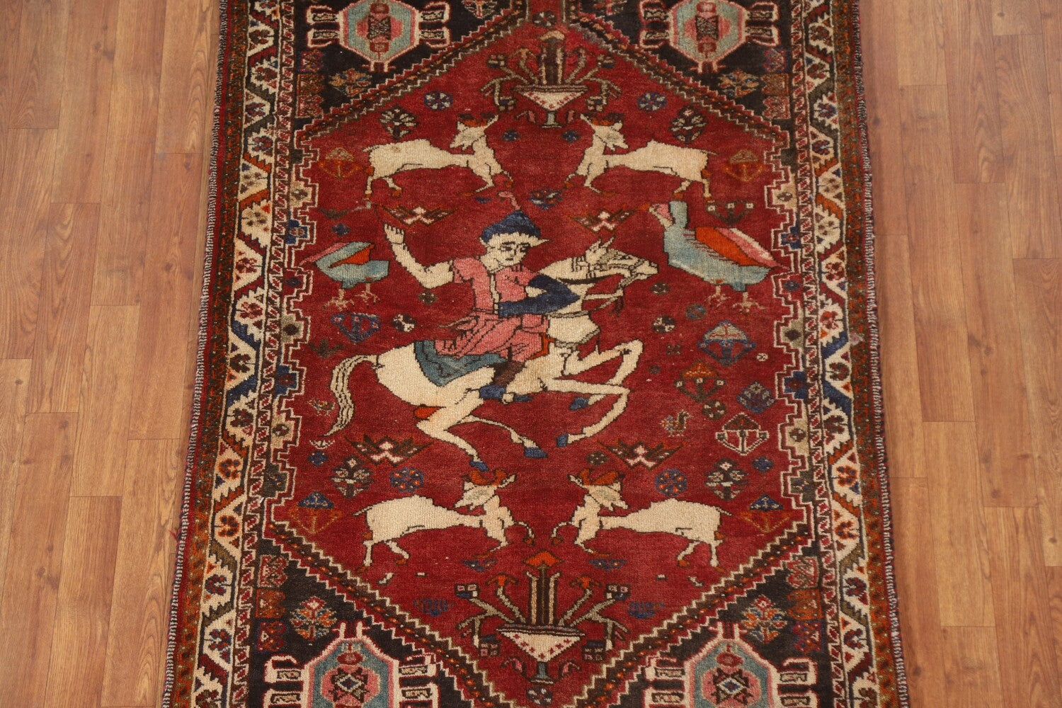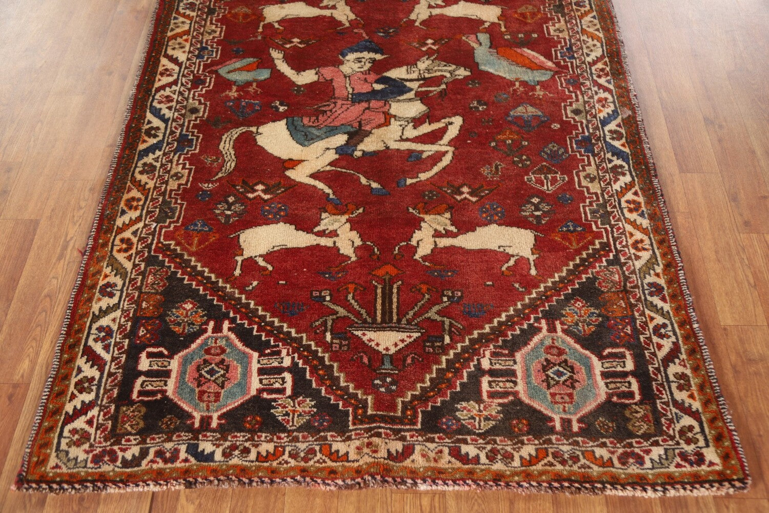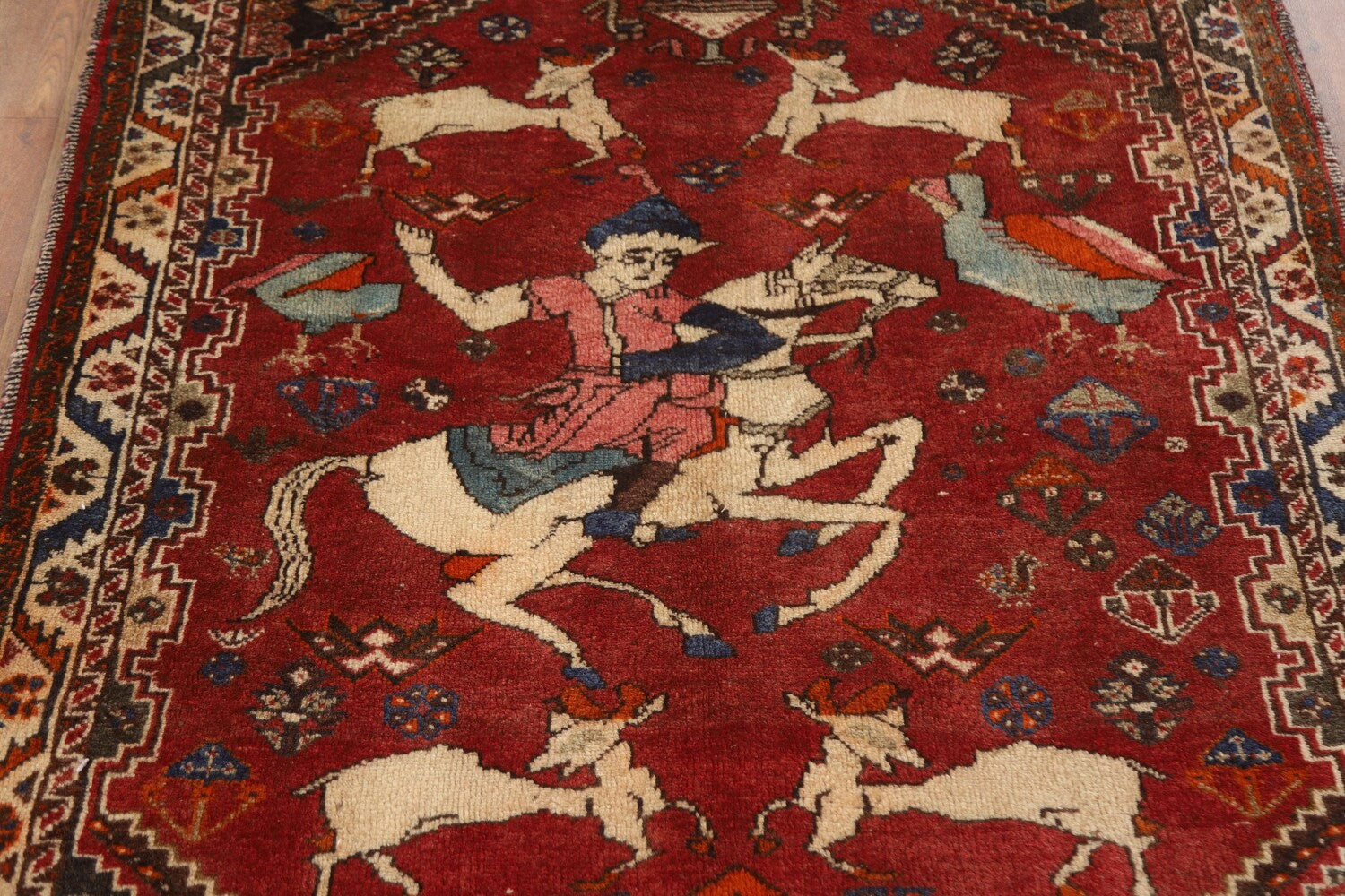 A Beautiful Genuine Persia ( Persia ) Shiraz rug is Hand Knotted by skillful weavers in Persia ( Persia ) with 100% Wool Material. This rug is in Very Good (Abrash) condition. dimensions are 5' 3'' X 3' 9'' in foot and 160 X 114 in centimeter. the primary color is Red.