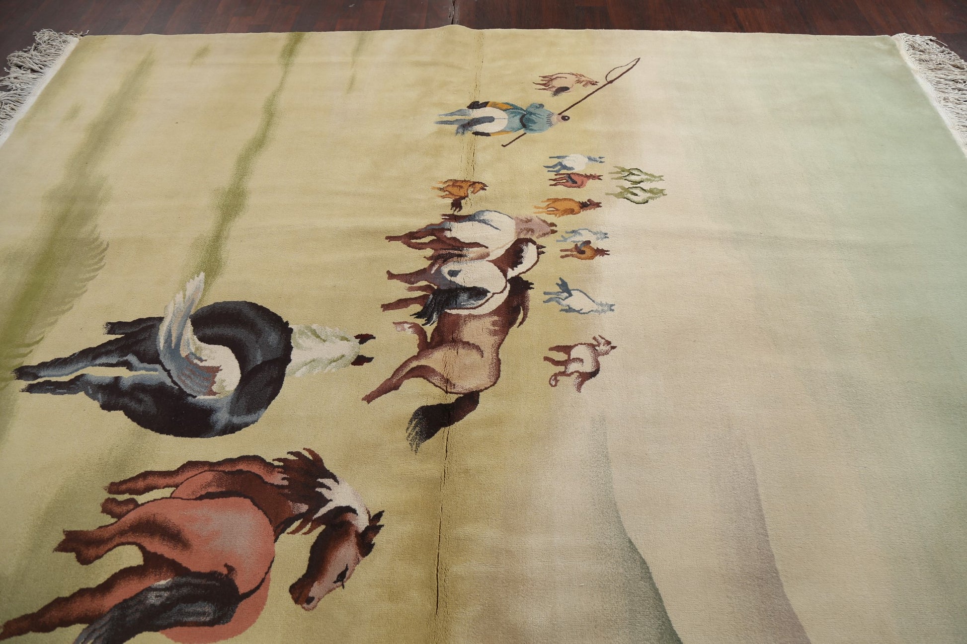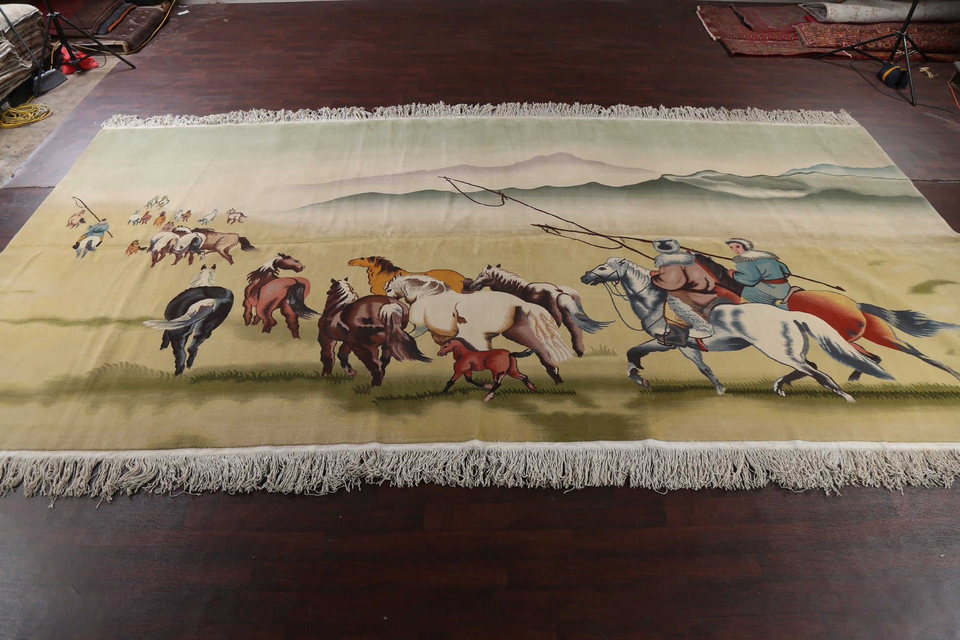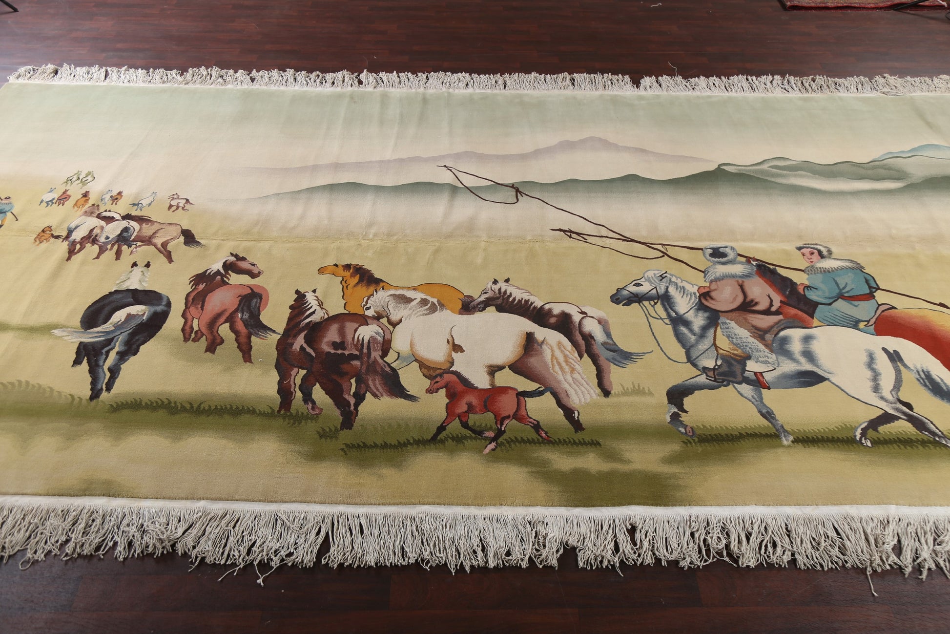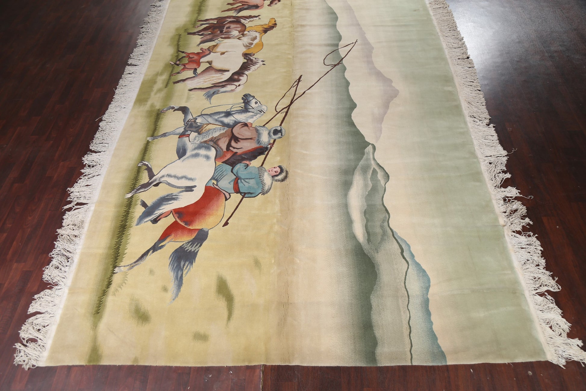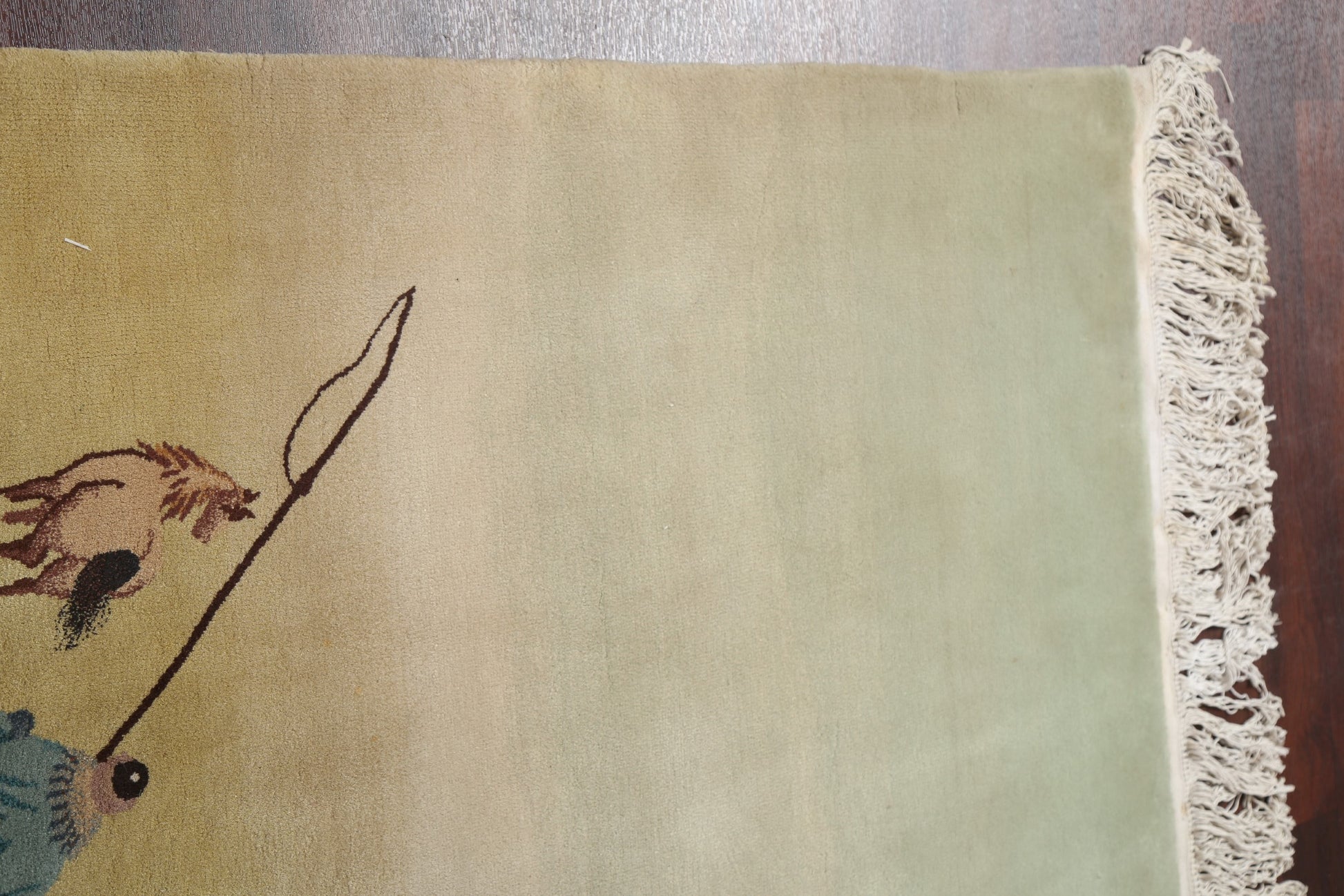 Hunting Design Vegetable Dye Art Deco Oriental Rug 10x20