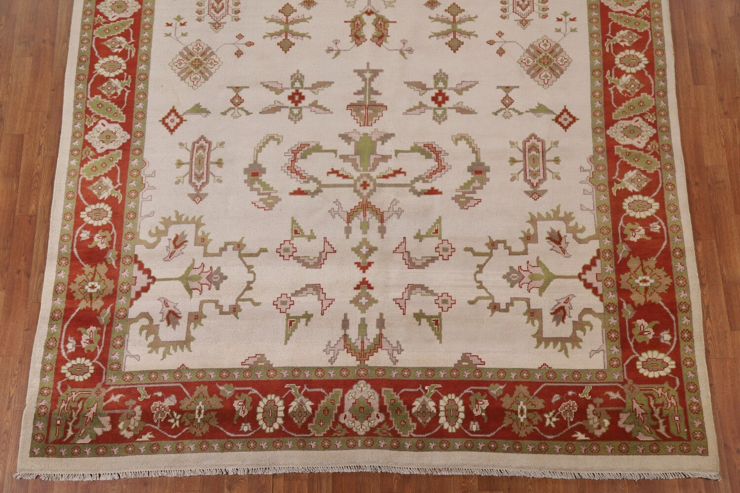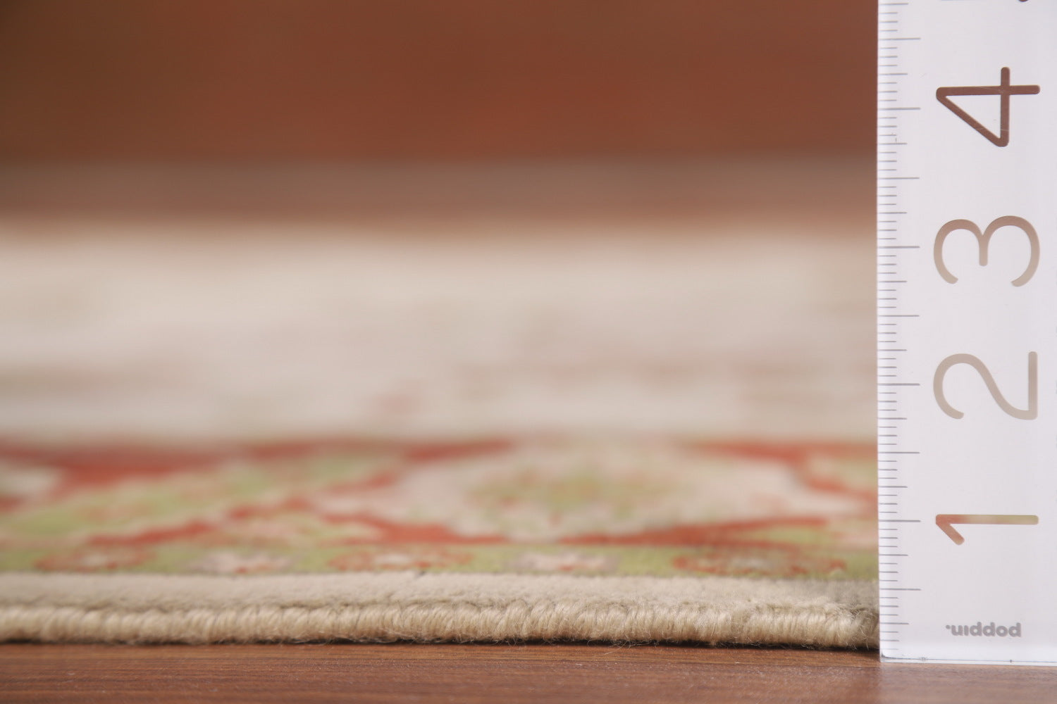 A Beautiful Genuine India Agra rug is Hand Knotted by skillful weavers in India with 100% Wool Material. This rug is in condition. dimensions are 9' 10'' X 7' 11'' in foot and 300 X 241 in centimeter. the primary color is Beige & Ivories.