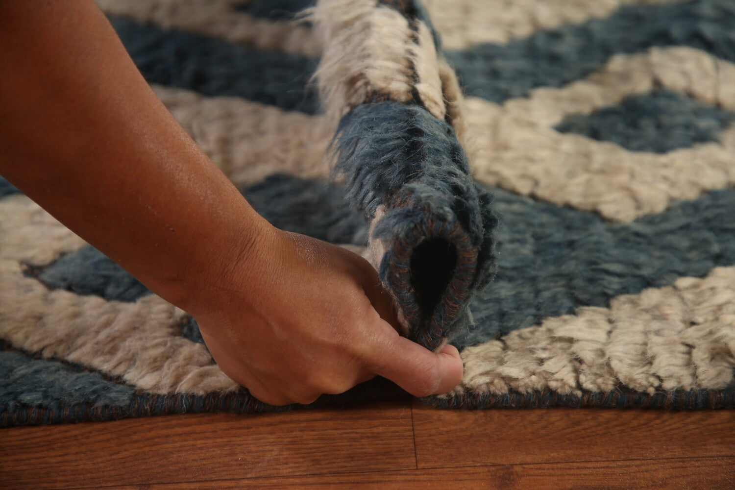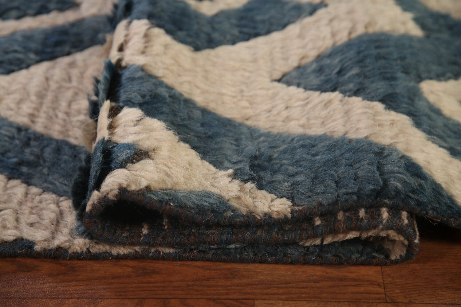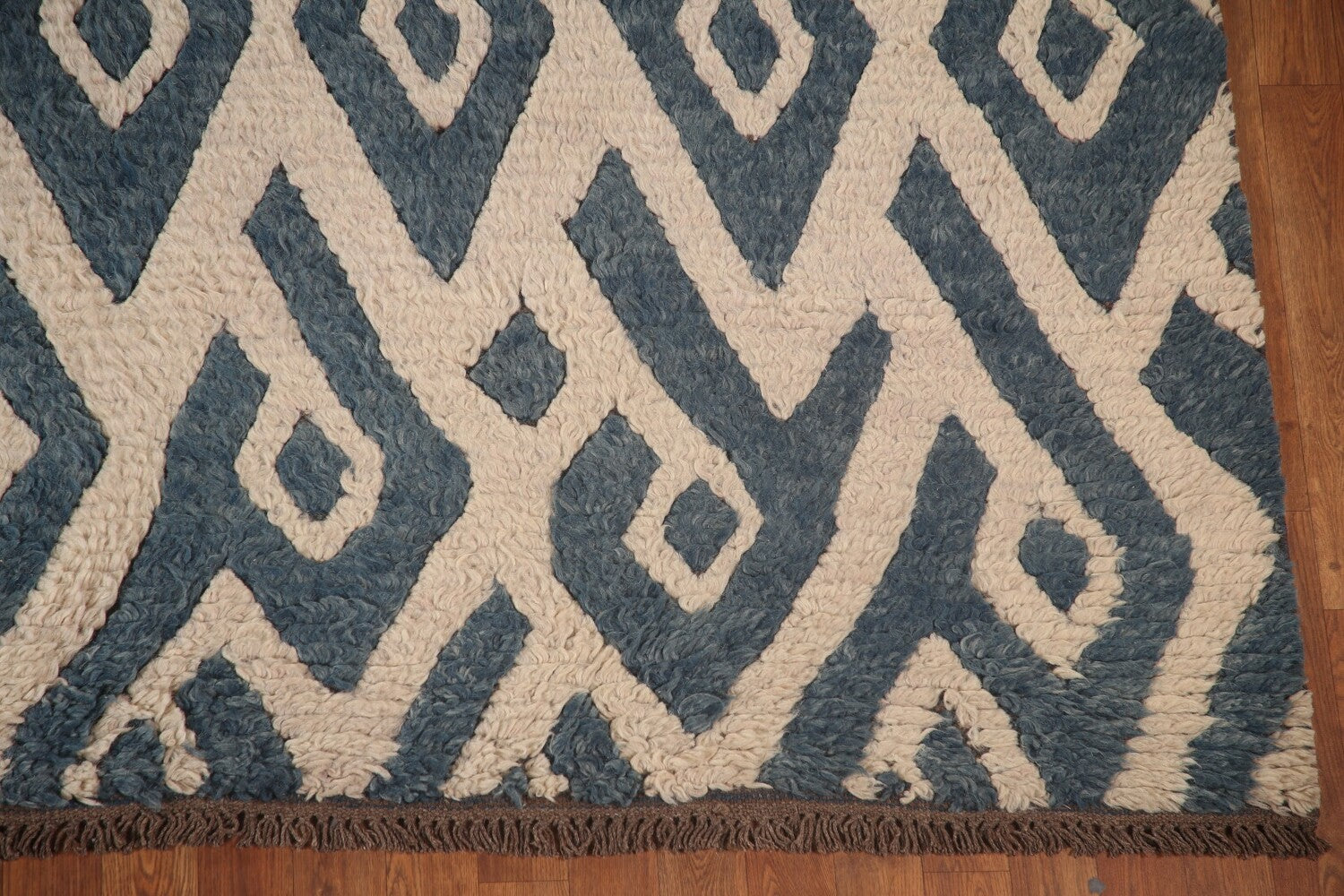 Ivory/ Blue Moroccan Shaggy Area Rug 9x11
