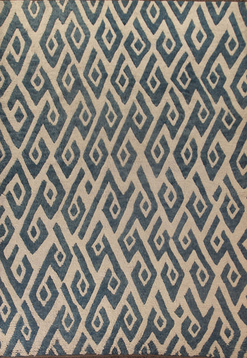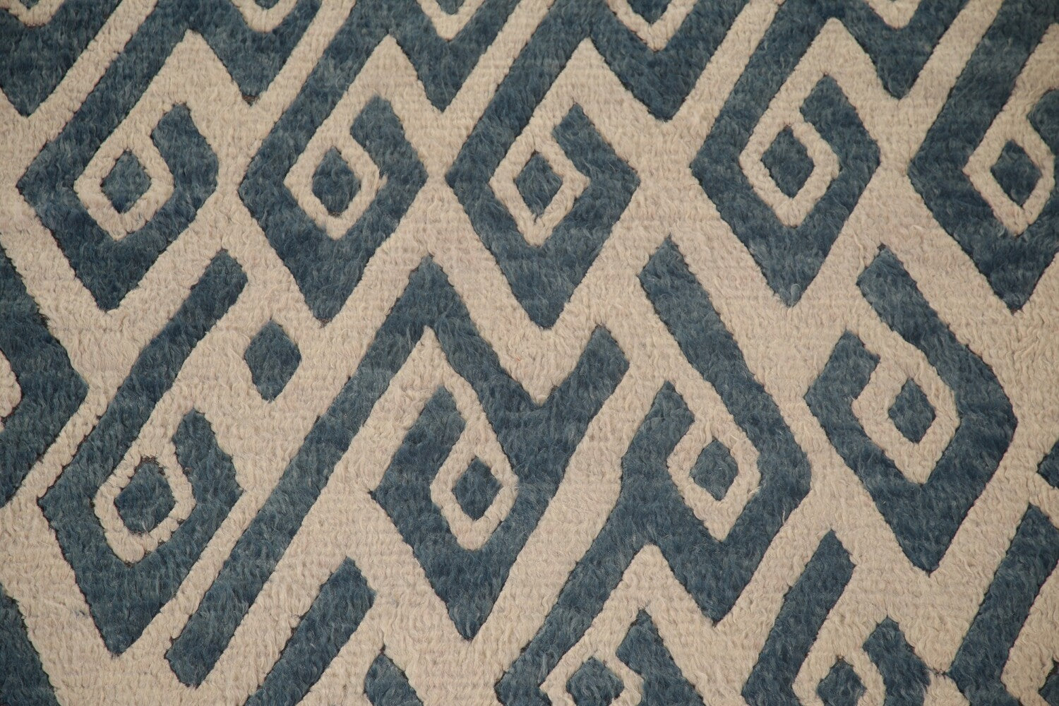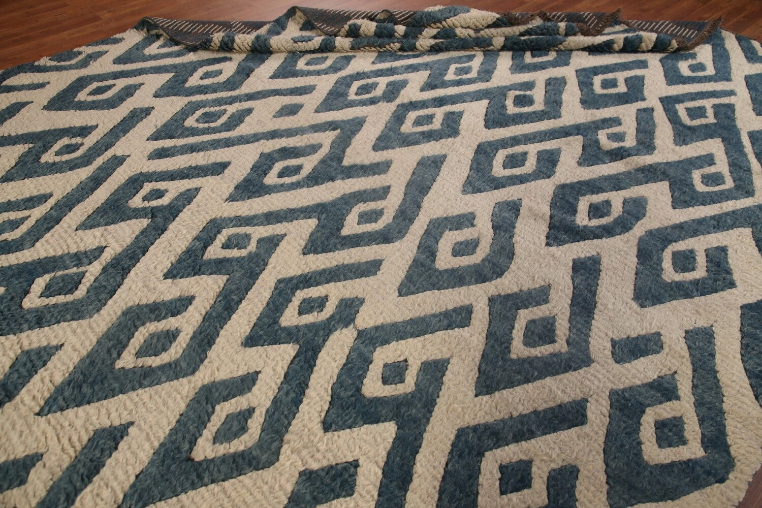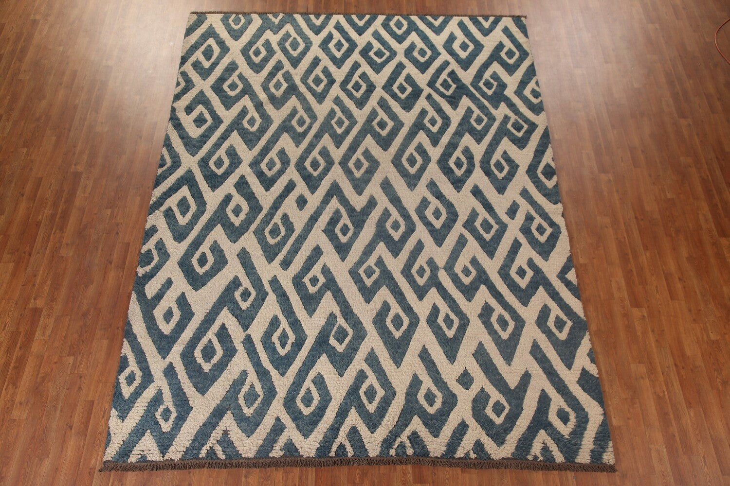 Ivory/ Blue Moroccan Shaggy Area Rug 9x11