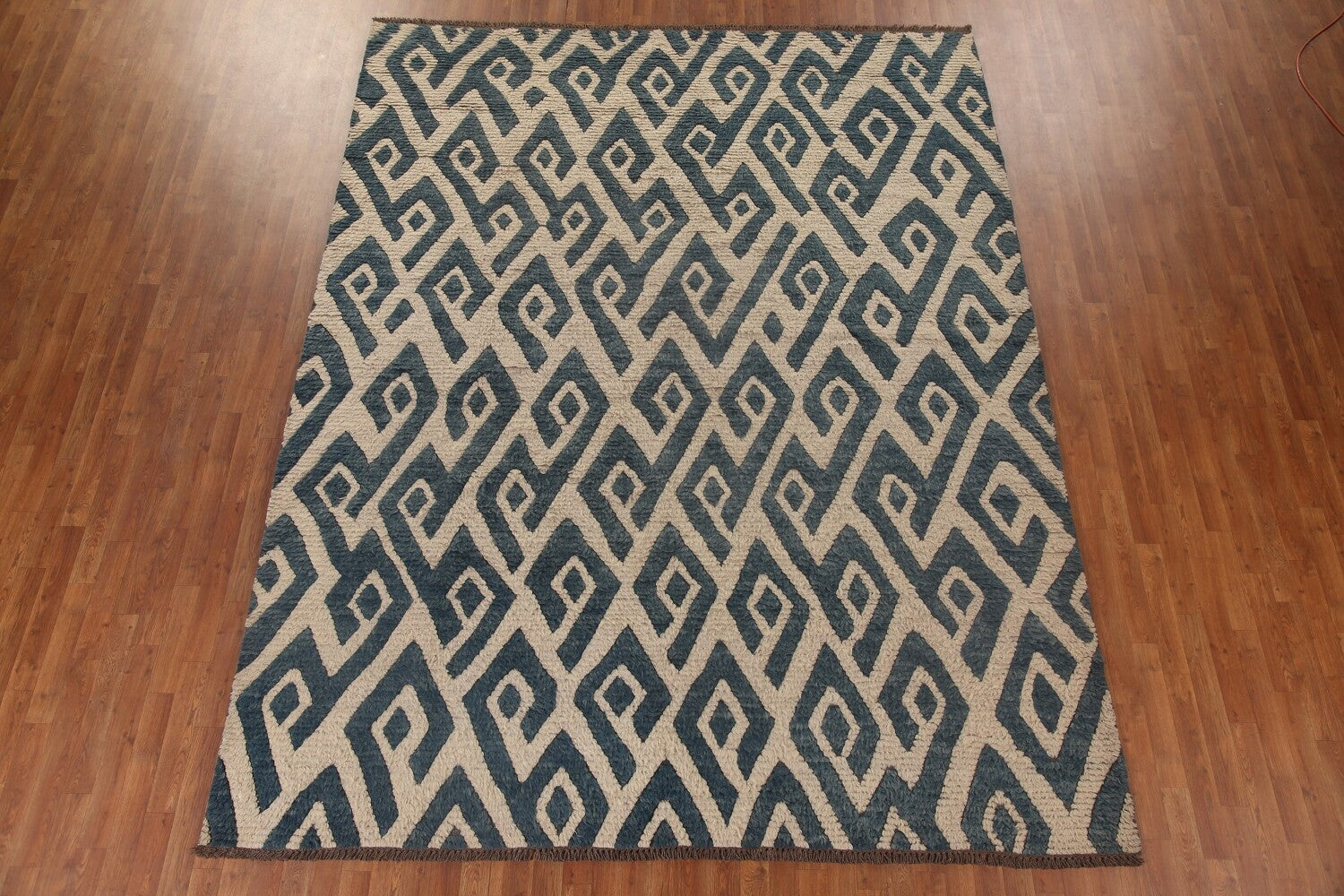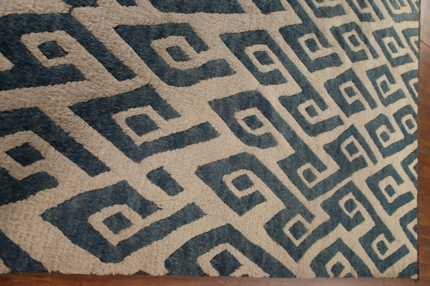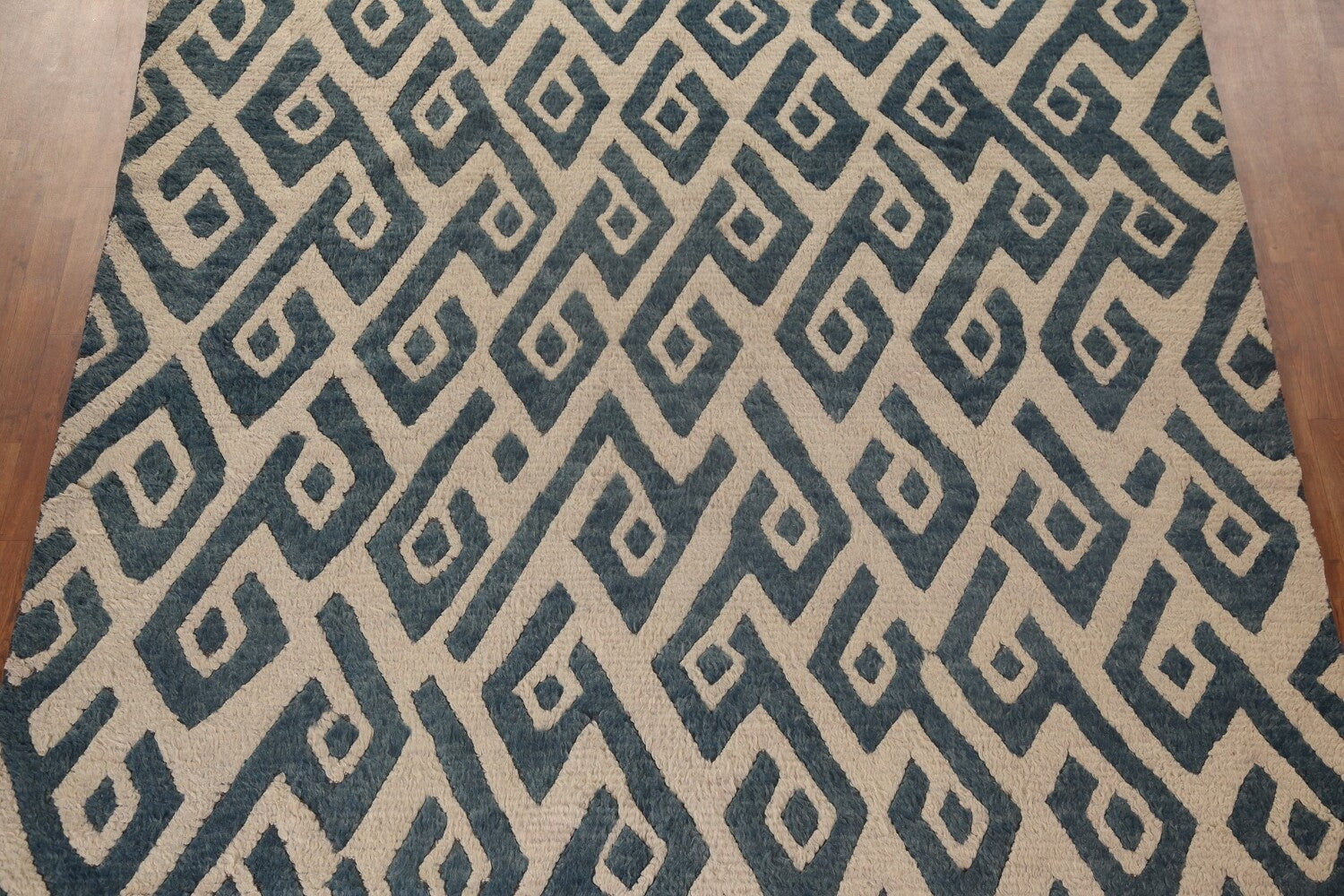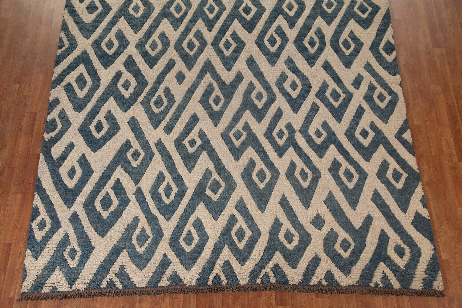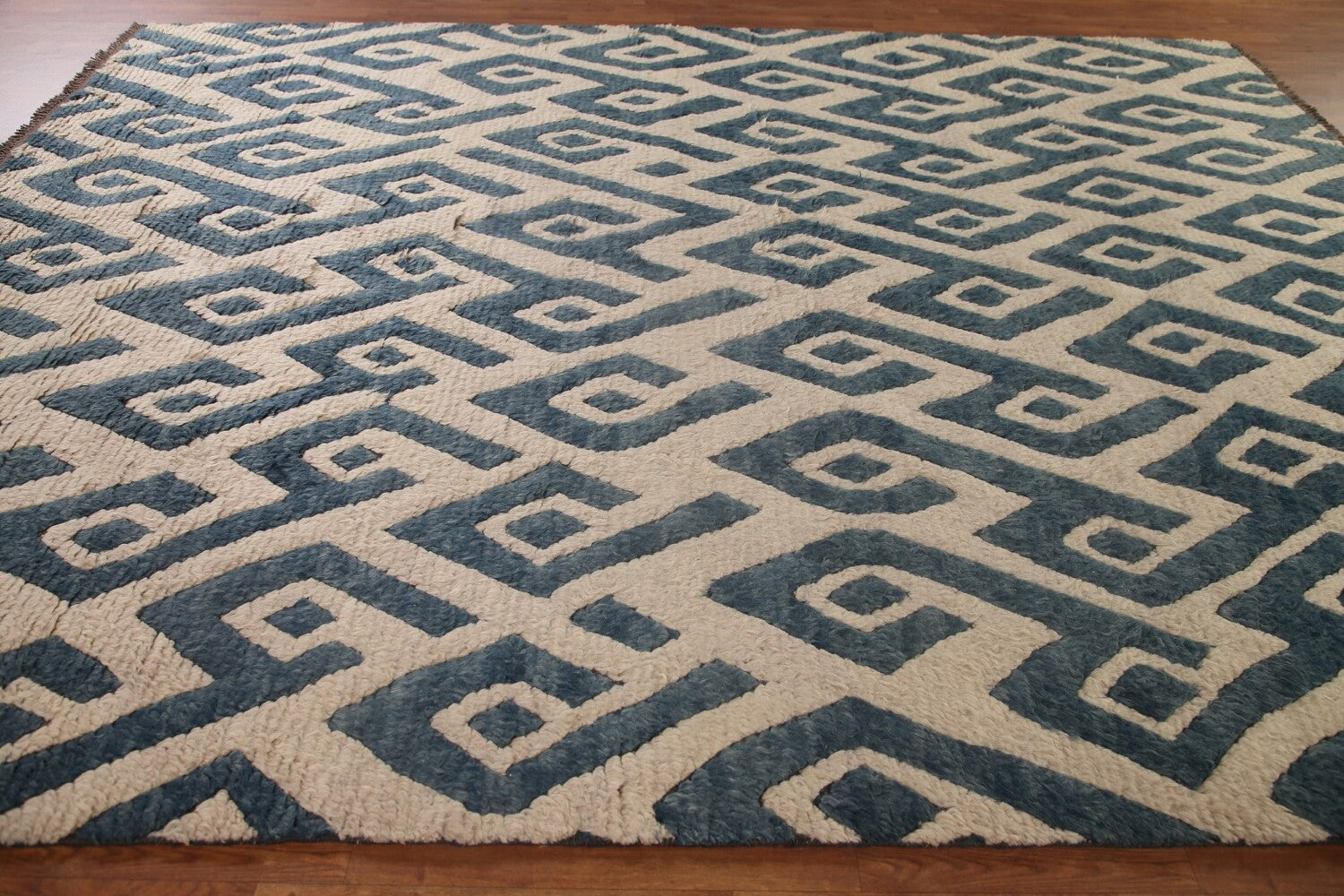 A Beautiful Genuine India Moroccan Shaggy rug is Hand Knotted by skillful weavers in India with 100% Wool Material. This rug is in New, First Quality condition. dimensions are 11' 5'' X 8' 9'' in foot and 348 X 267 in centimeter. the primary color is Beige & Ivories.