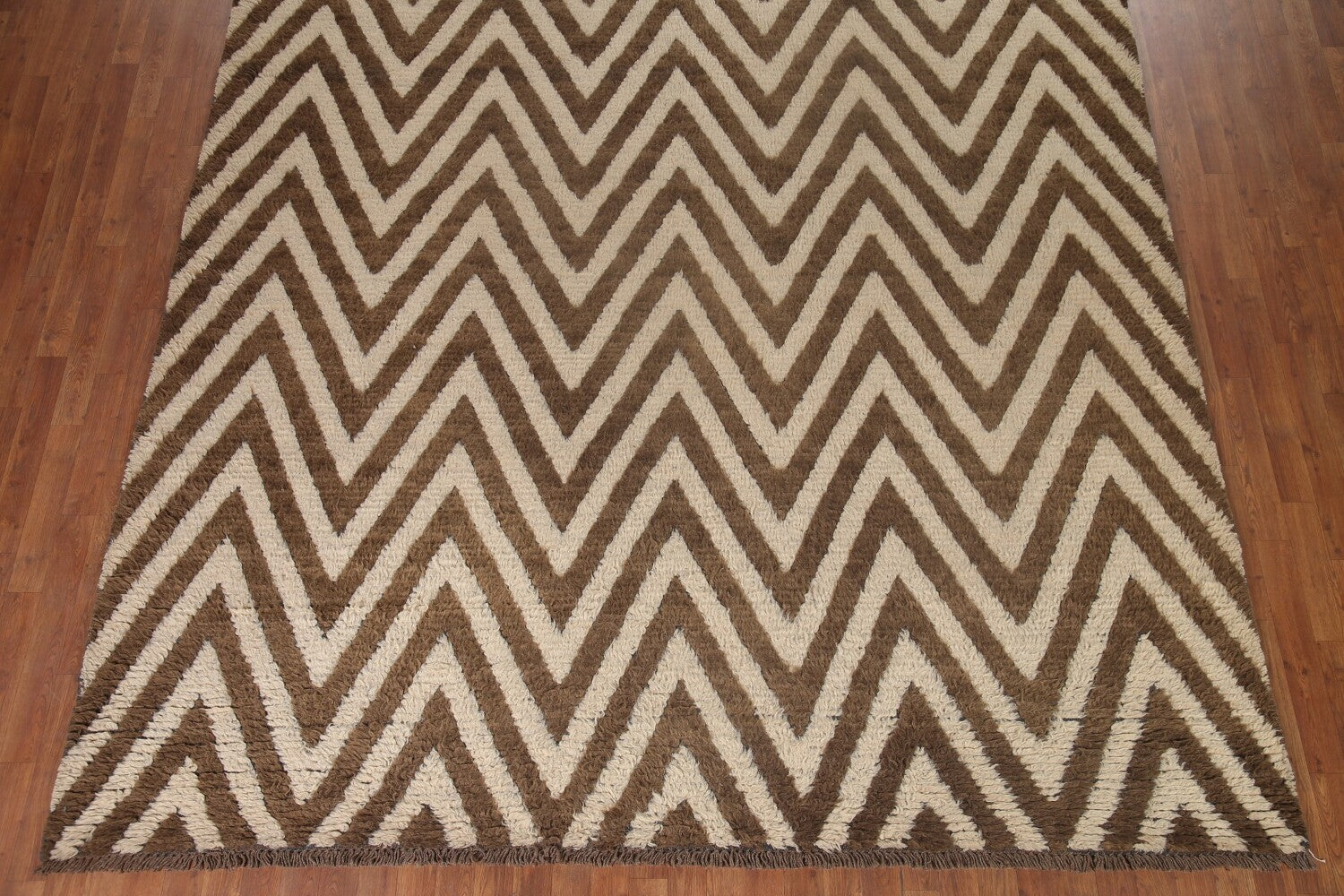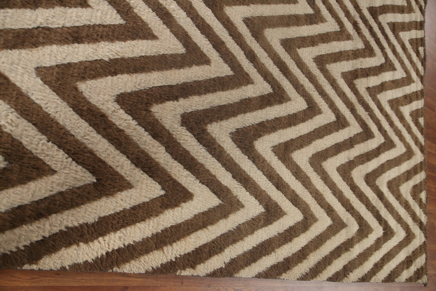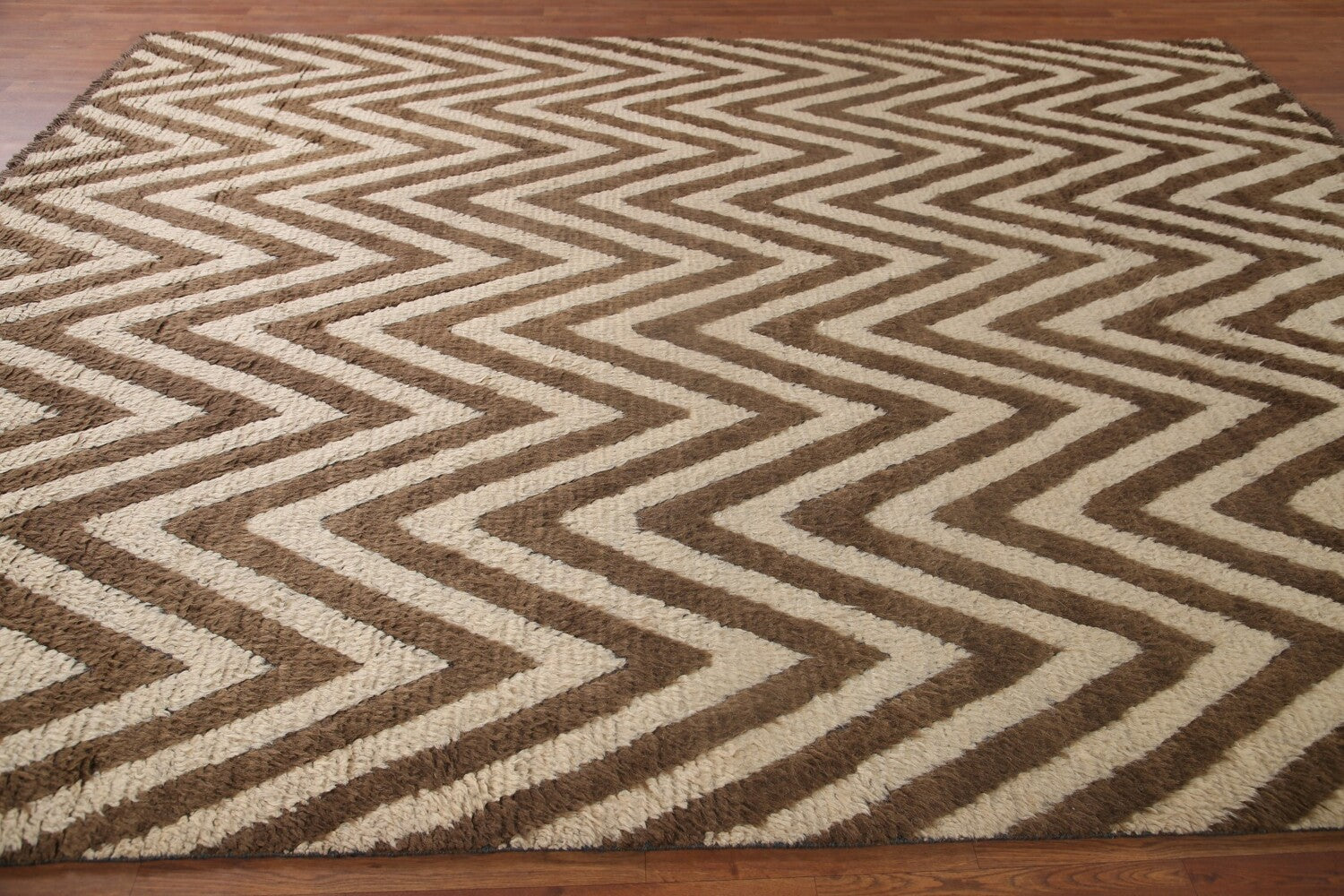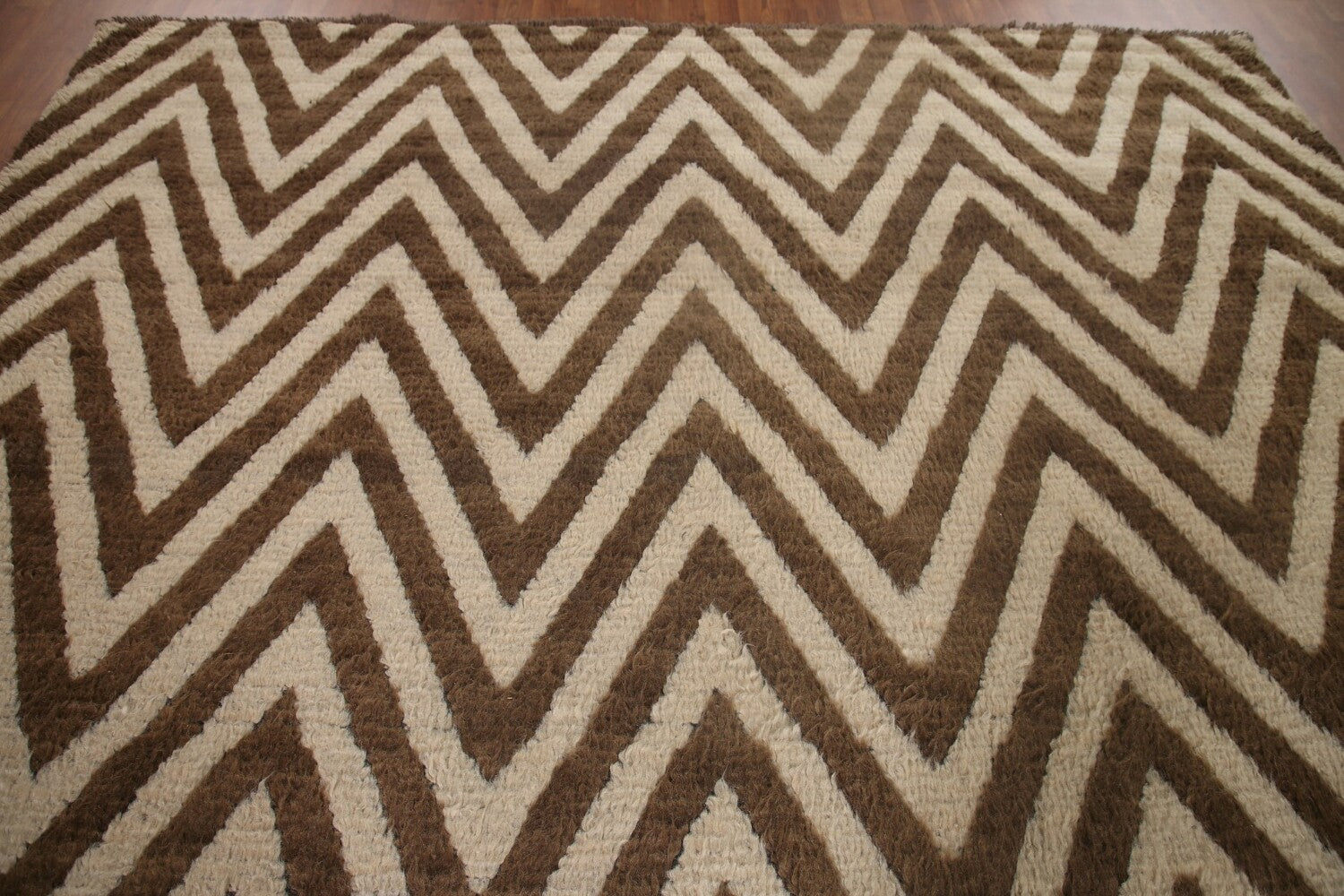 Ivory/ Brown Moroccan Shaggy Wool Area Rug 9x12
