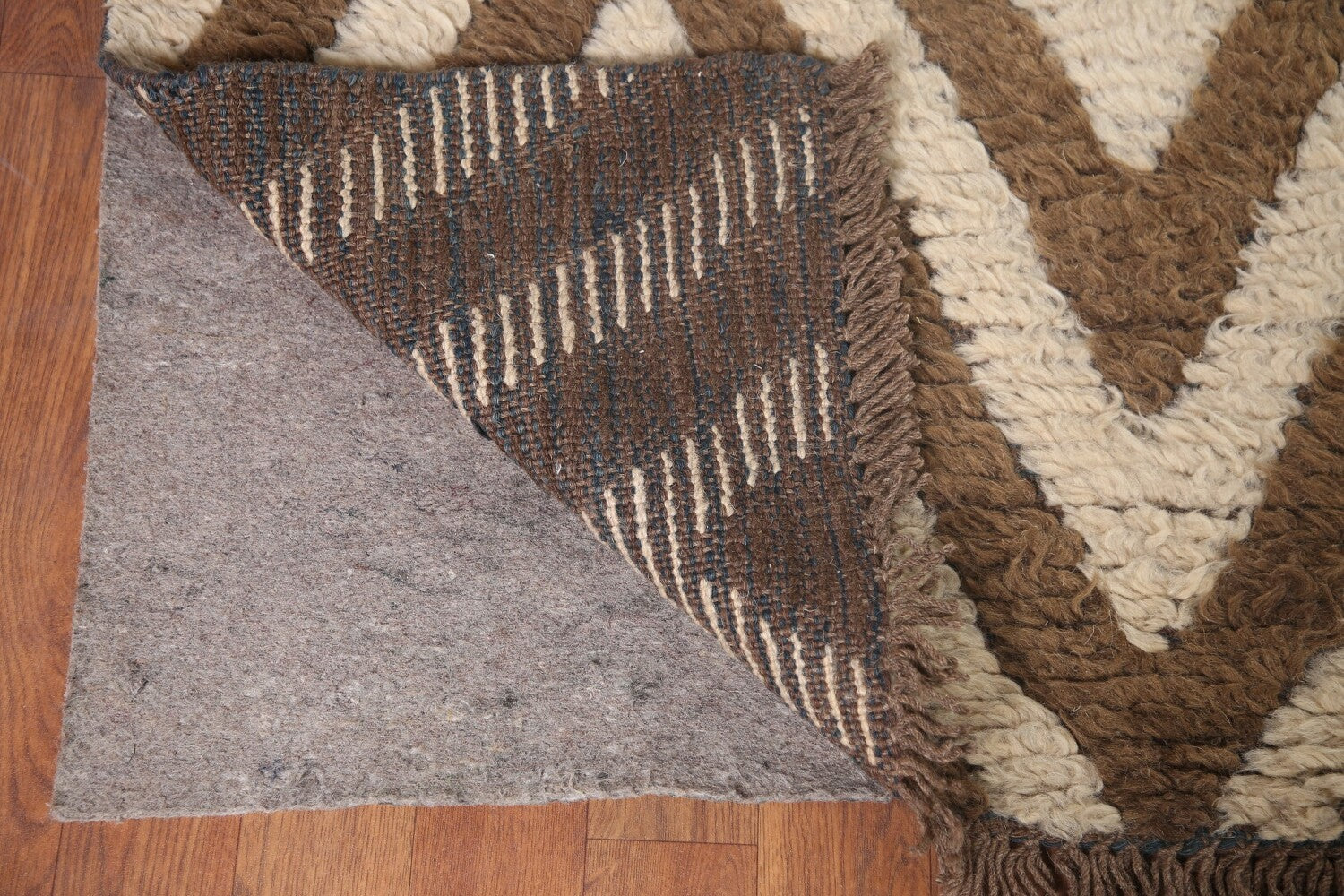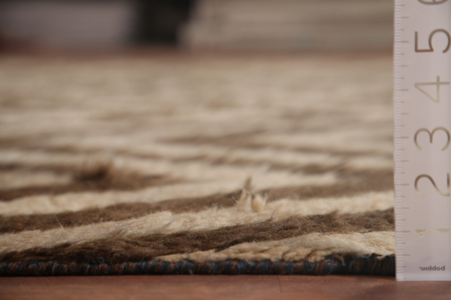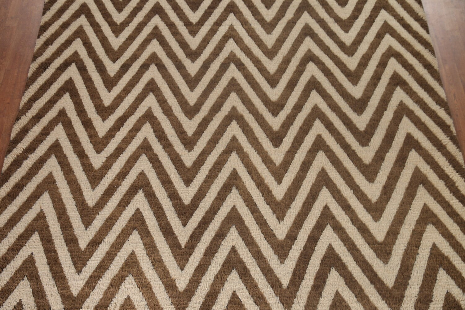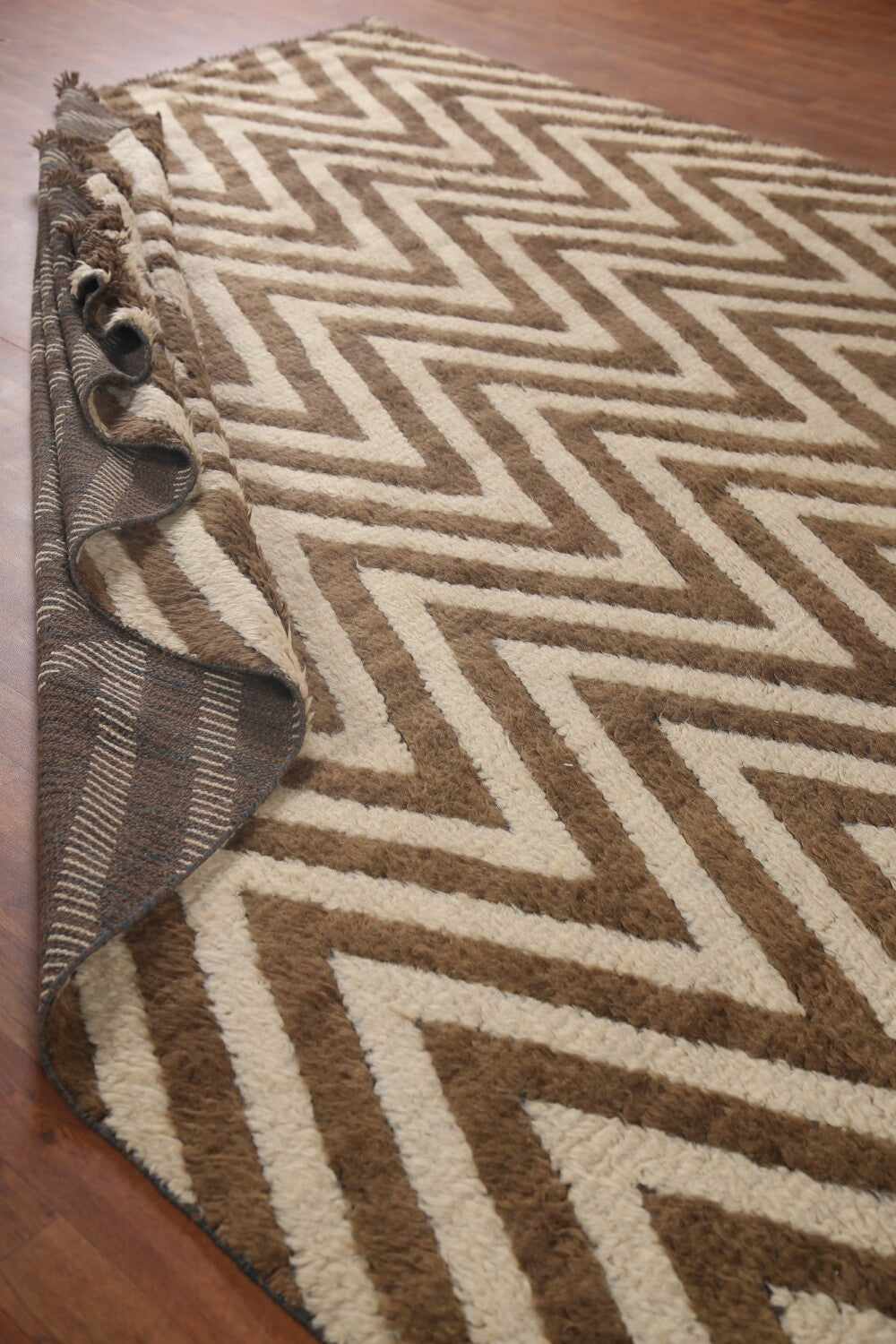 Ivory/ Brown Moroccan Shaggy Wool Area Rug 9x12