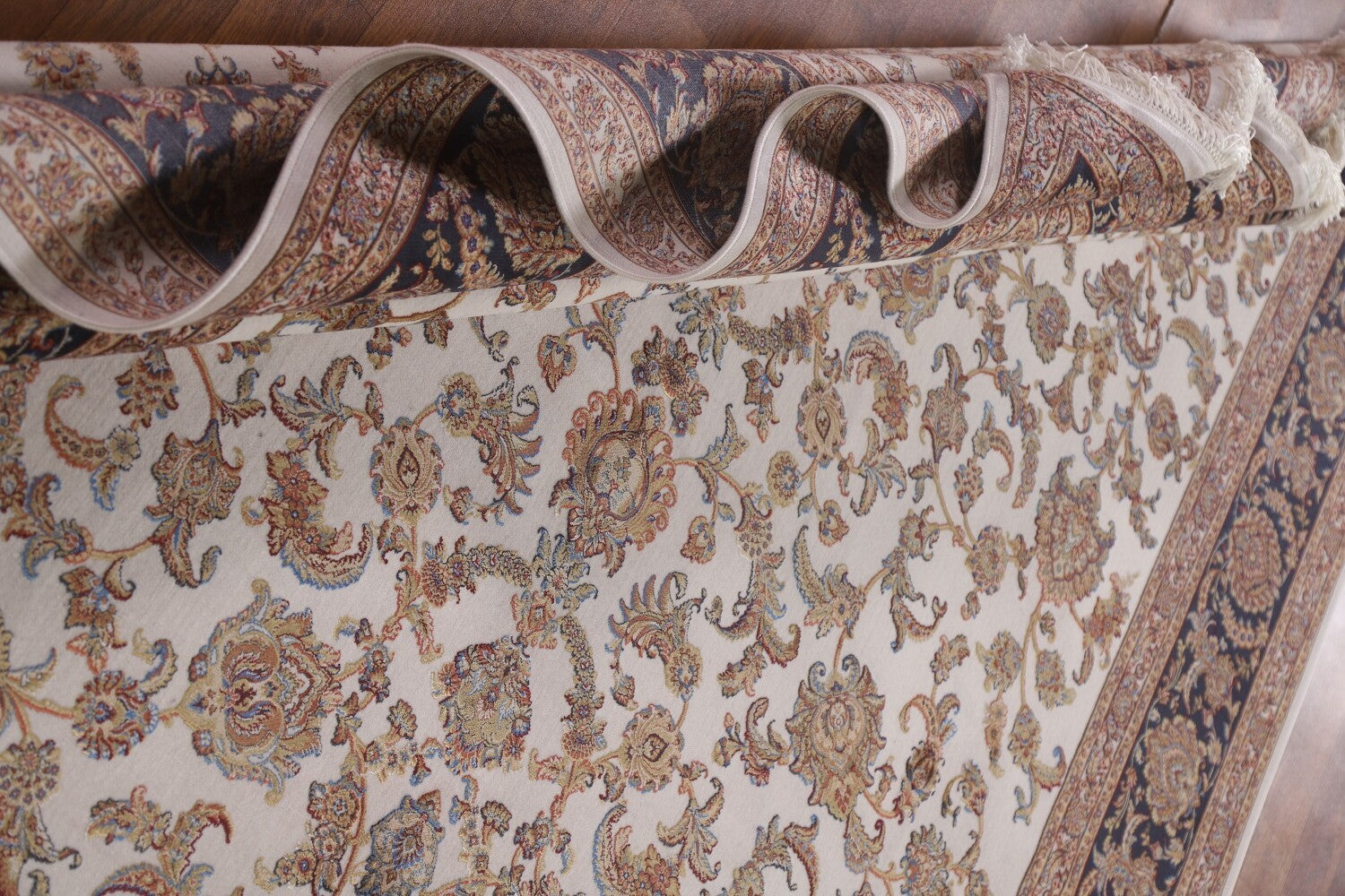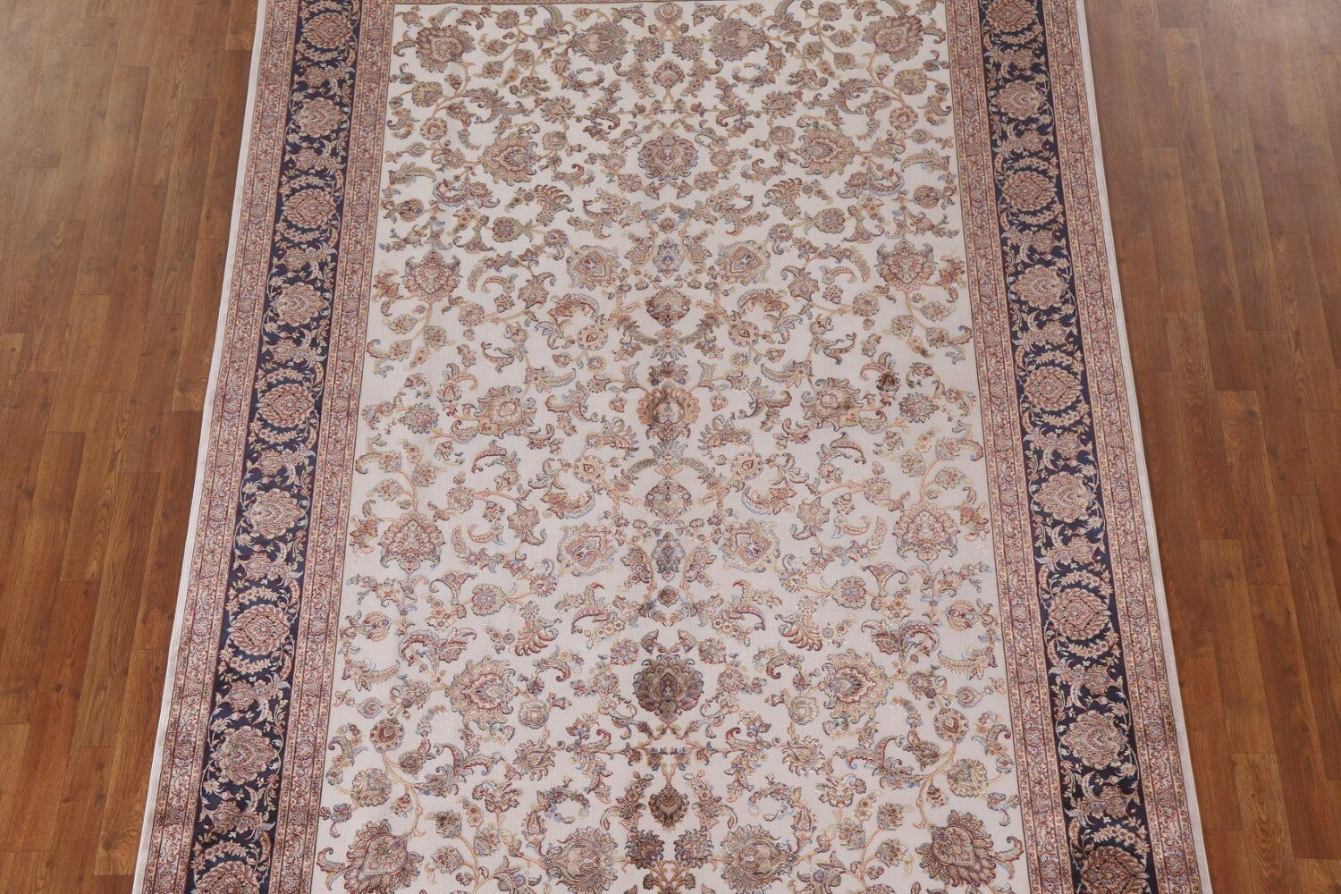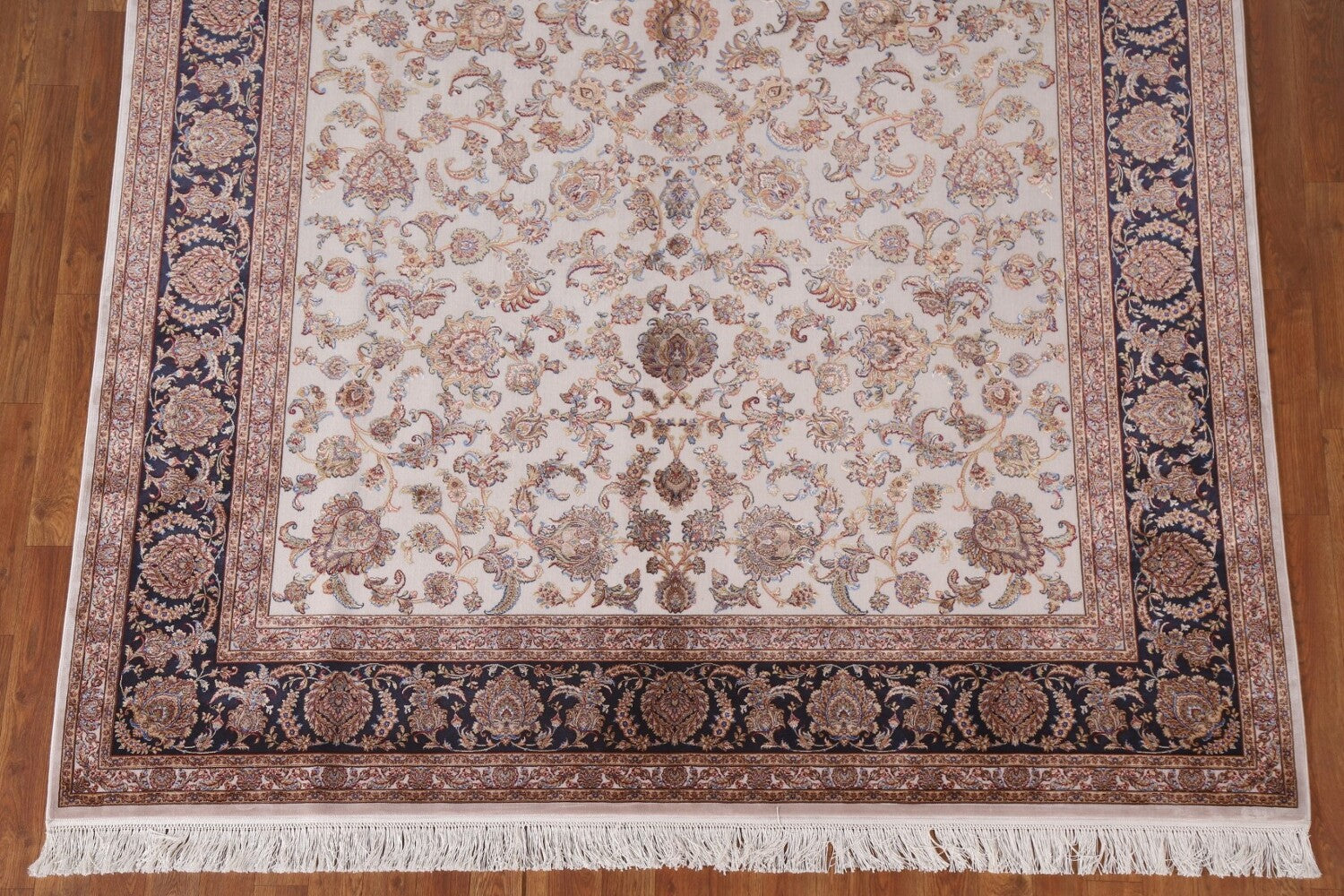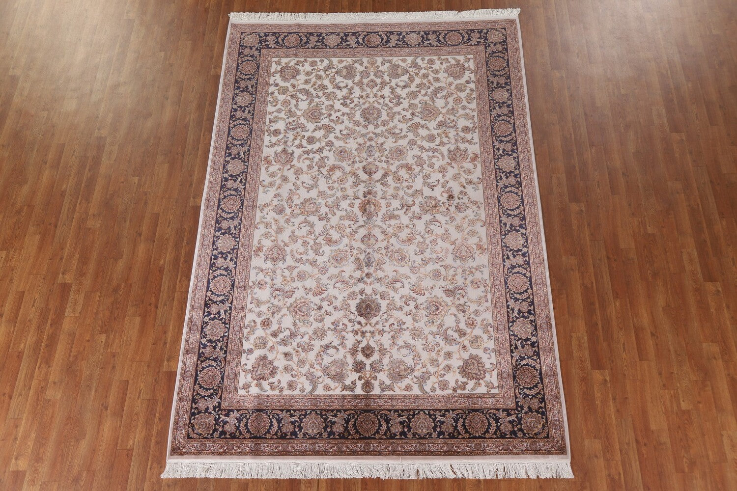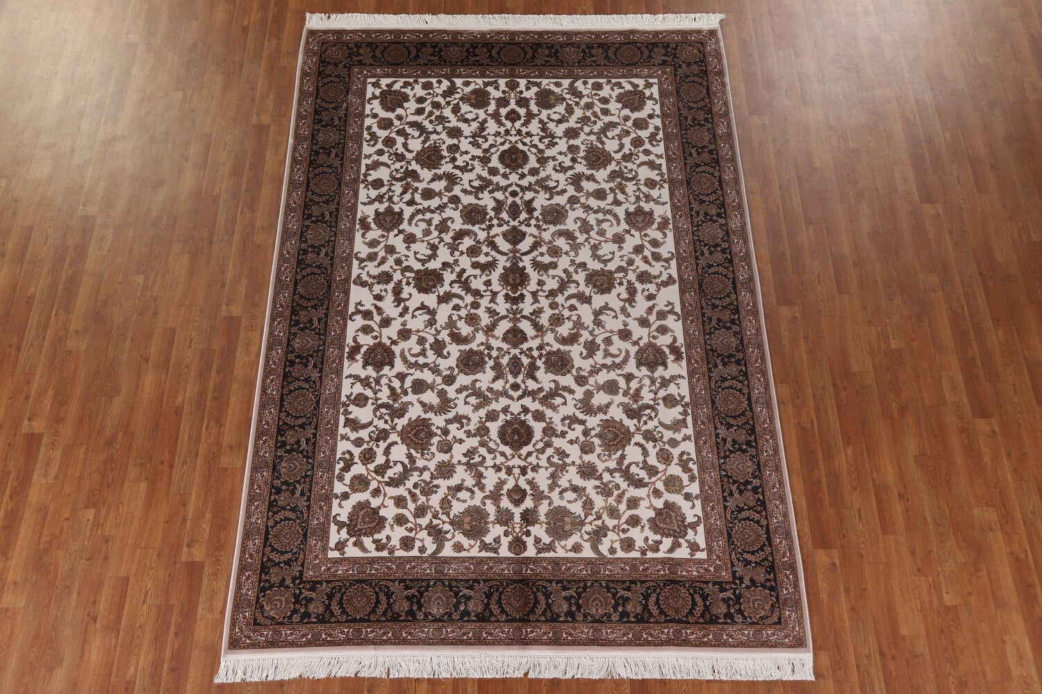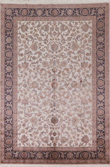 Ivory Floral Silk Tabriz Traditional Area Rug 7x10