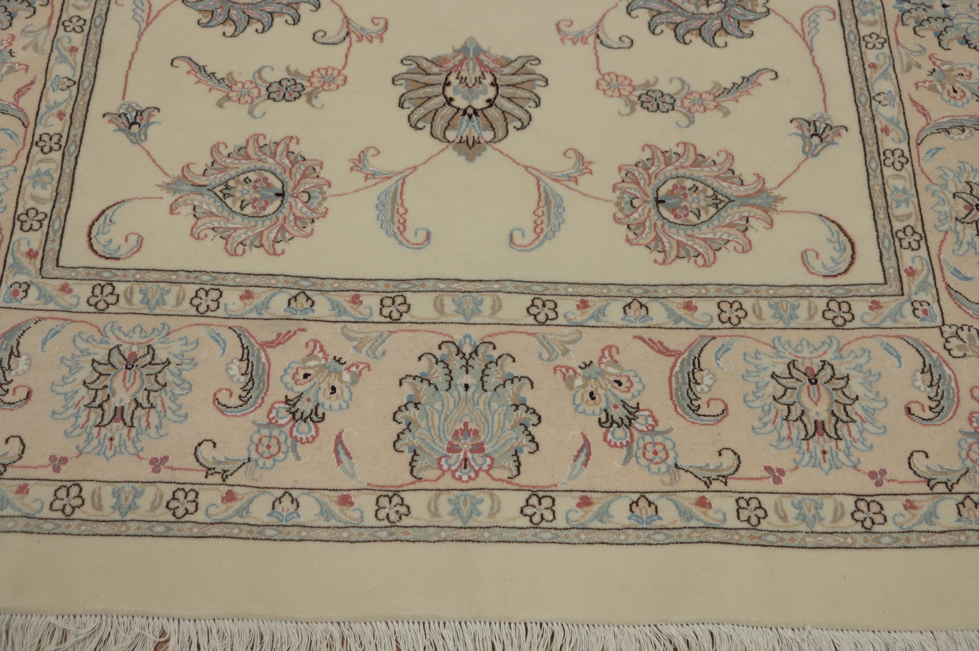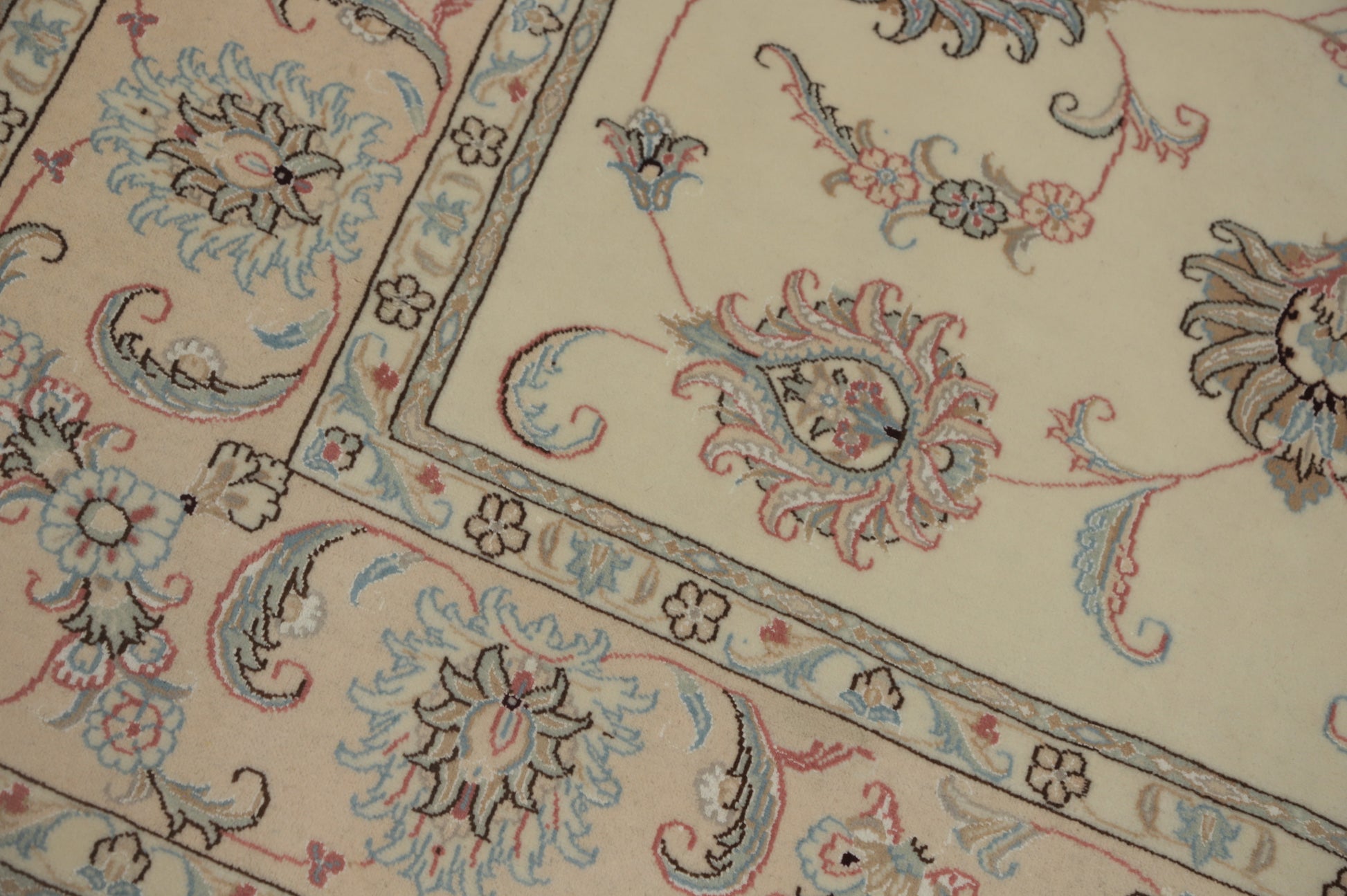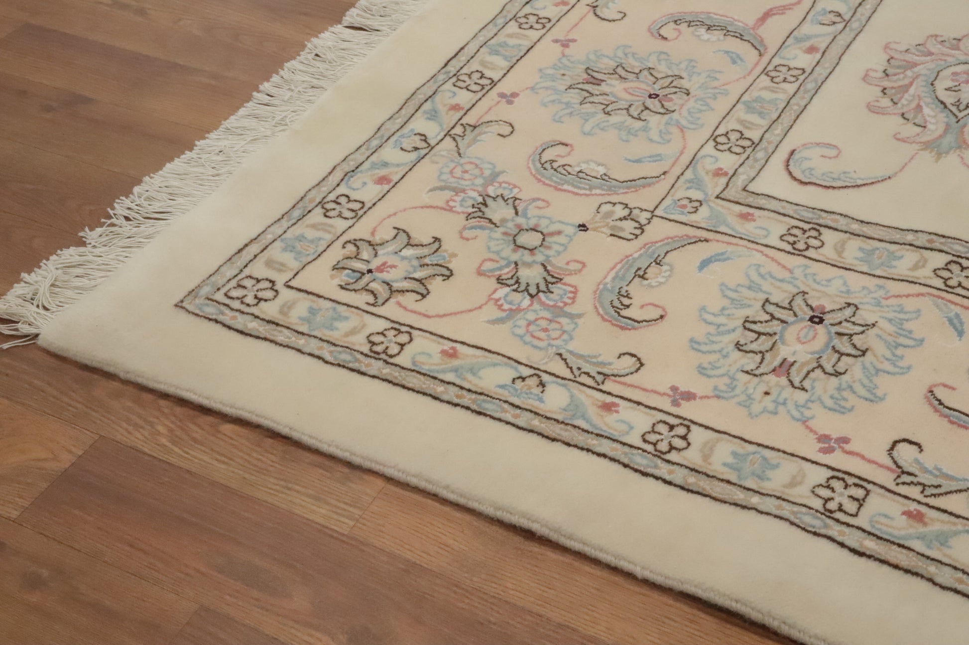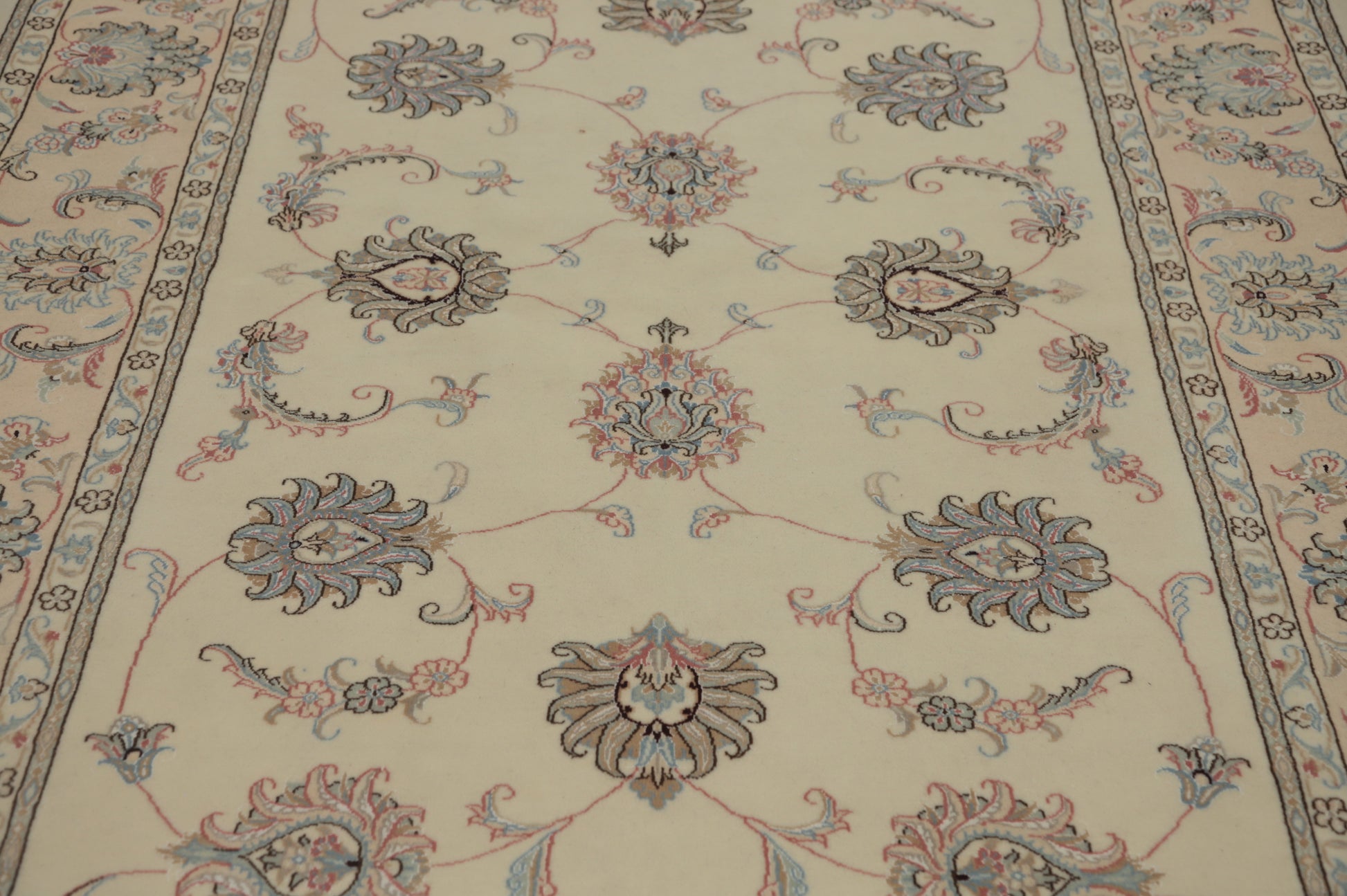 A Beautiful Genuine Persia ( Persia ) Tabriz rug is Hand Knotted by skillful weavers in Persia ( Persia ) with 100% Wool Material. This rug is in New, First Quality condition. dimensions are 7' 11'' X 5' 7'' in foot and 241 X 170 in centimeter. the primary color is Beige & Ivories.