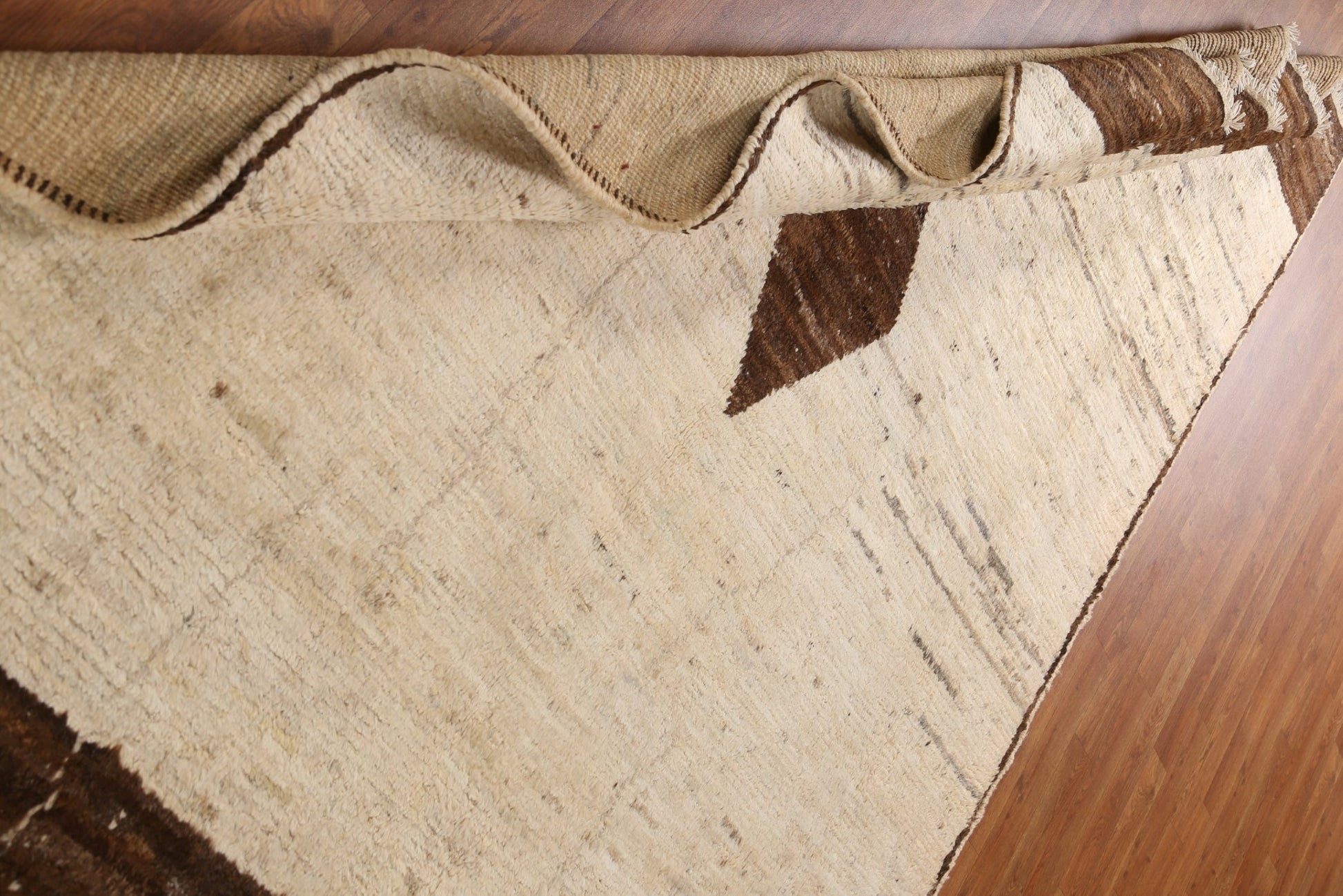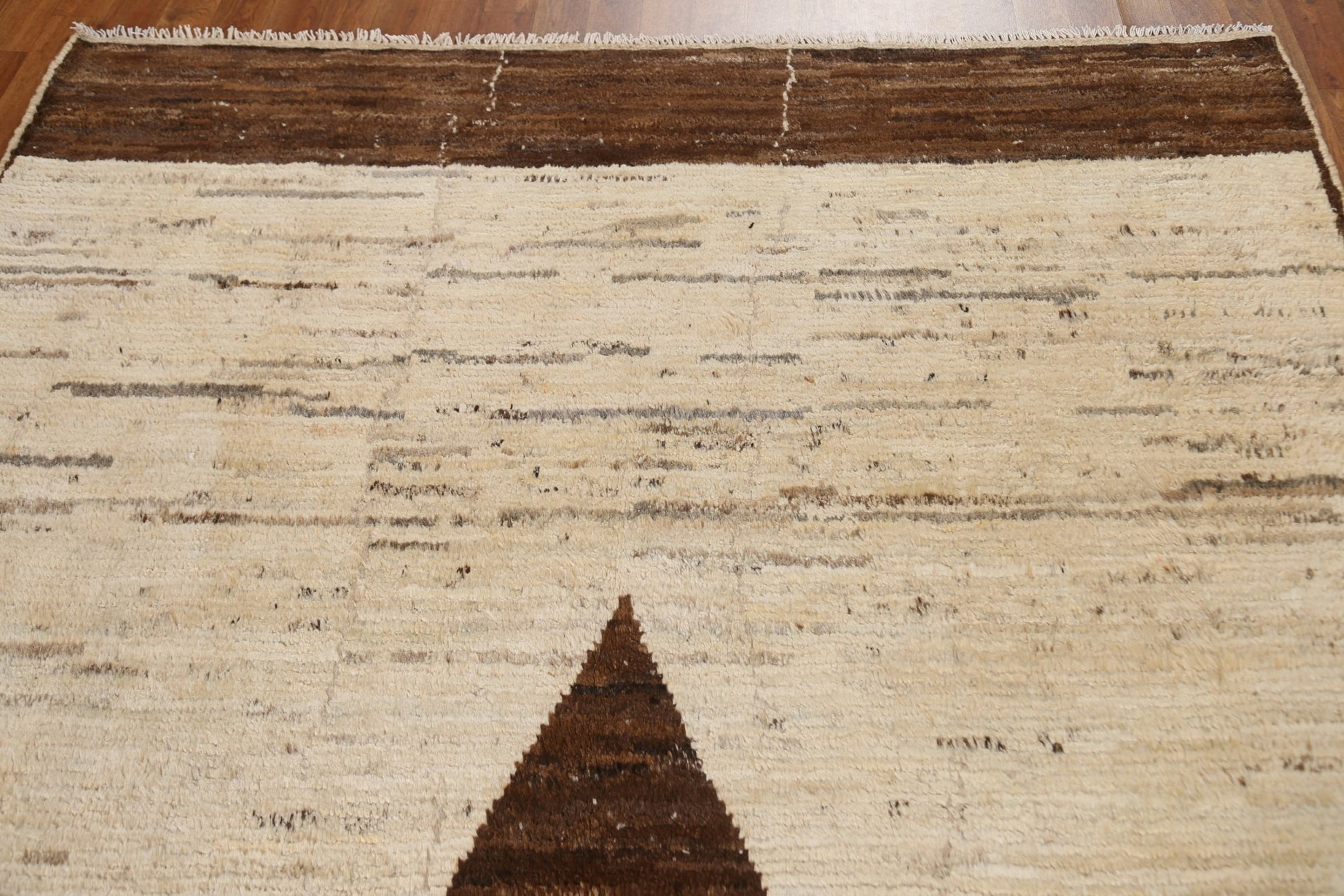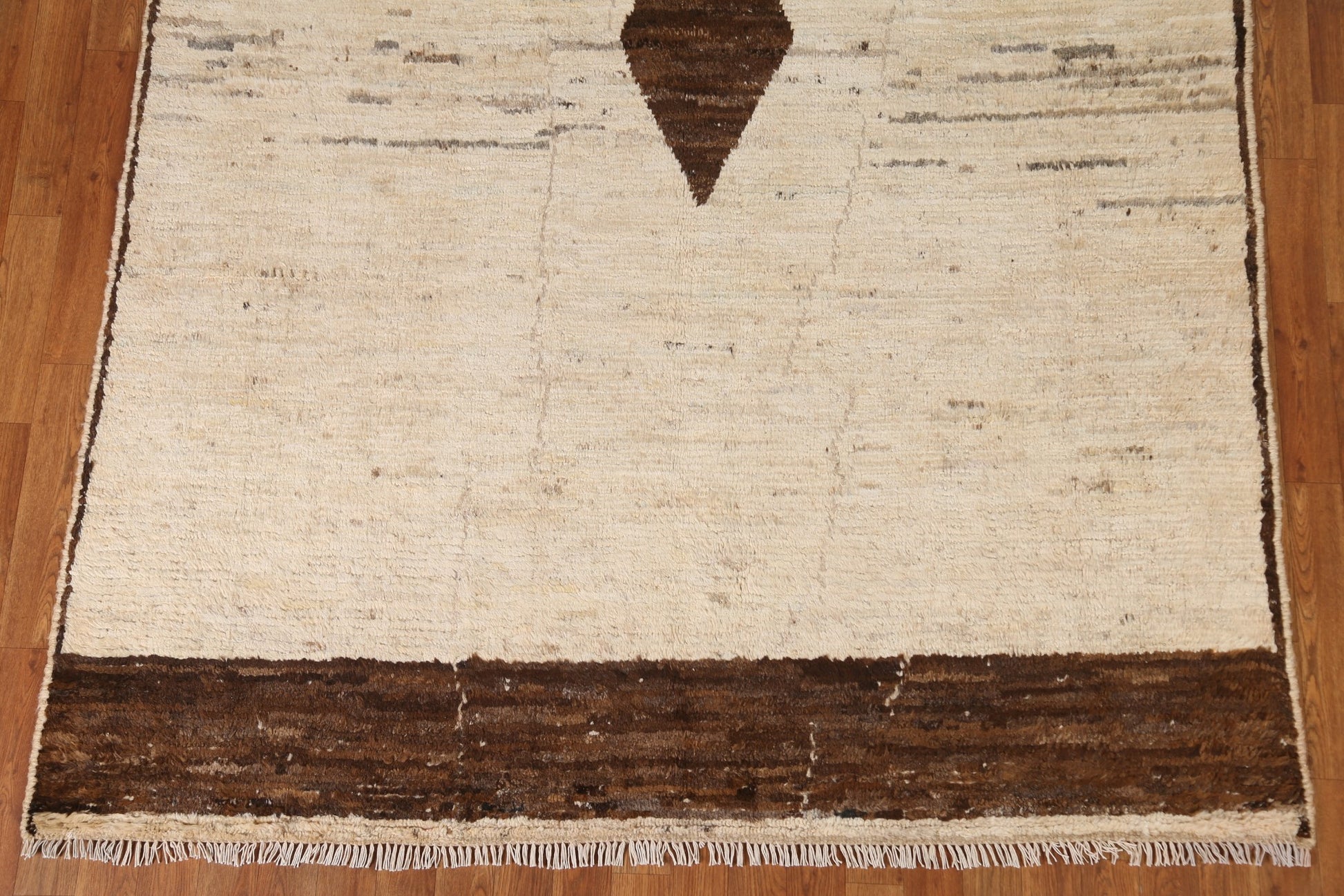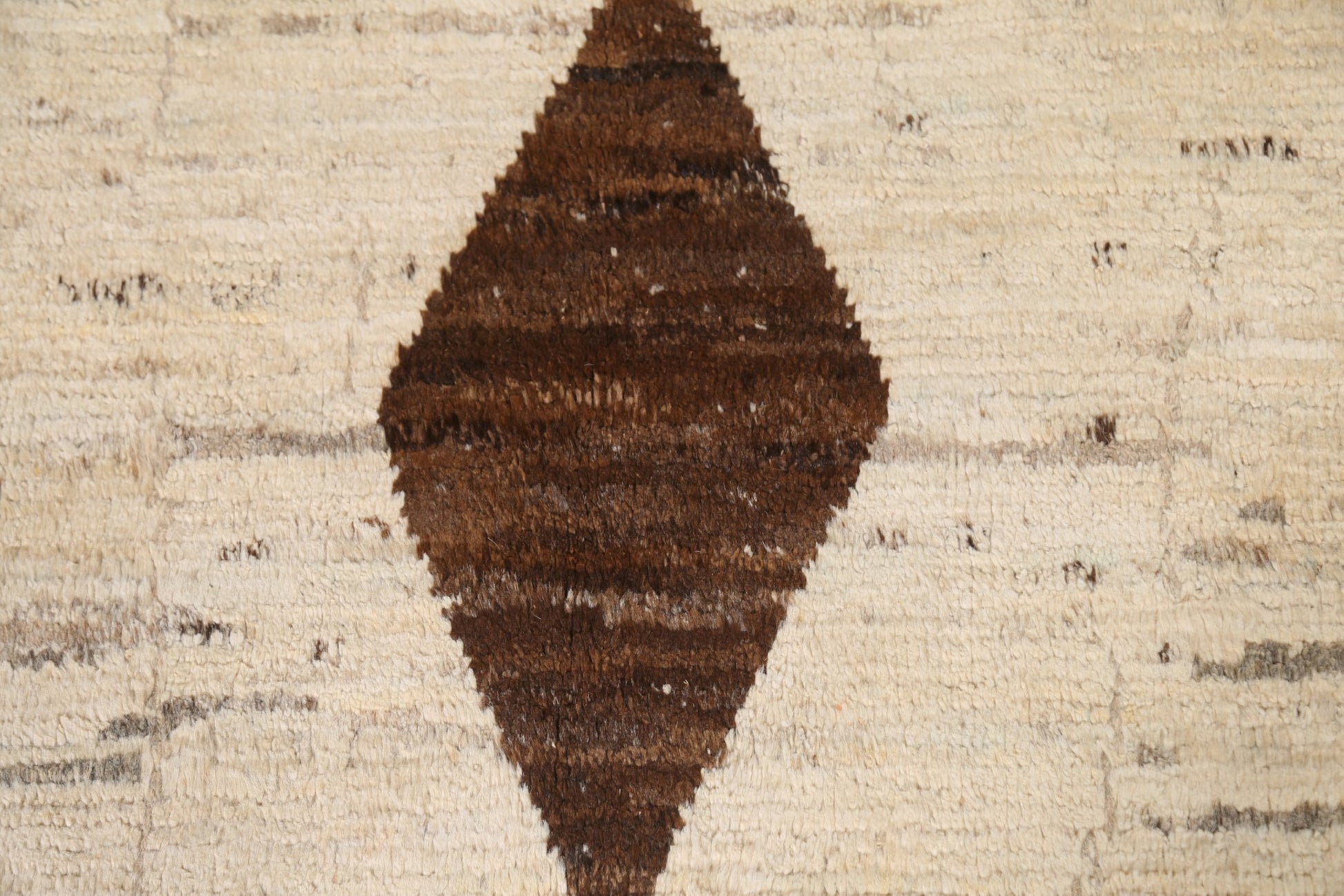 A Beautiful Genuine Pakistan Moroccan rug is Hand Knotted by skillful weavers in Pakistan with 100% Wool Material. This rug is in condition. dimensions are 8' 8'' X 5' 11'' in foot and 264 X 180 in centimeter. the primary color is Beige & Ivories.