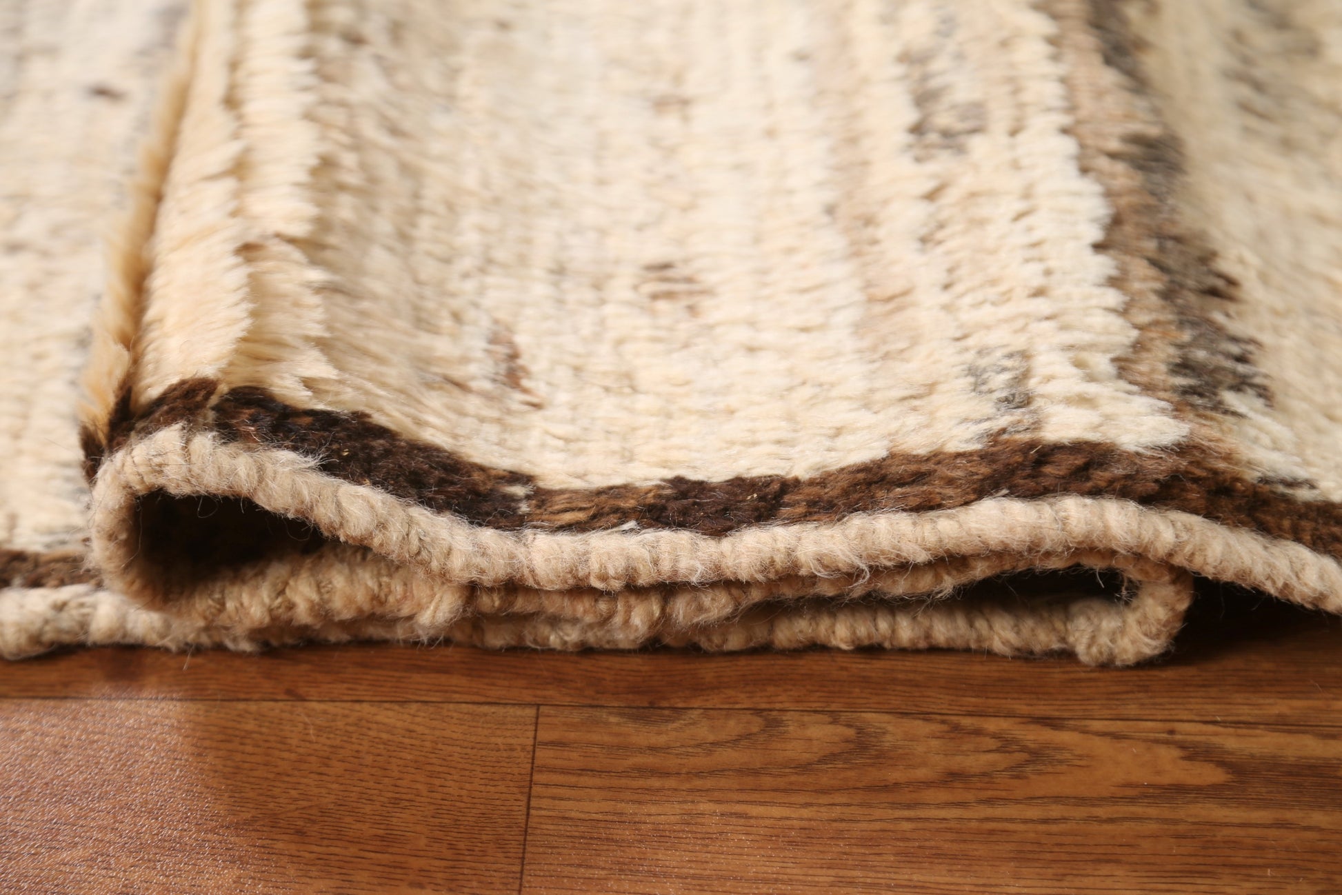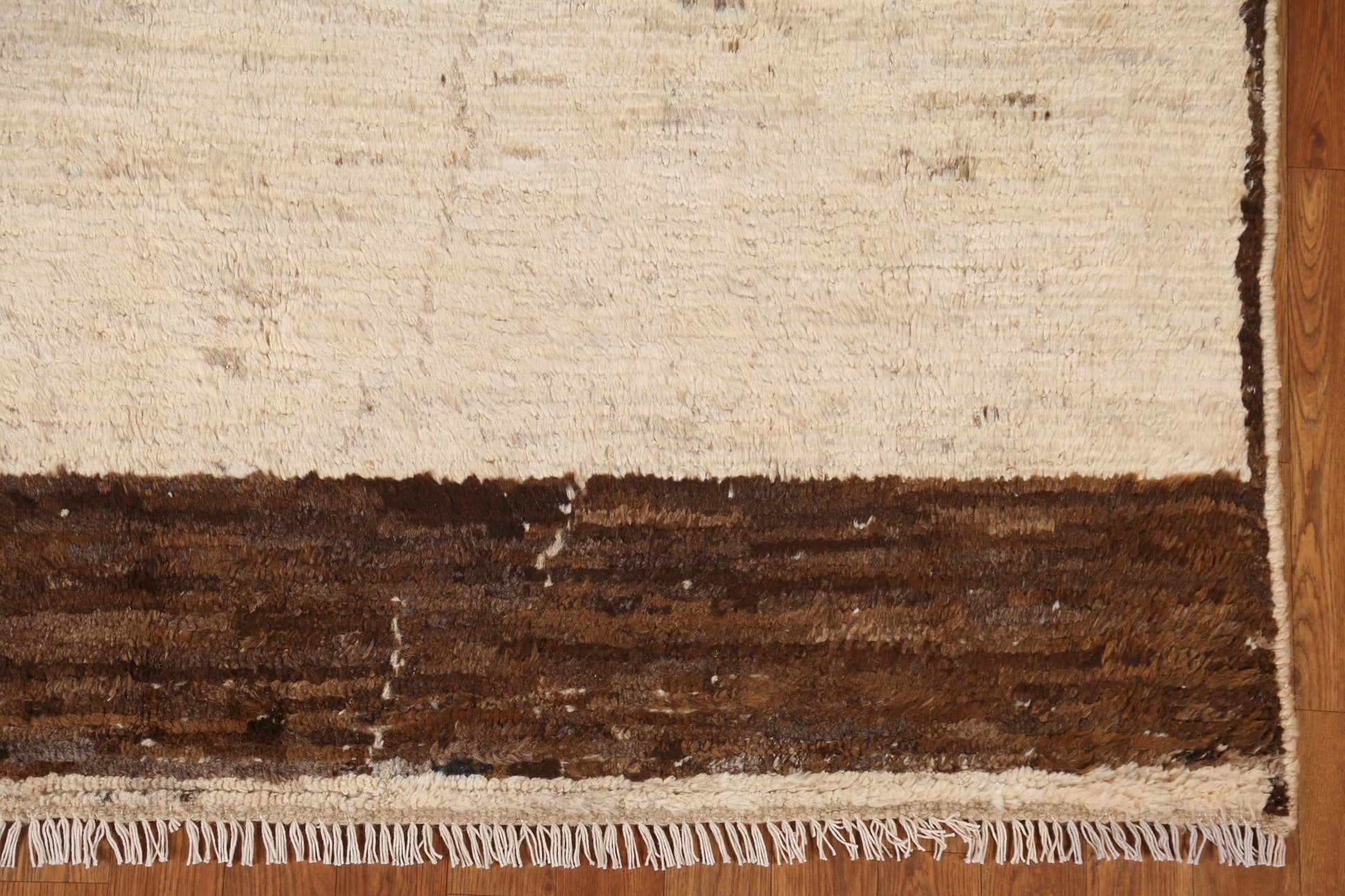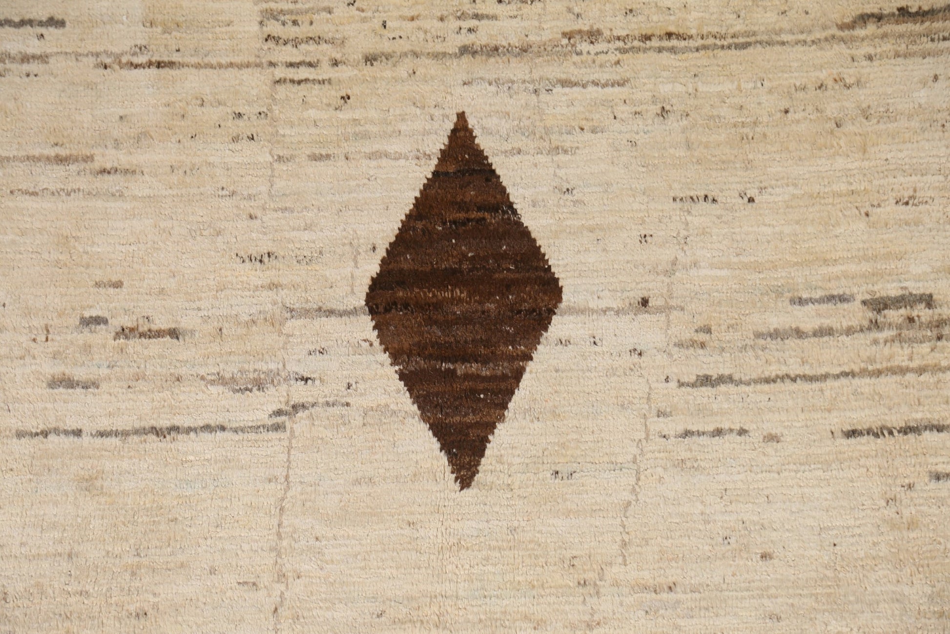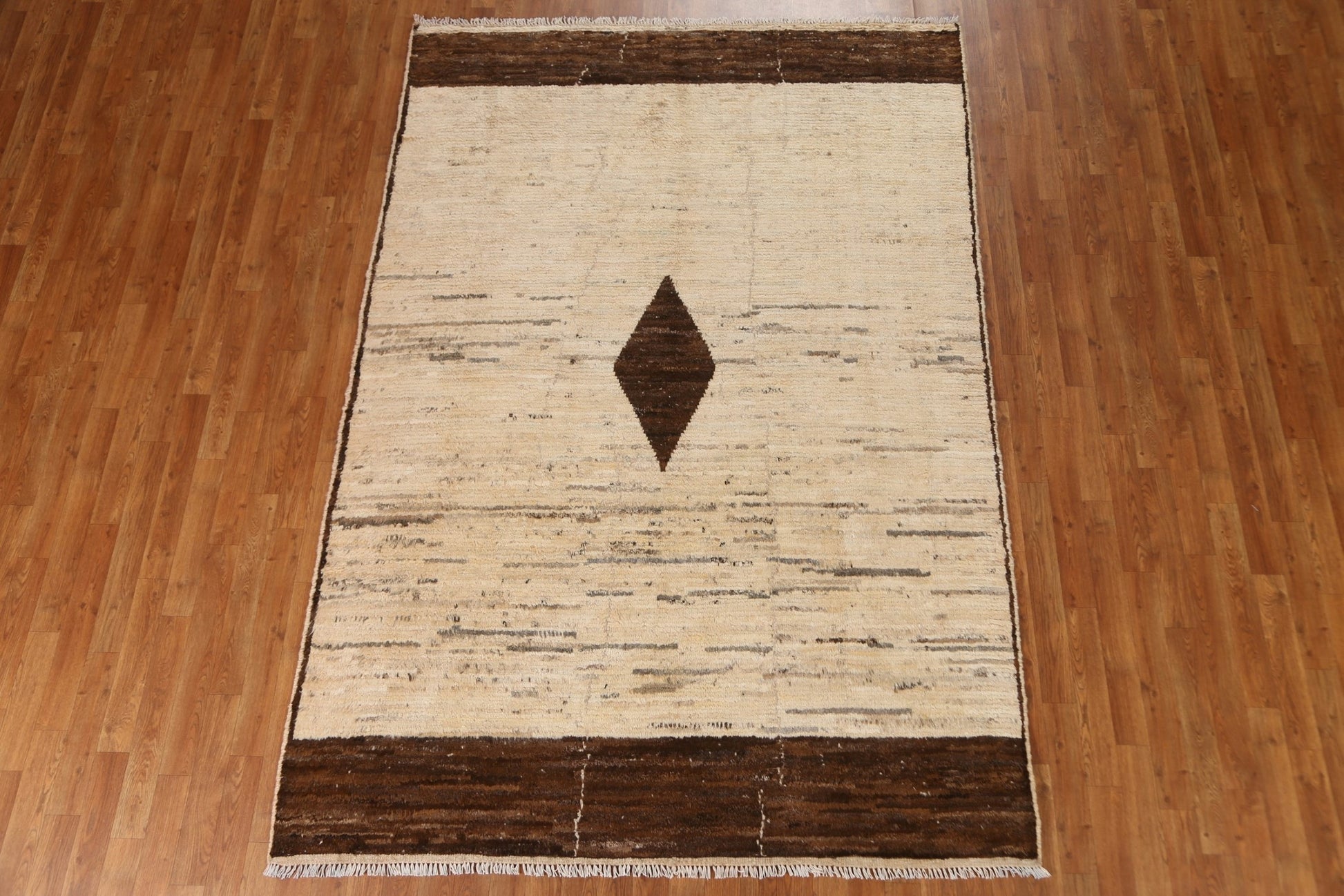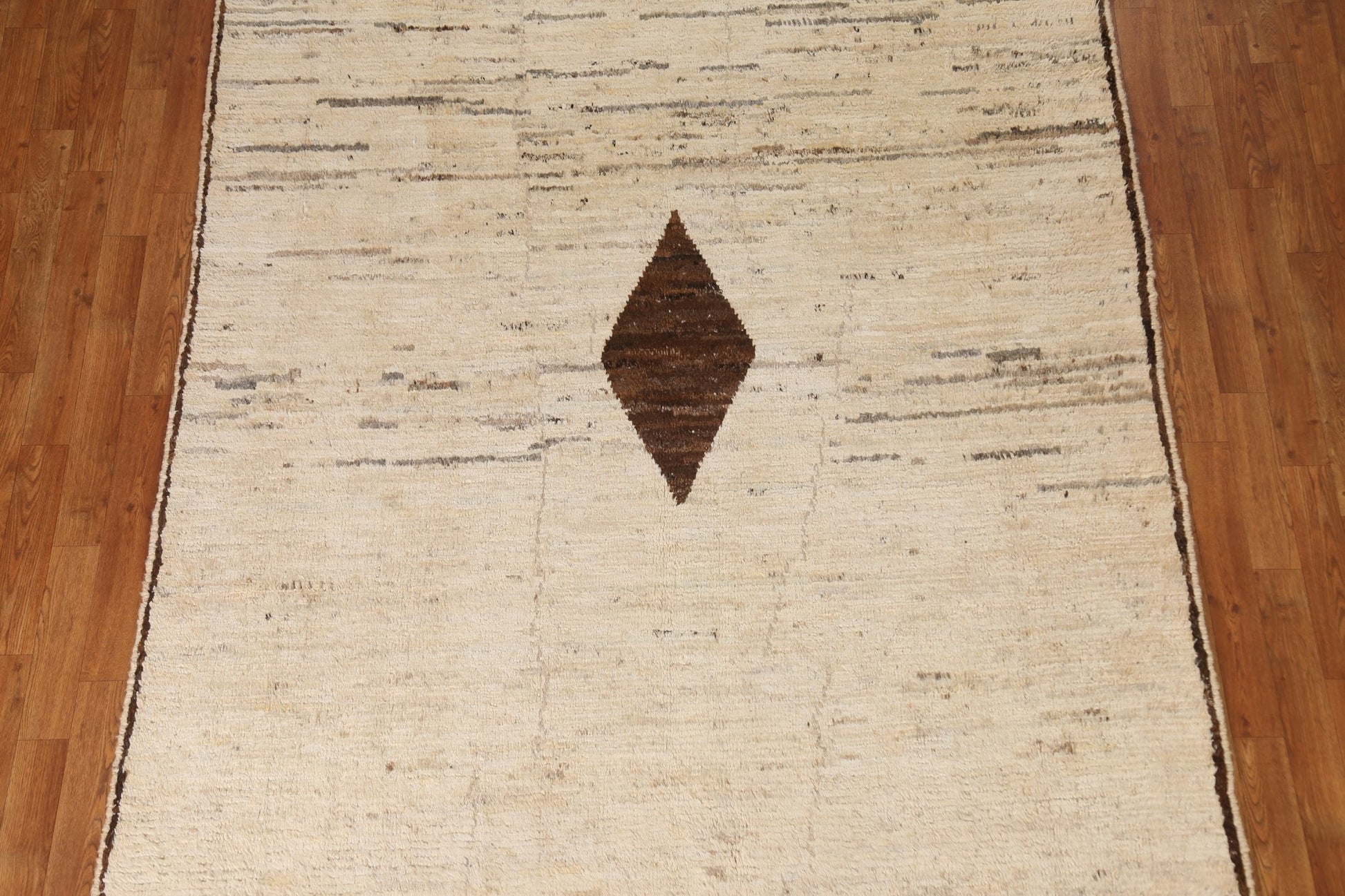 A Beautiful Genuine Pakistan Moroccan rug is Hand Knotted by skillful weavers in Pakistan with 100% Wool Material. This rug is in condition. dimensions are 8' 8'' X 5' 11'' in foot and 264 X 180 in centimeter. the primary color is Beige & Ivories.