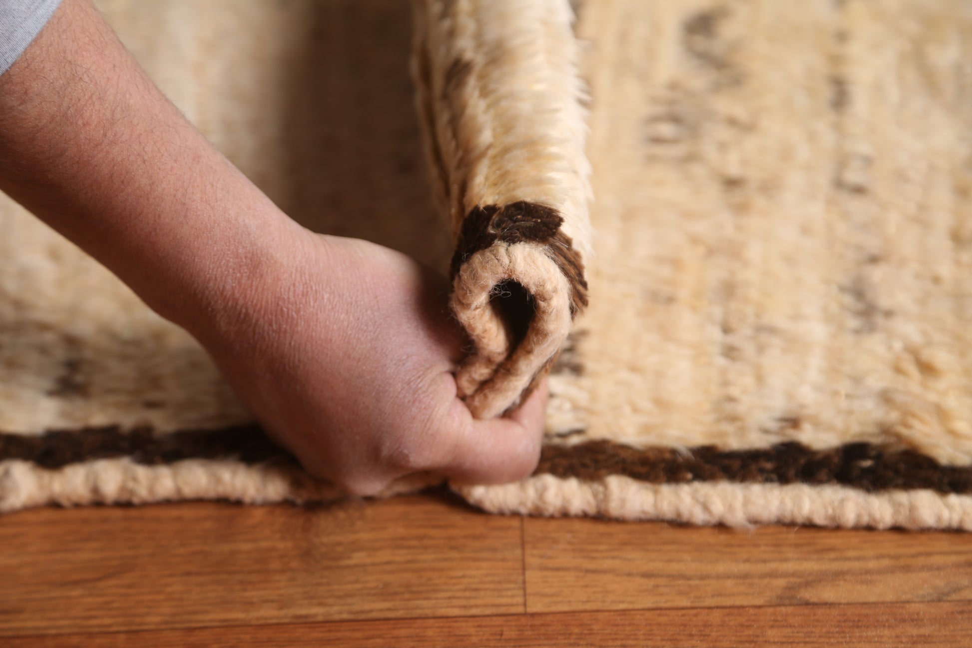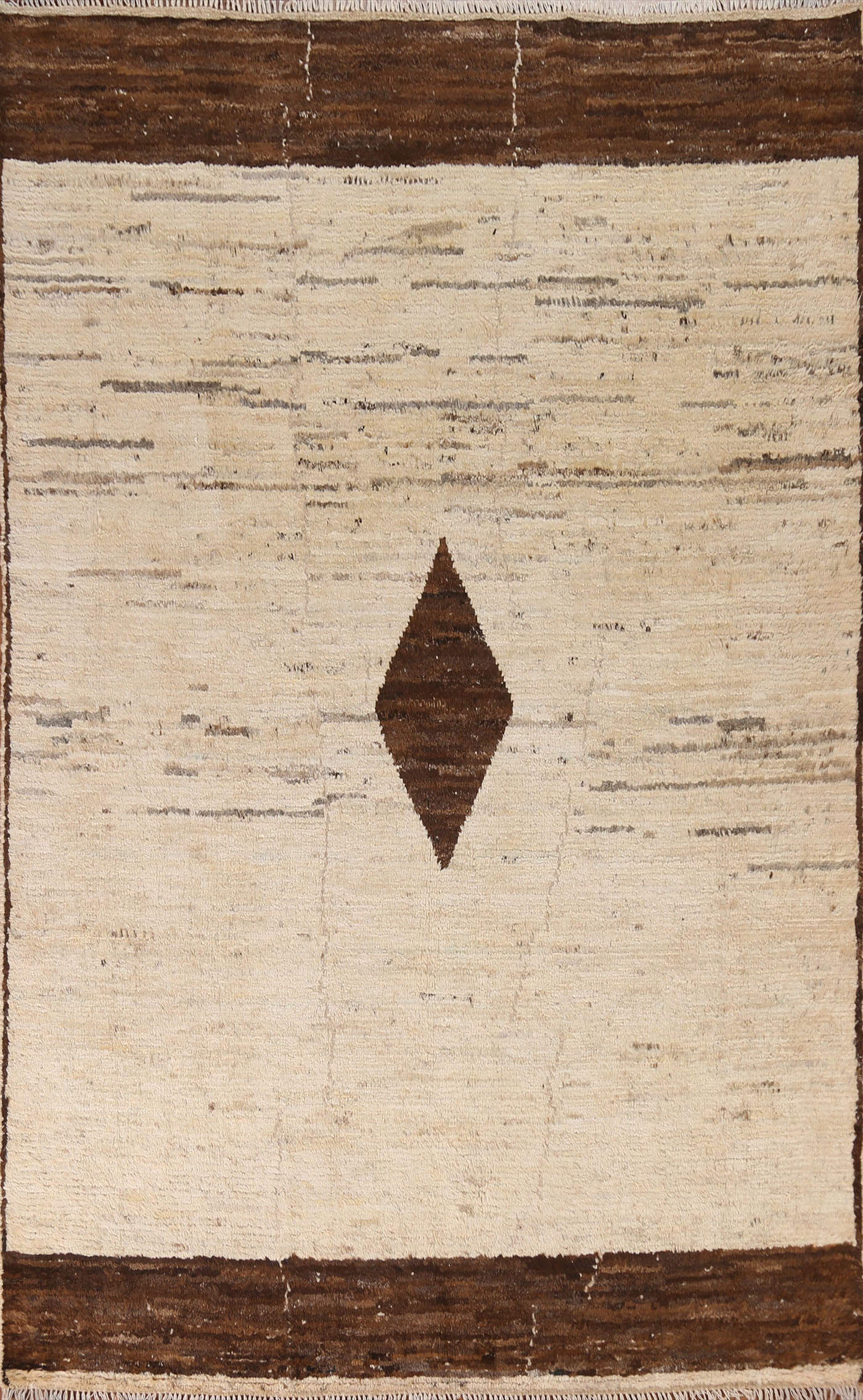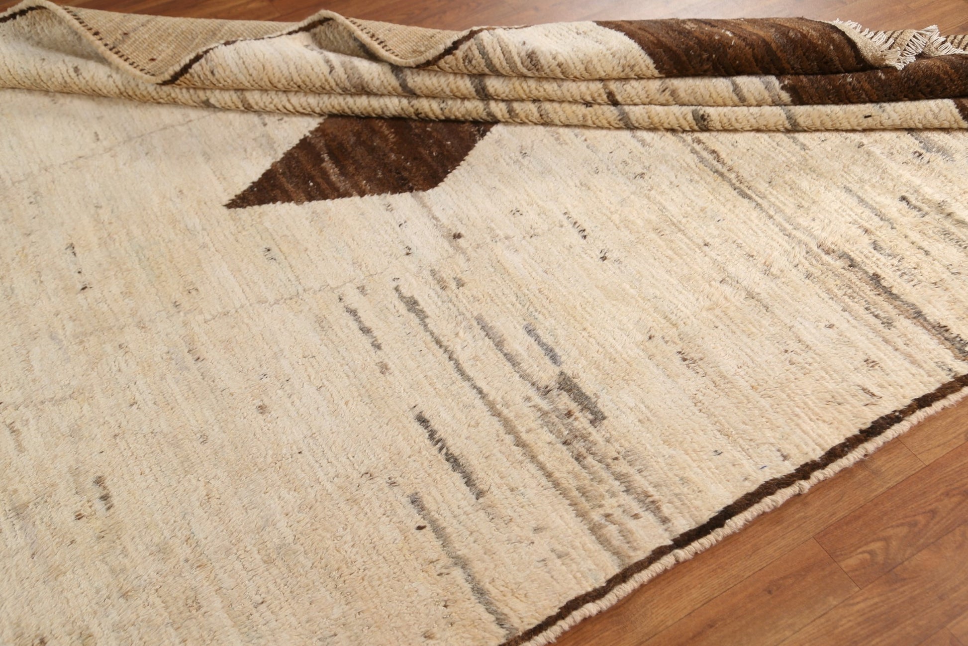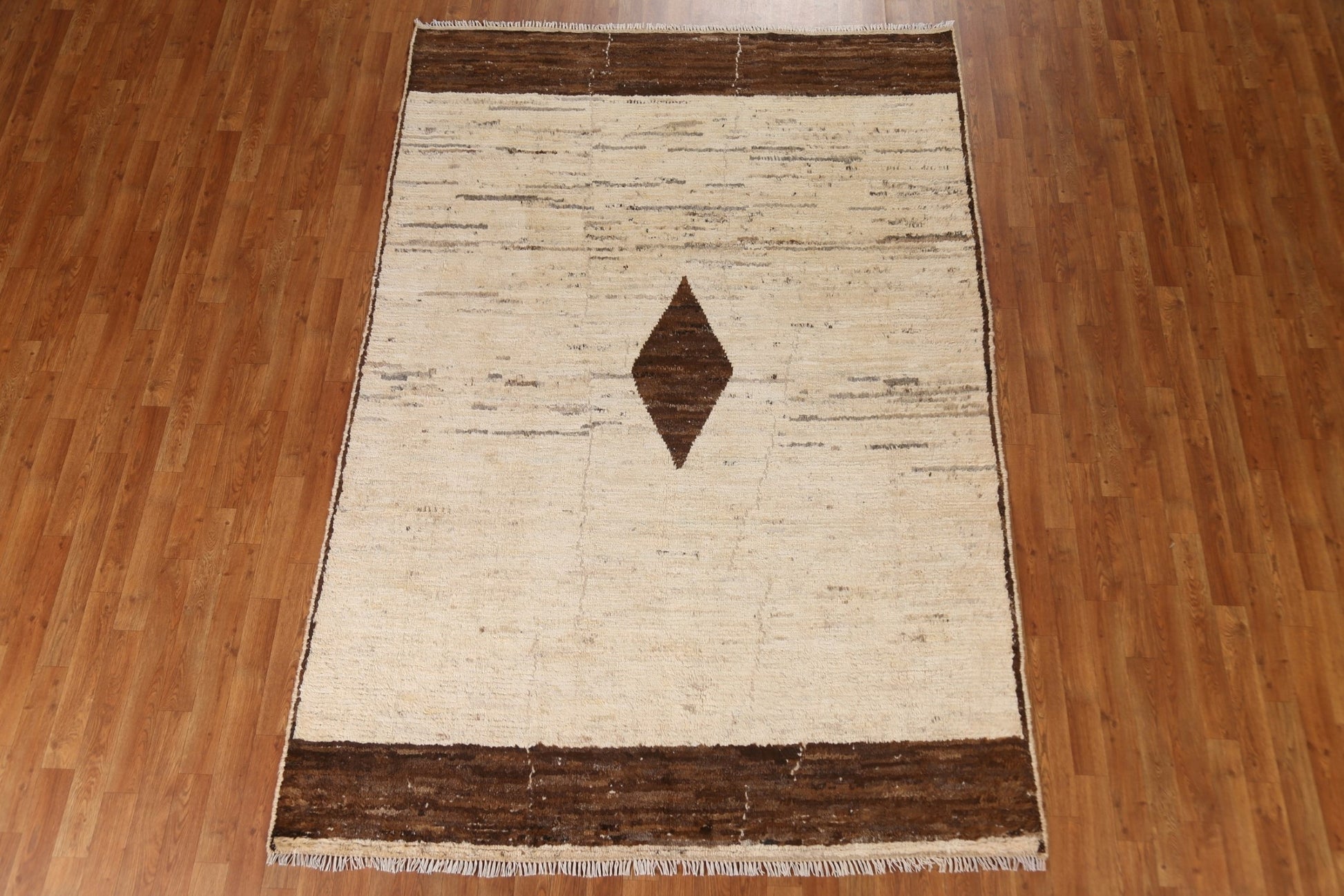 A Beautiful Genuine Pakistan Moroccan rug is Hand Knotted by skillful weavers in Pakistan with 100% Wool Material. This rug is in condition. dimensions are 8' 8'' X 5' 11'' in foot and 264 X 180 in centimeter. the primary color is Beige & Ivories.