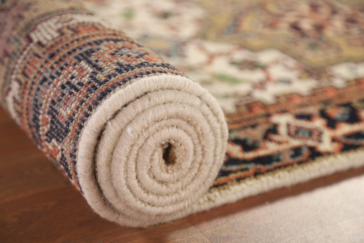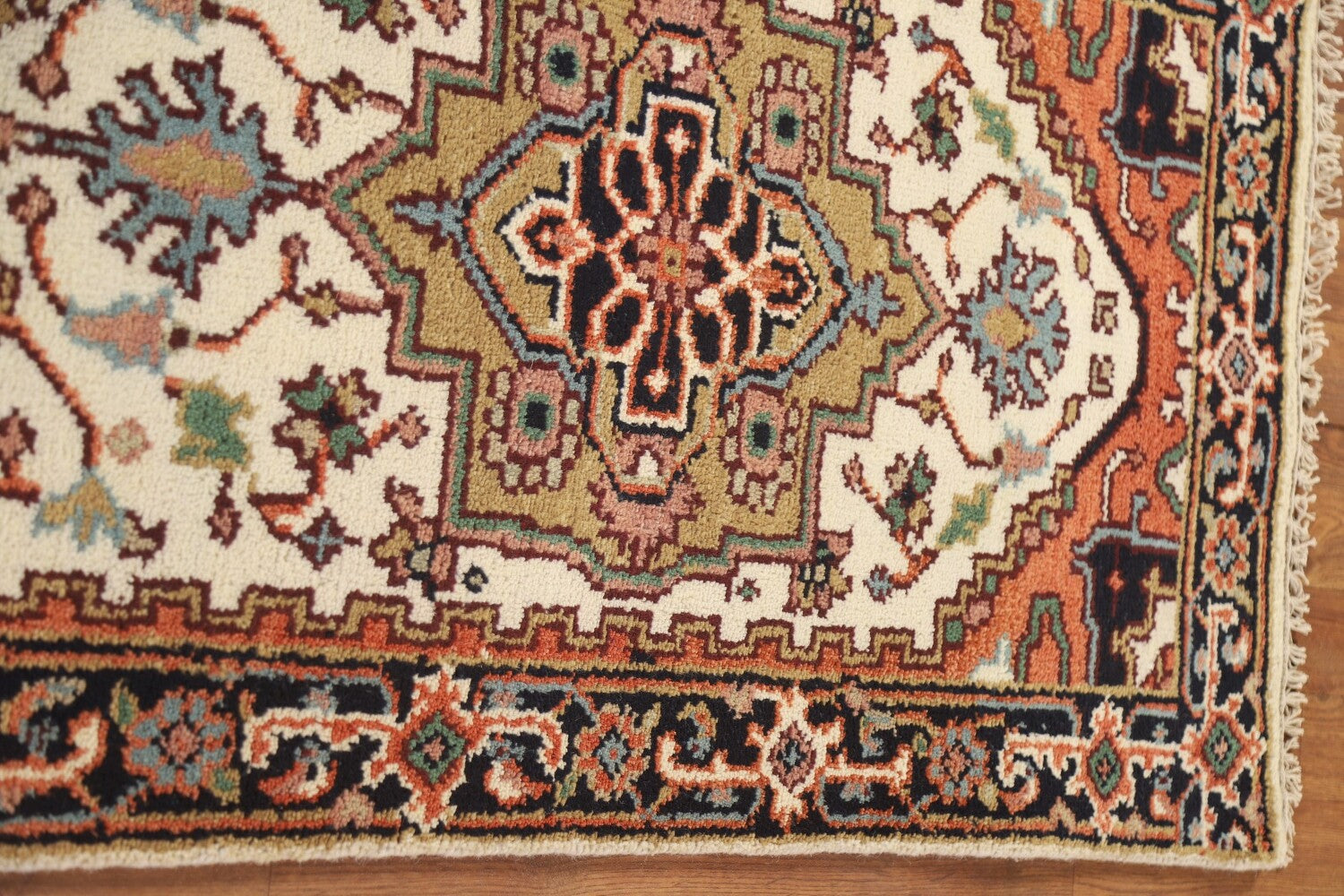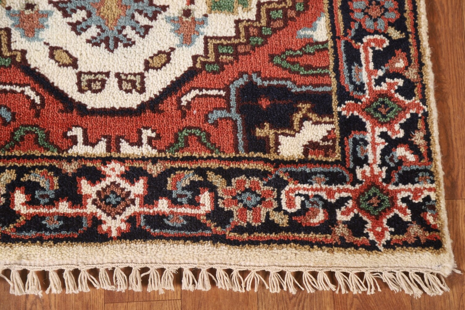 A Beautiful Genuine India Heriz (serapi) rug is Hand Knotted by skillful weavers in India with 100% Wool Material. This rug is in New, First Quality condition. dimensions are 12' 4'' X 2' 5'' in foot and 376 X 74 in centimeter. the primary color is Beige & Ivories.