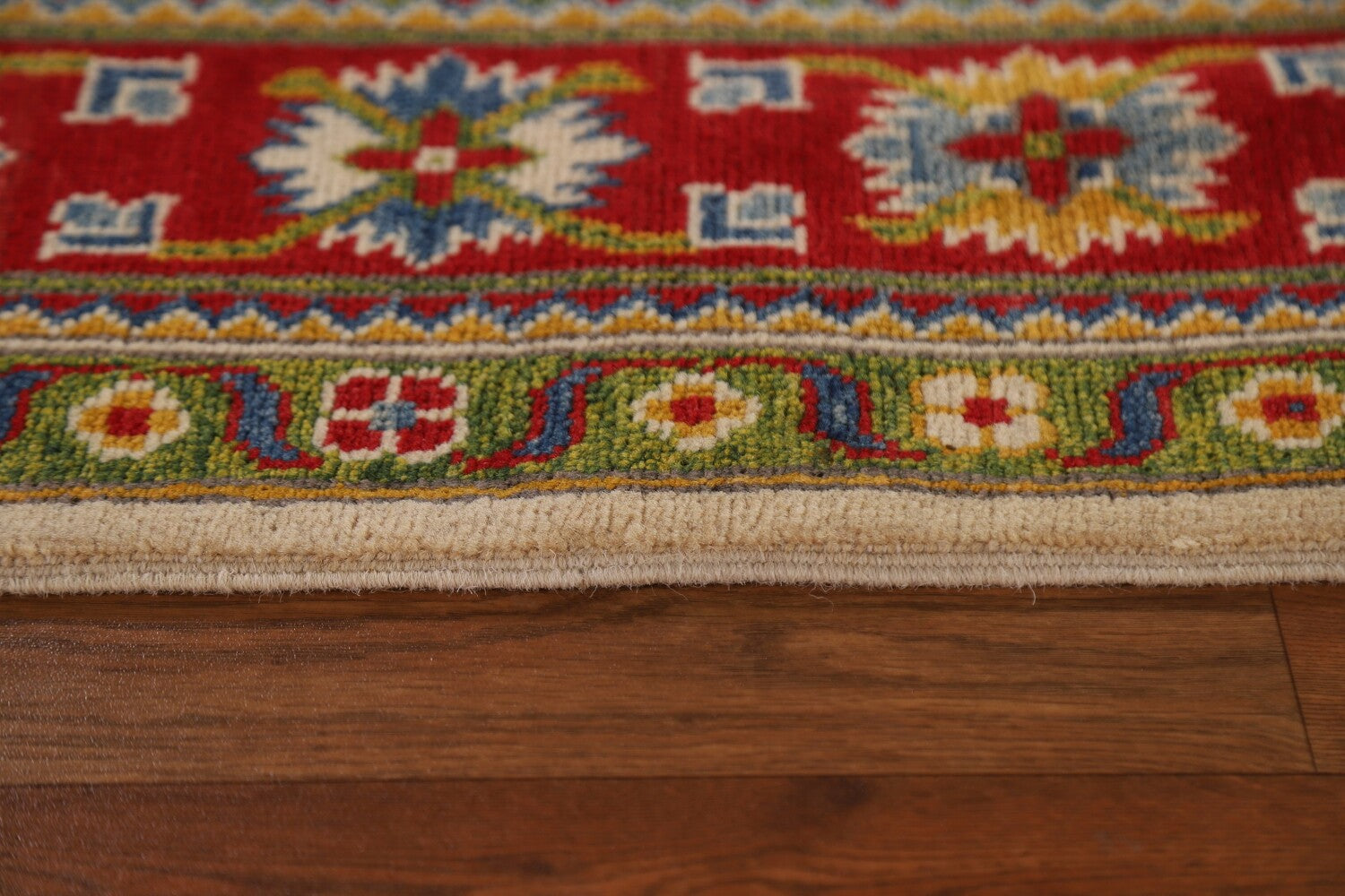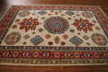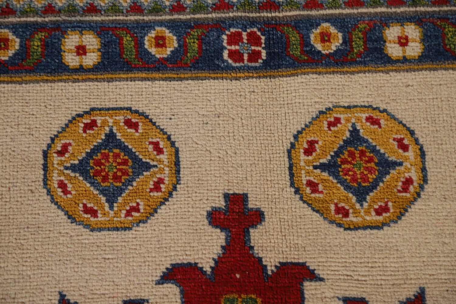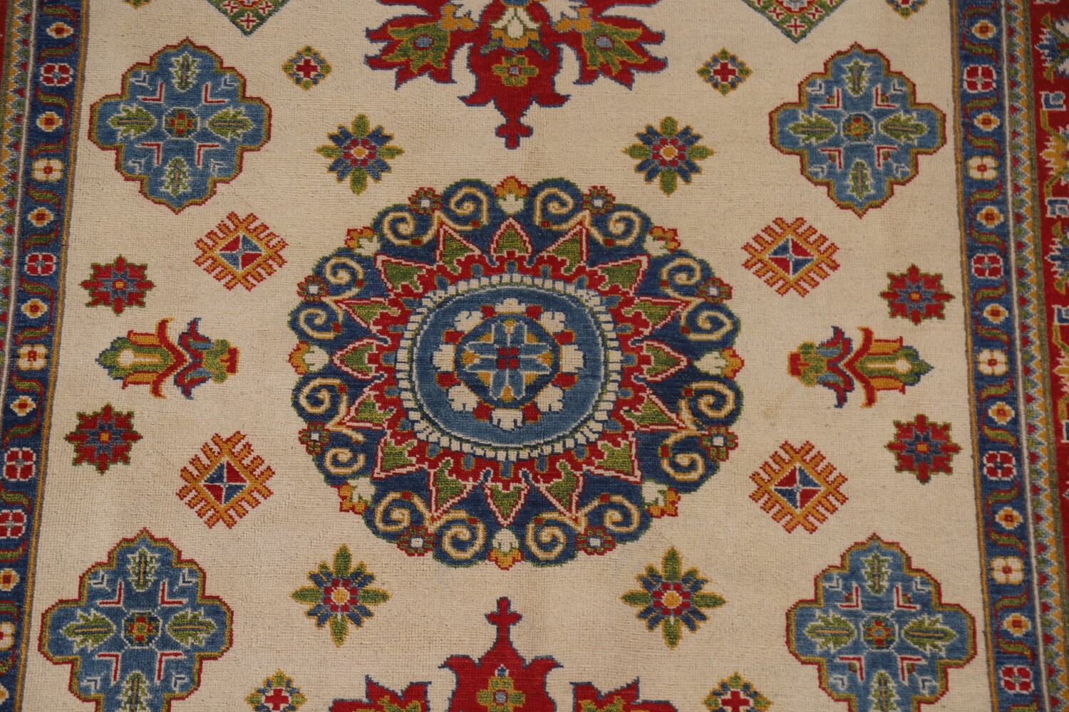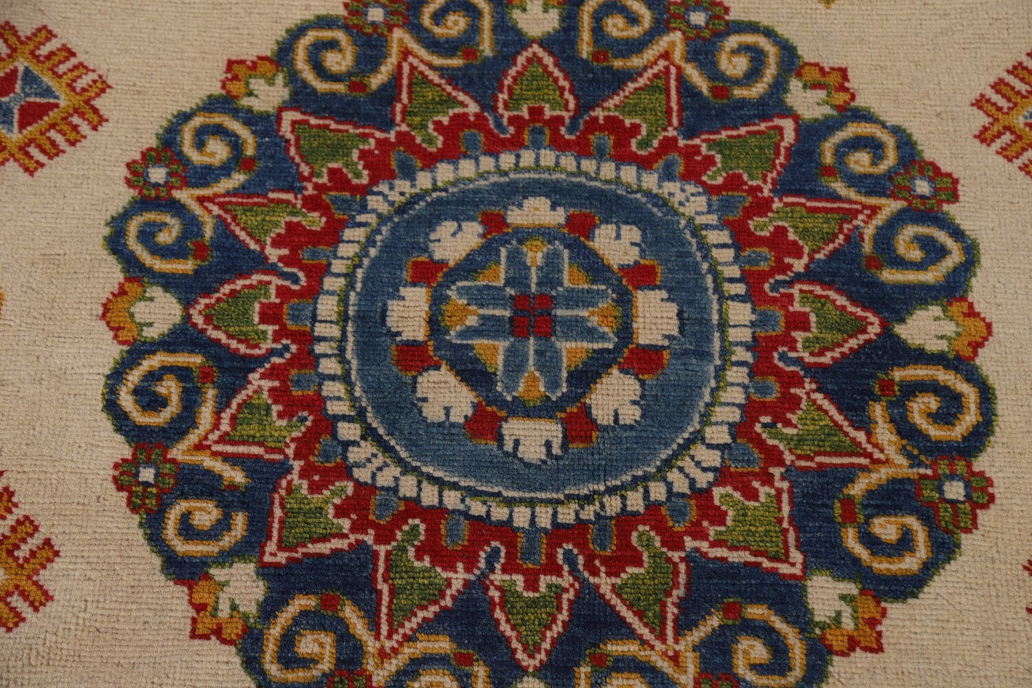 A Beautiful Genuine Pakistan Kazak rug is Hand Knotted by skillful weavers in Pakistan with 100% Wool Material. This rug is in New, First Quality condition. dimensions are 8' 10'' X 6' 0'' in foot and 269 X 183 in centimeter. the primary color is Beige & Ivories.