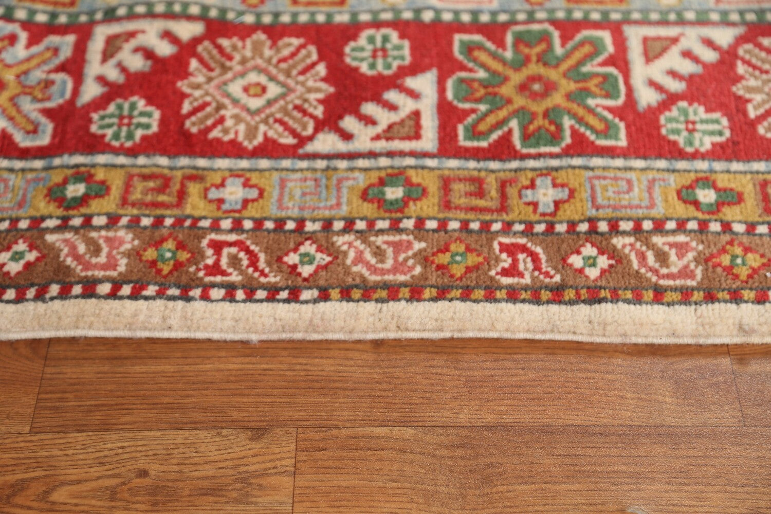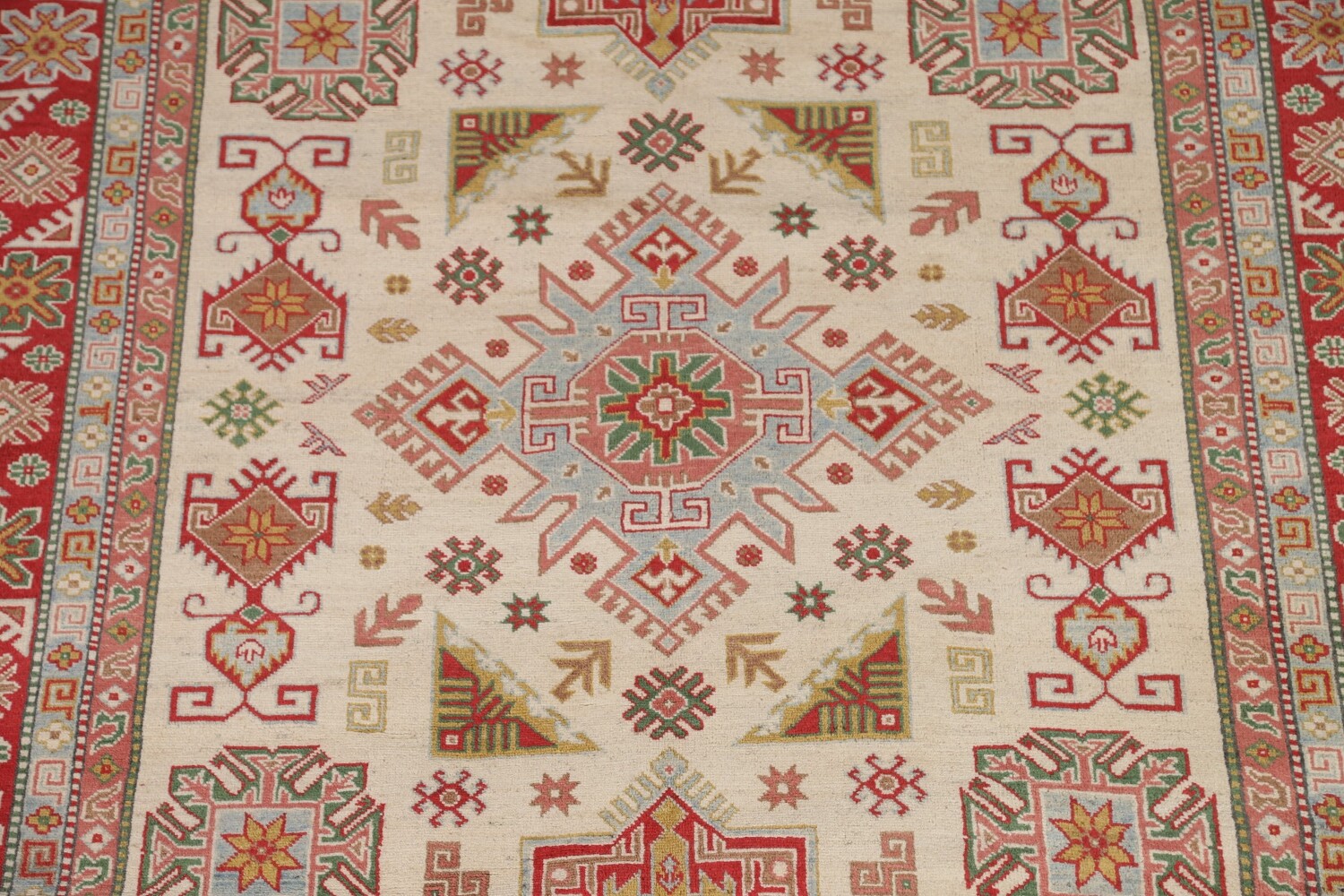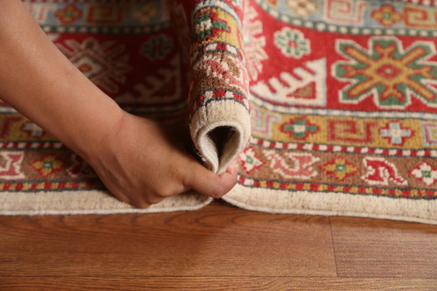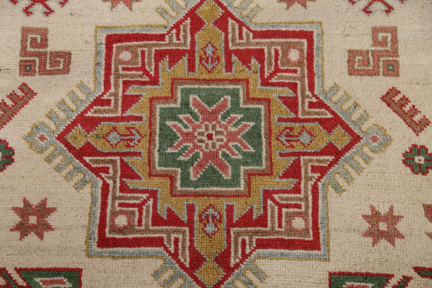 A Beautiful Genuine Pakistan Kazak rug is Hand Knotted by skillful weavers in Pakistan with 100% Wool Material. This rug is in condition. dimensions are 9' 7'' X 6' 7'' in foot and 292 X 201 in centimeter. the primary color is Beige & Ivories.