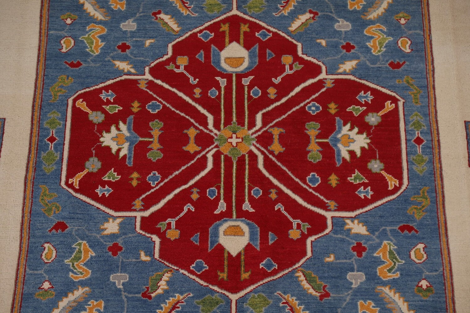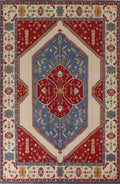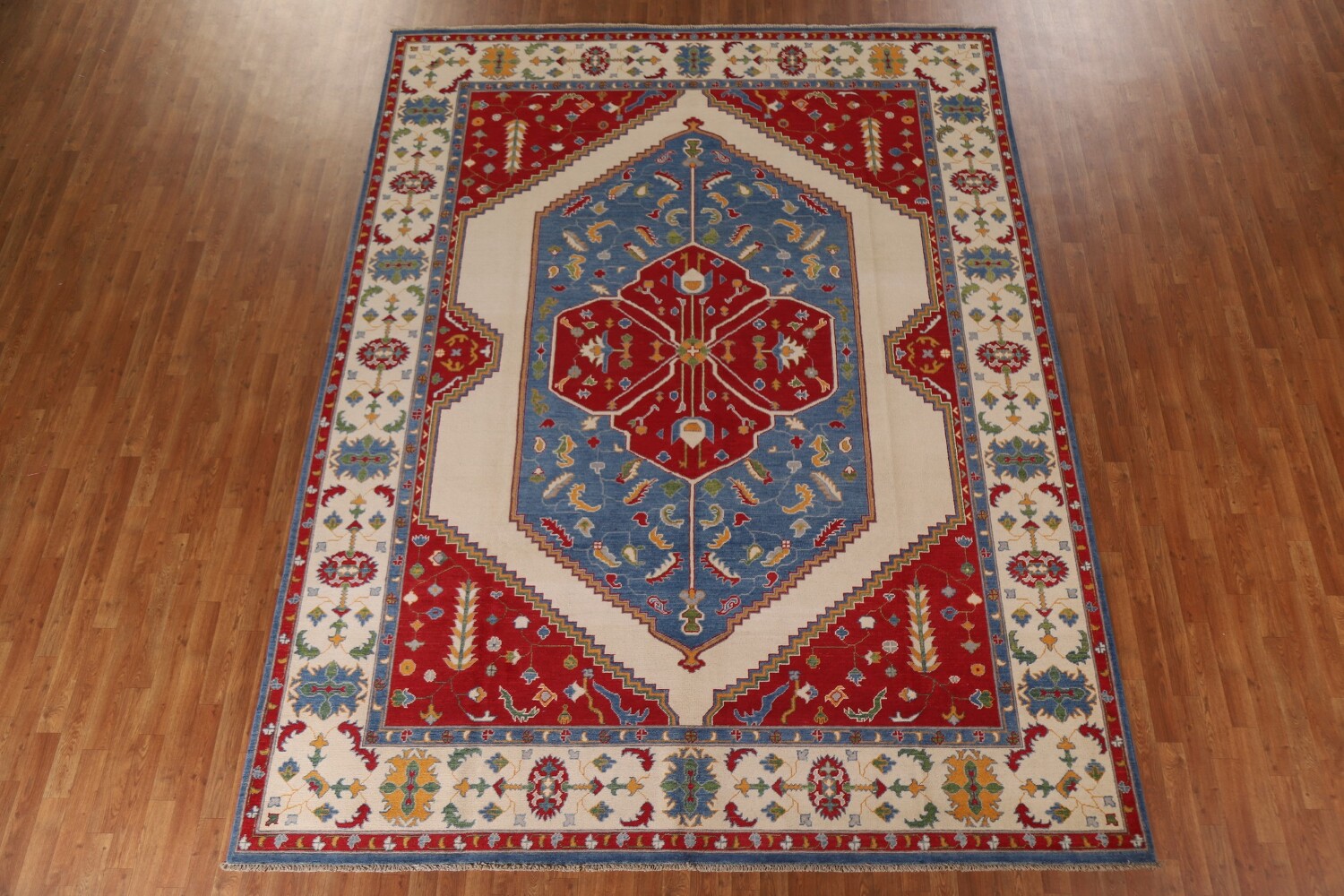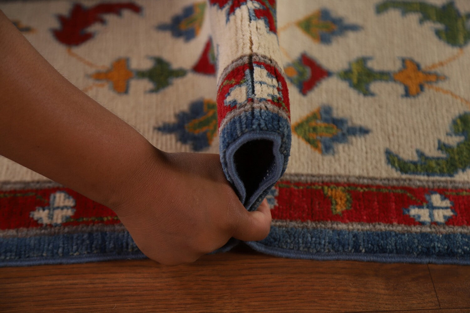 A Beautiful Genuine Pakistan Kazak rug is Hand Knotted by skillful weavers in Pakistan with 100% Wool Material. This rug is in New, First Quality condition. dimensions are 11' 10'' X 9' 0'' in foot and 361 X 274 in centimeter. the primary color is Beige & Ivories.
