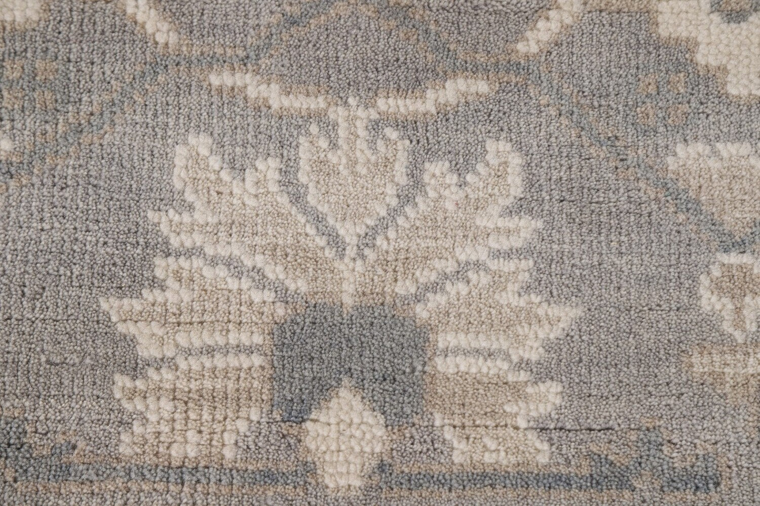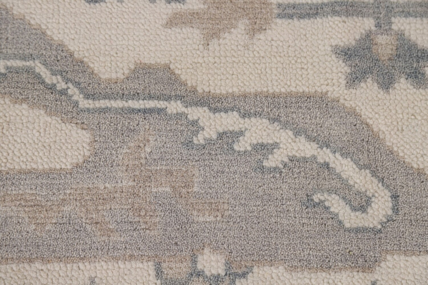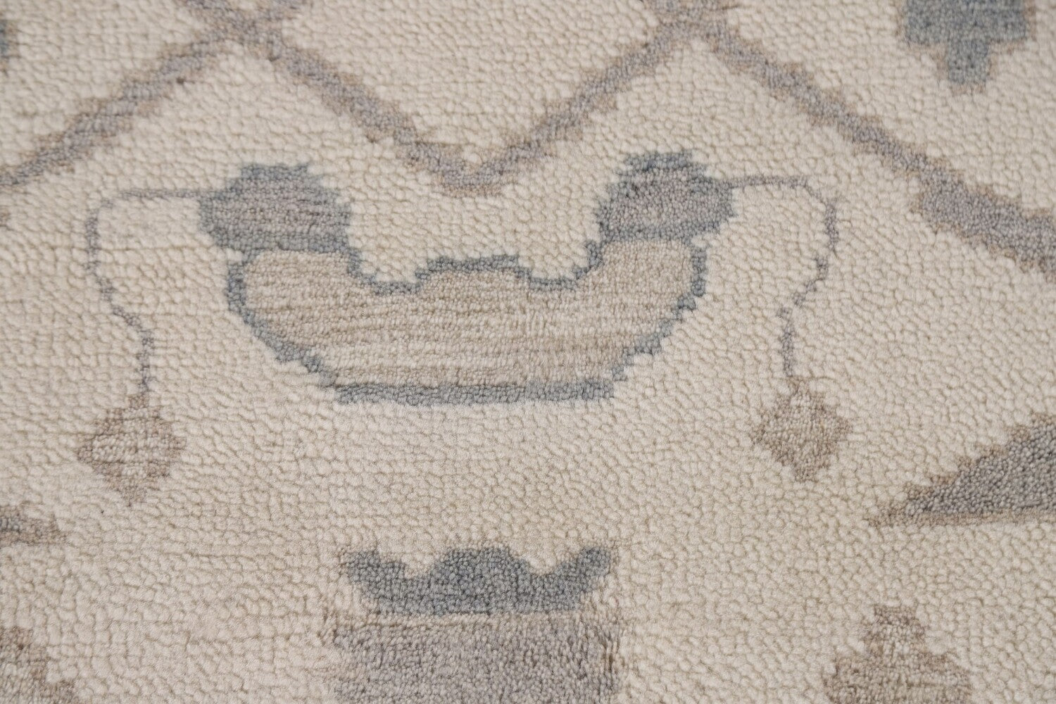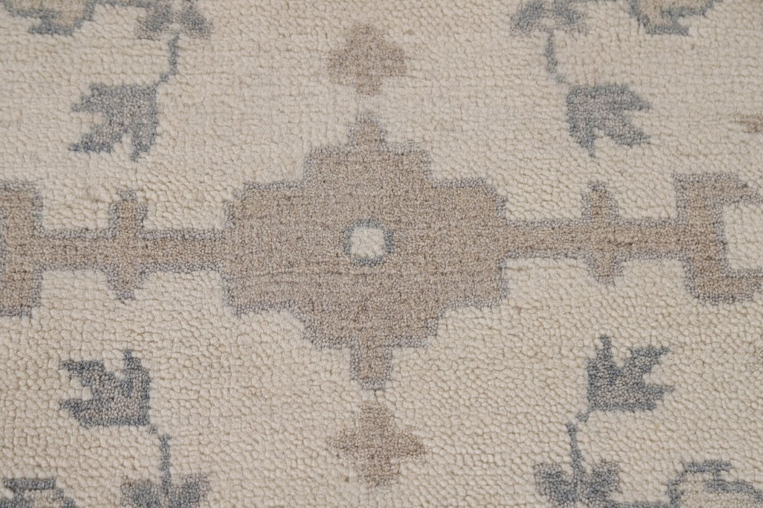A Beautiful Genuine India Oushak rug is Hand Knotted by skillful weavers in India with 100% Wool Material. This rug is in New, First Quality condition. dimensions are 9' 10'' X 8' 2'' in foot and 300 X 249 in centimeter. the primary color is Beige & Ivories.