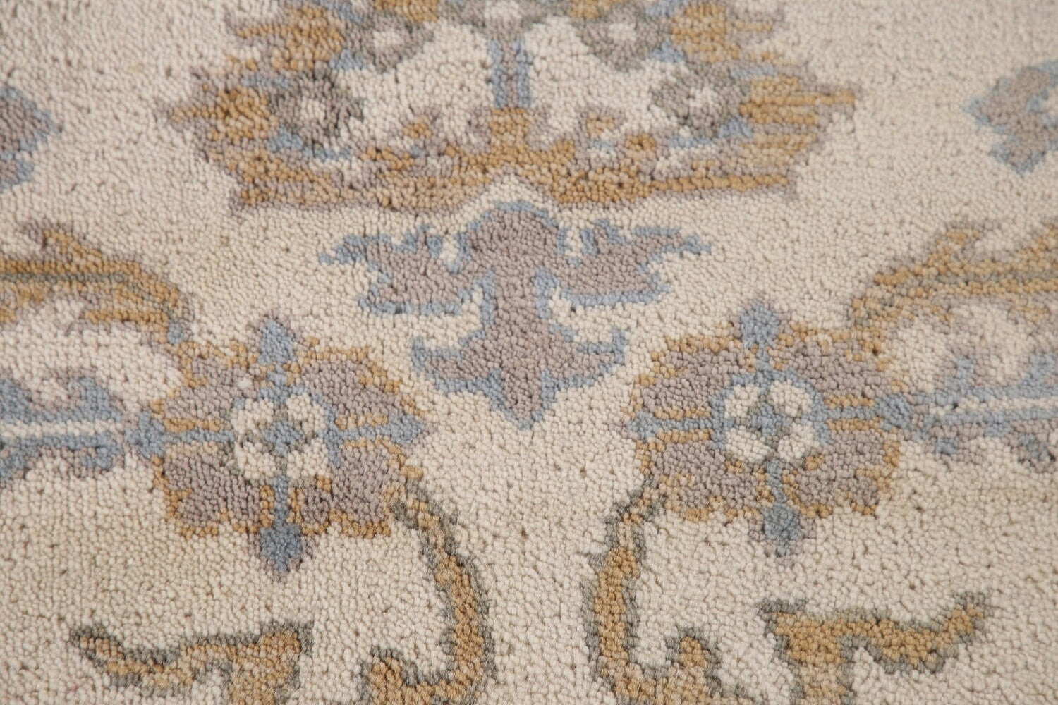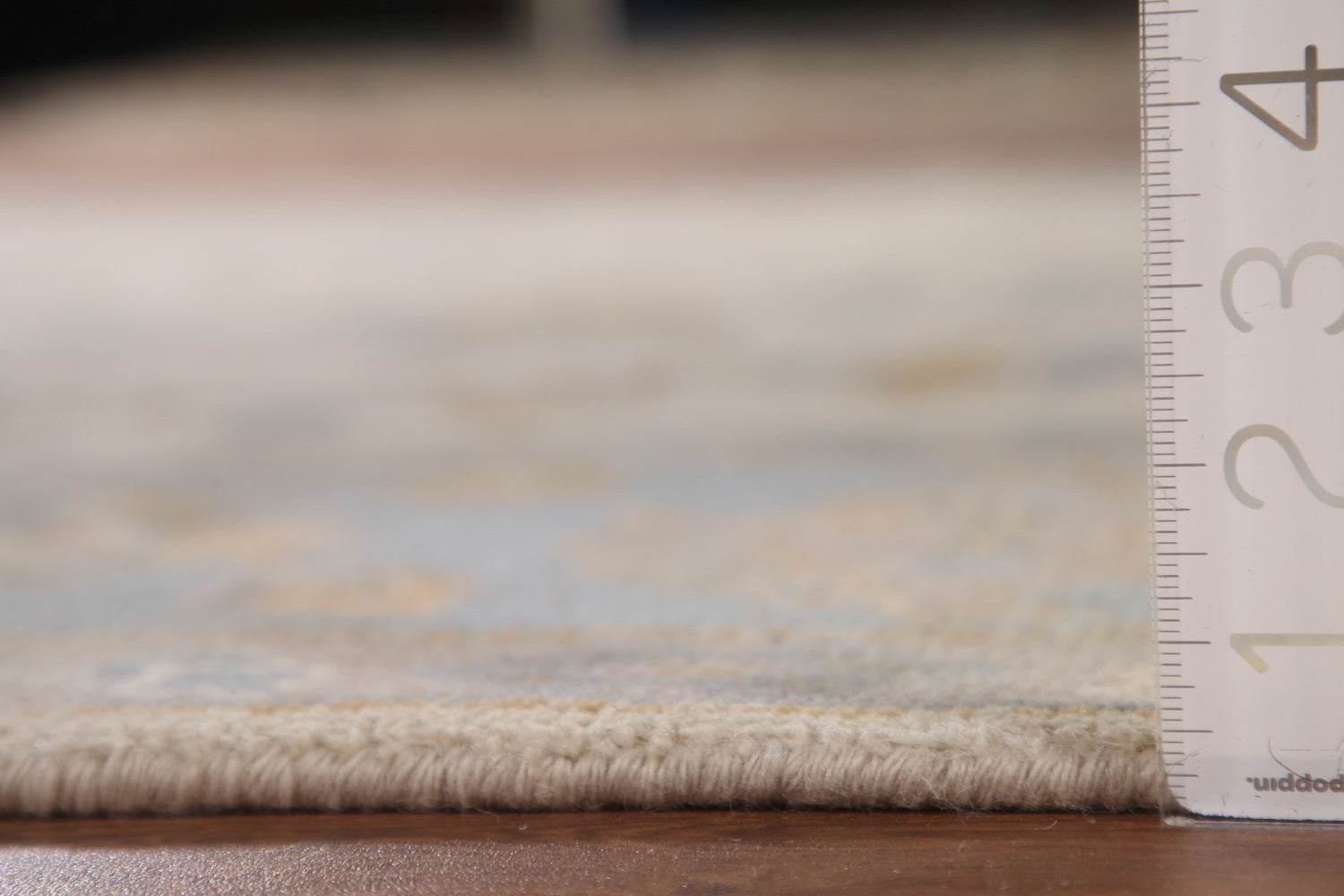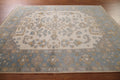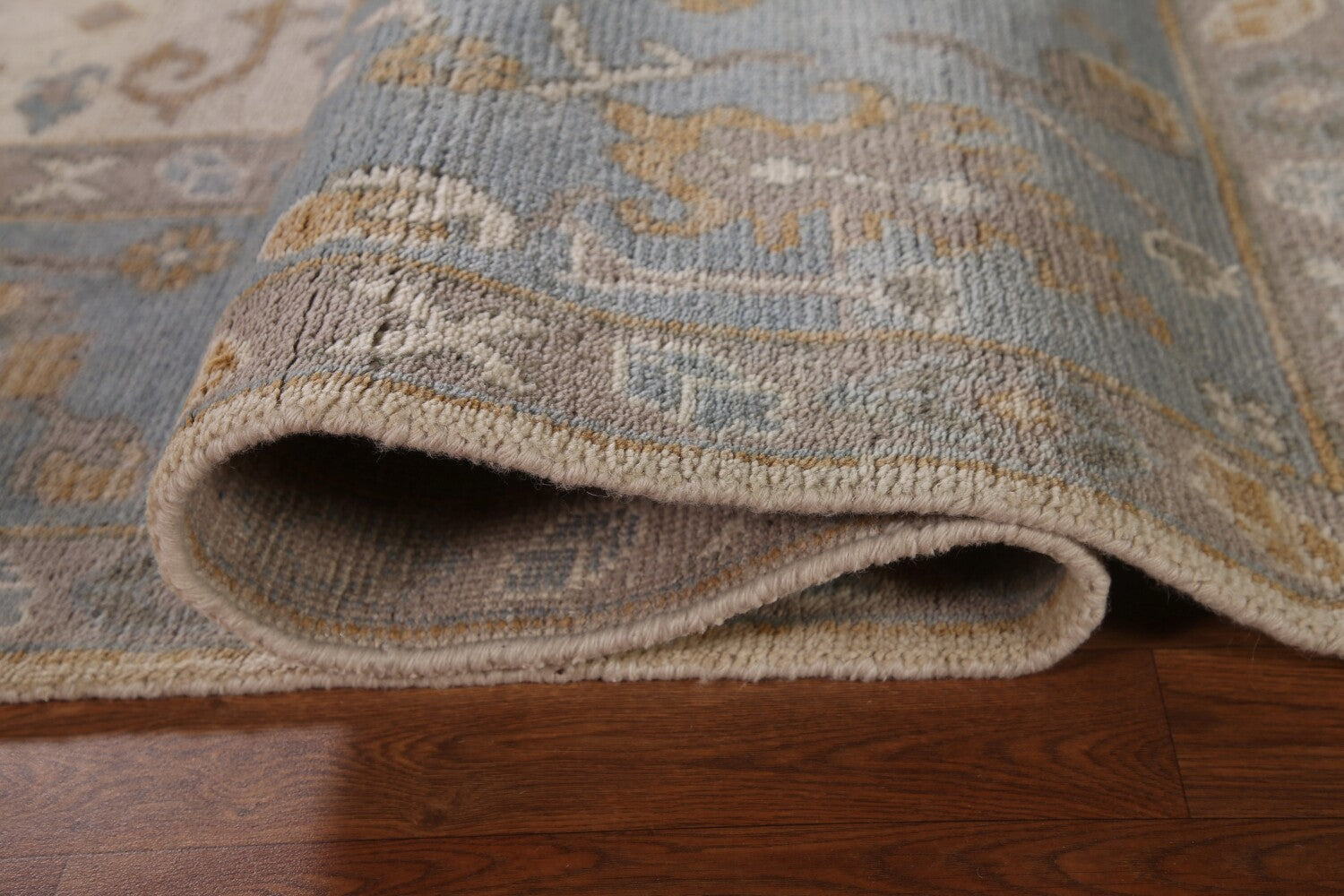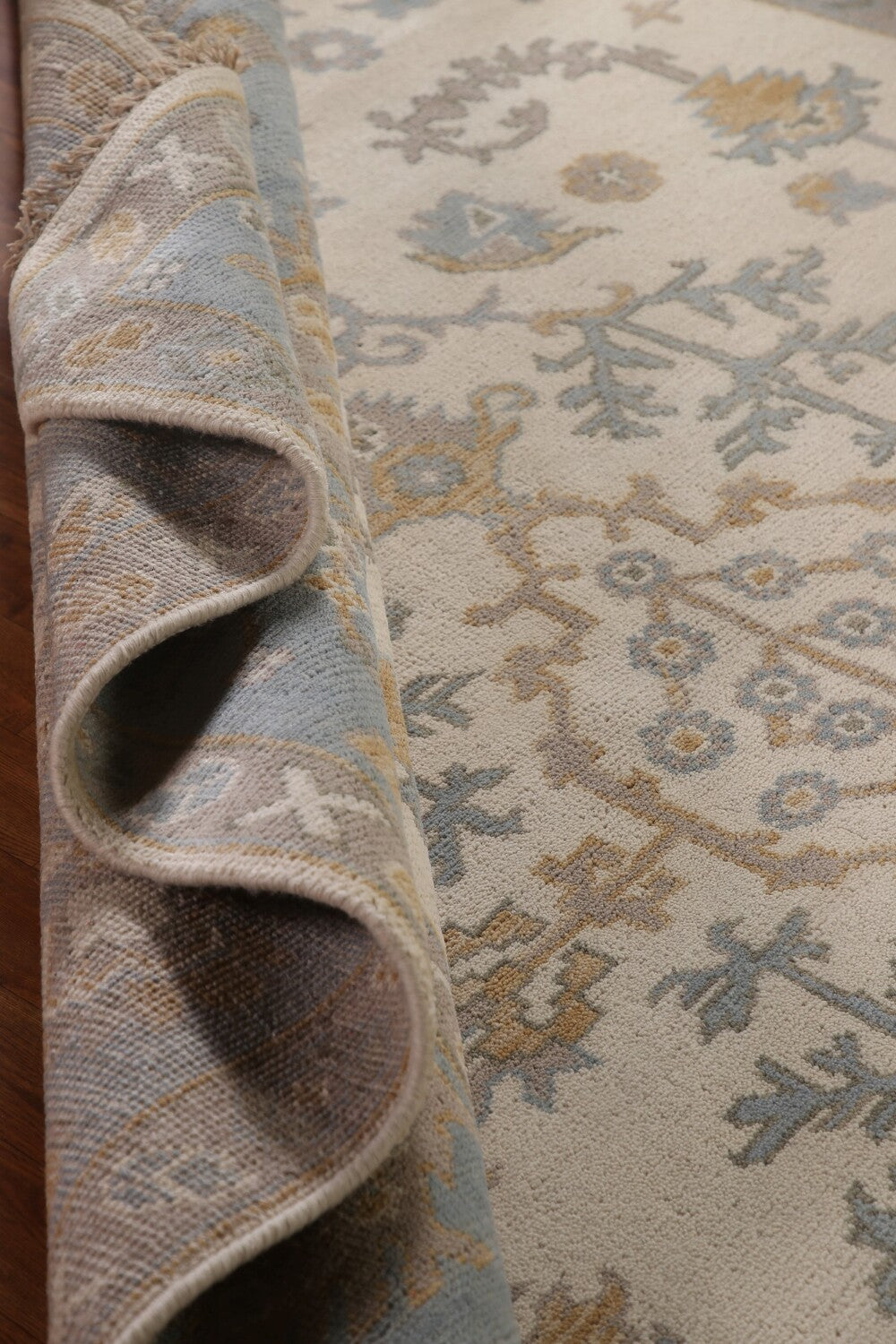 A Beautiful Genuine India Oushak rug is Hand Knotted by skillful weavers in India with 100% Wool Material. This rug is in New, First Quality condition. dimensions are 9' 9'' X 7' 11'' in foot and 297 X 241 in centimeter. the primary color is Beige & Ivories.