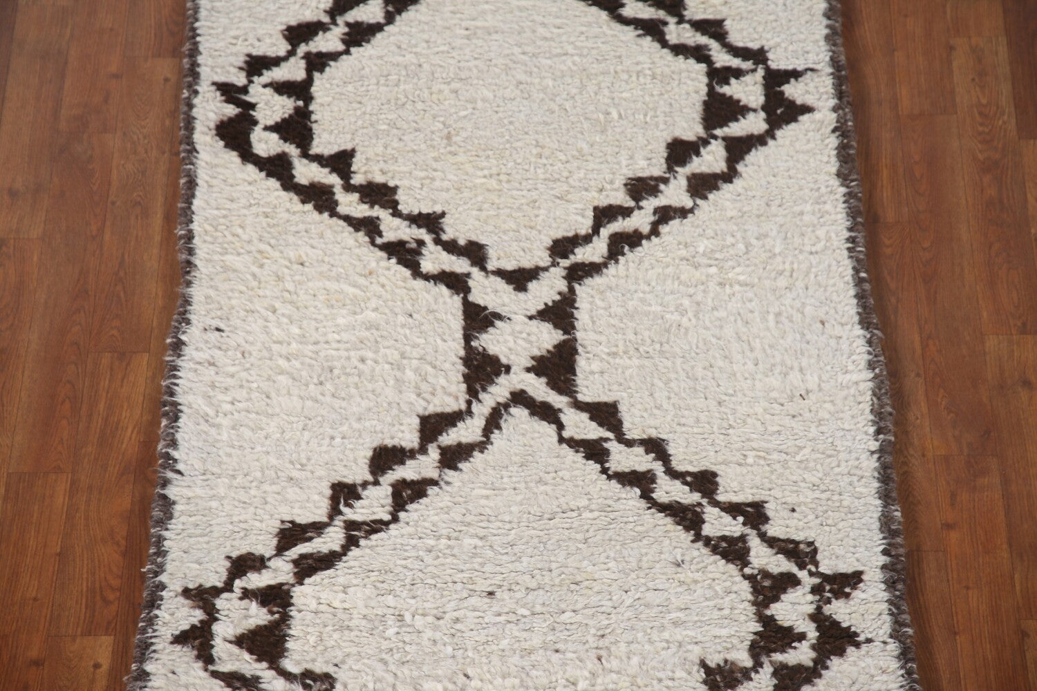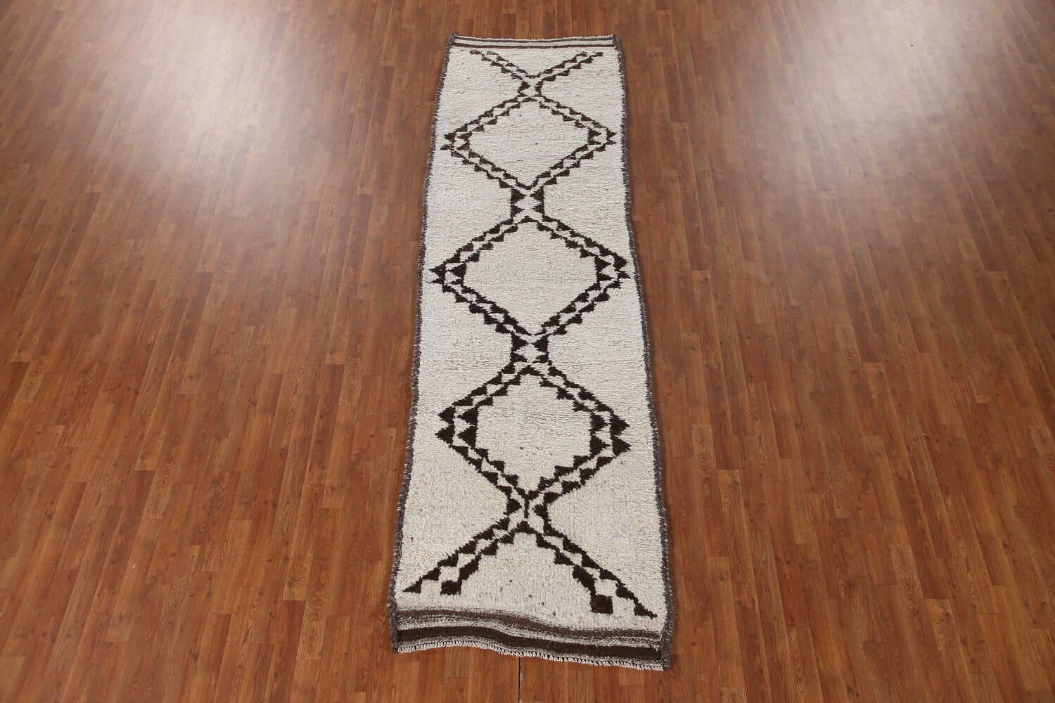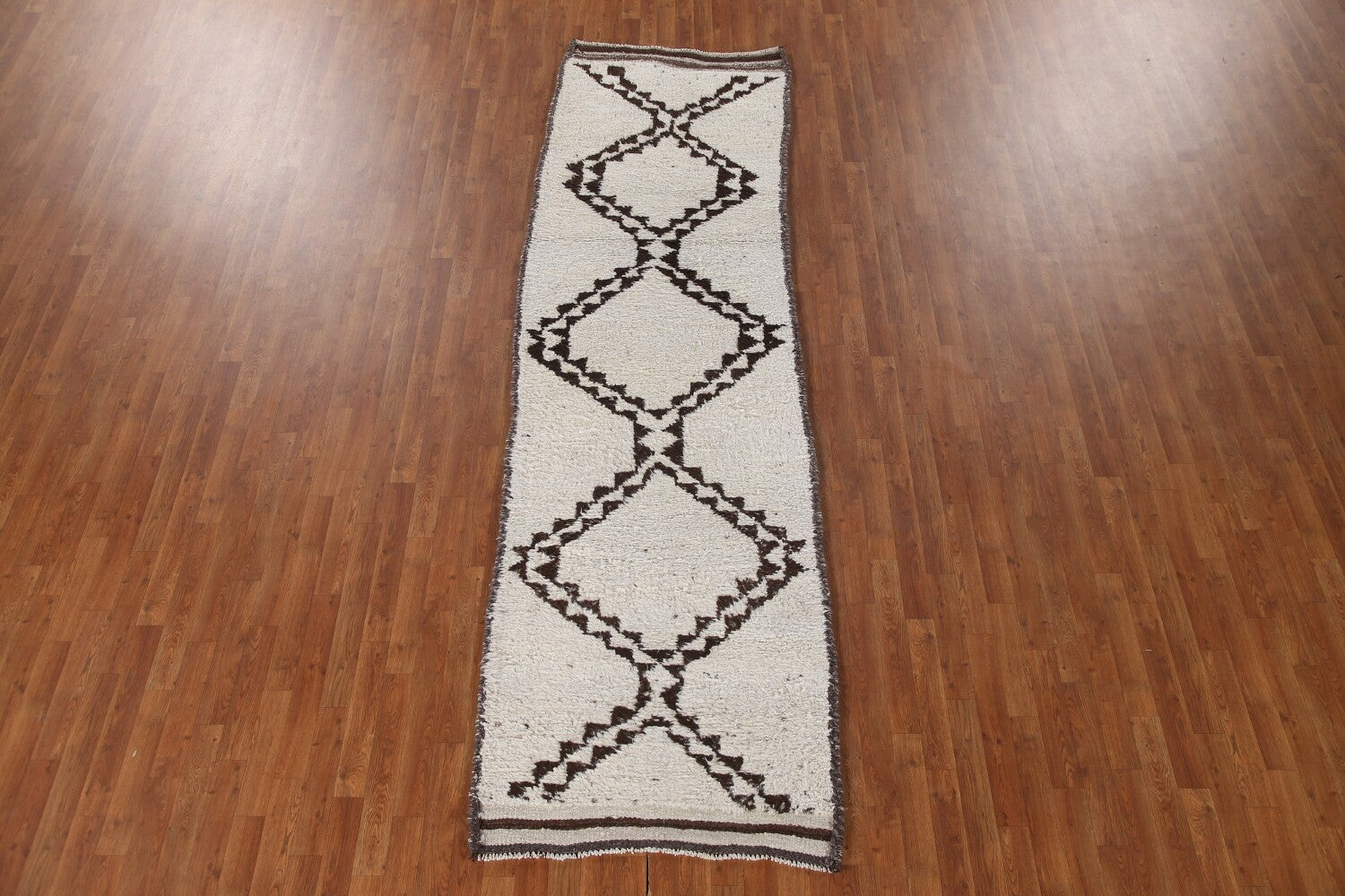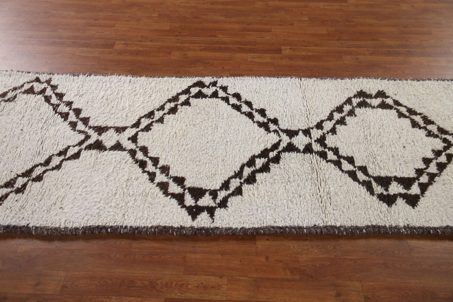 Ivory Wool Anatolian Turkish Runner Rug 3x11