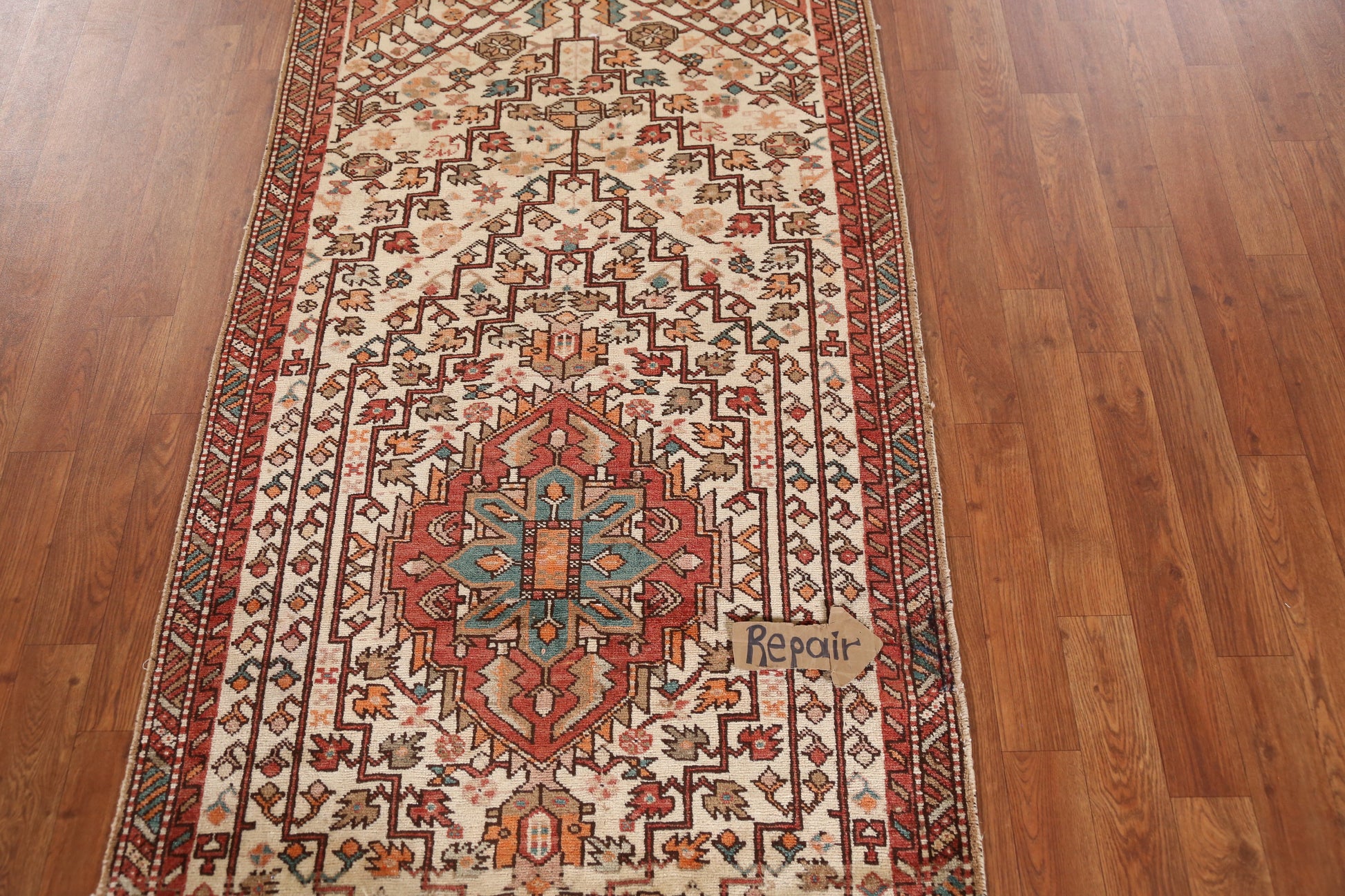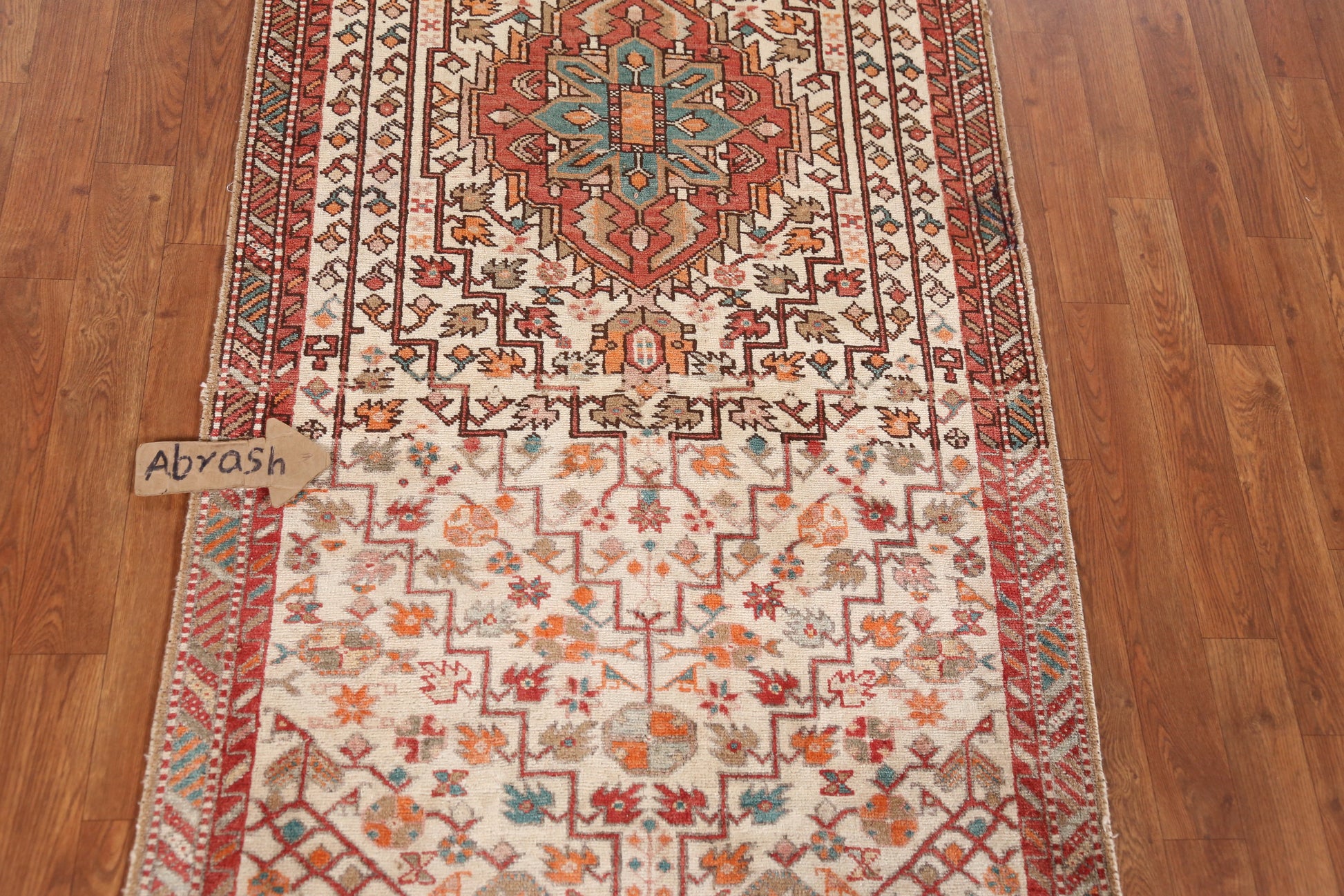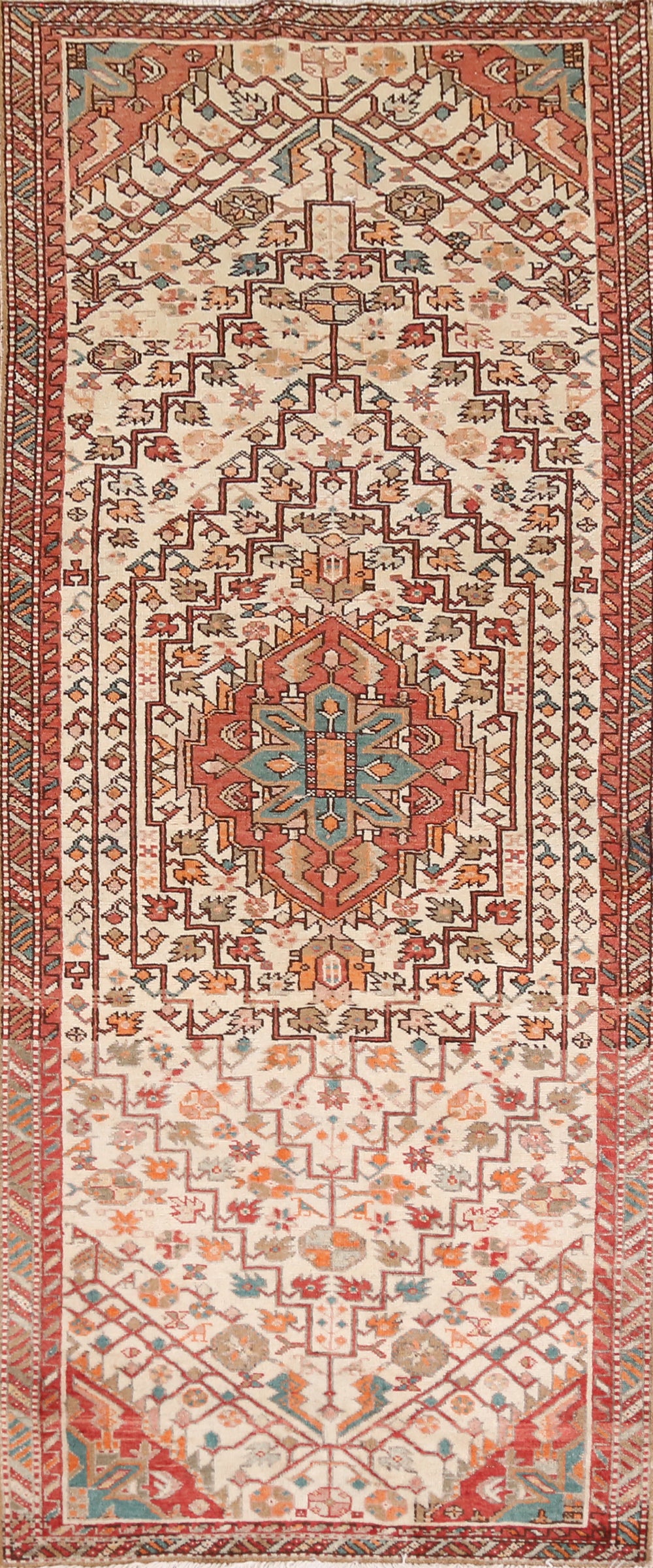 Ivory Wool Geometric Hamedan Persian Runner Rug 3x8