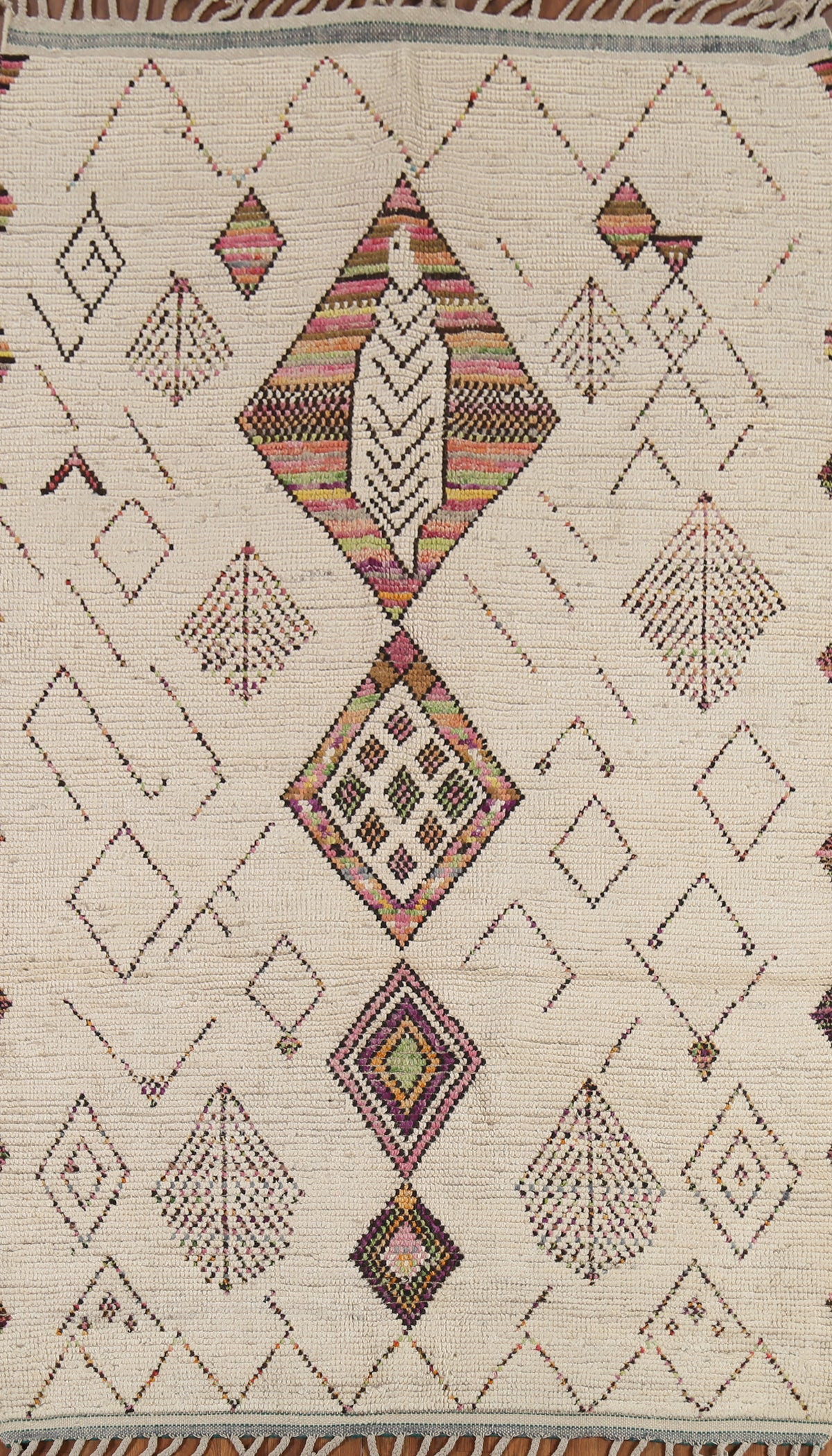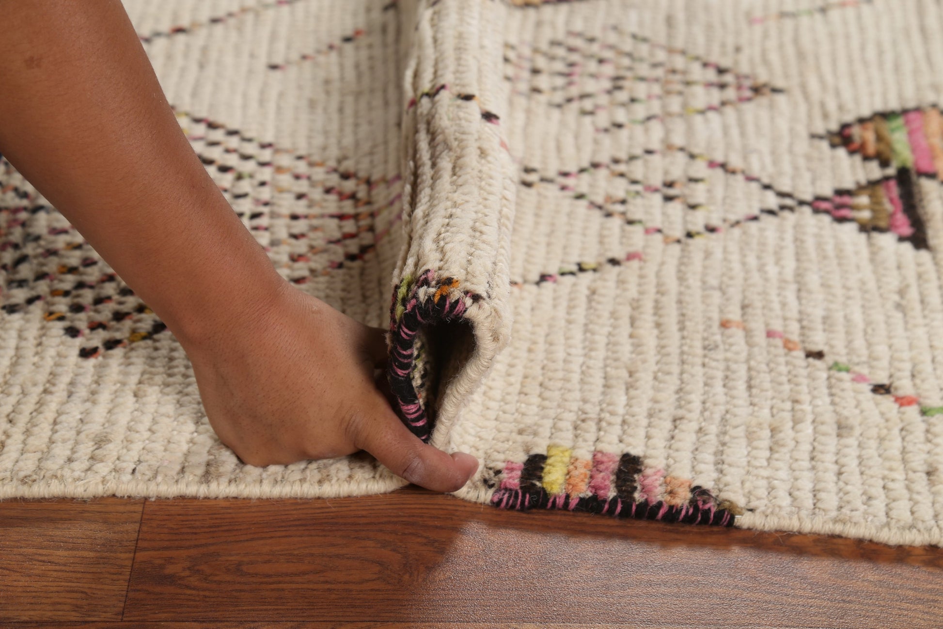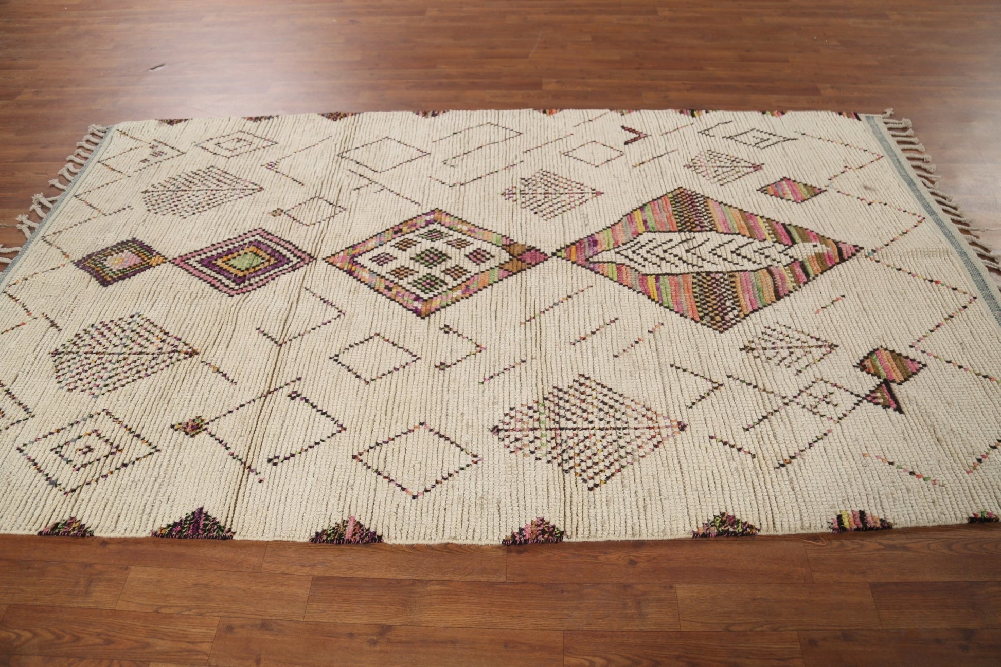 Ivory Wool Handmade Moroccan Oriental Area Rug 5x9