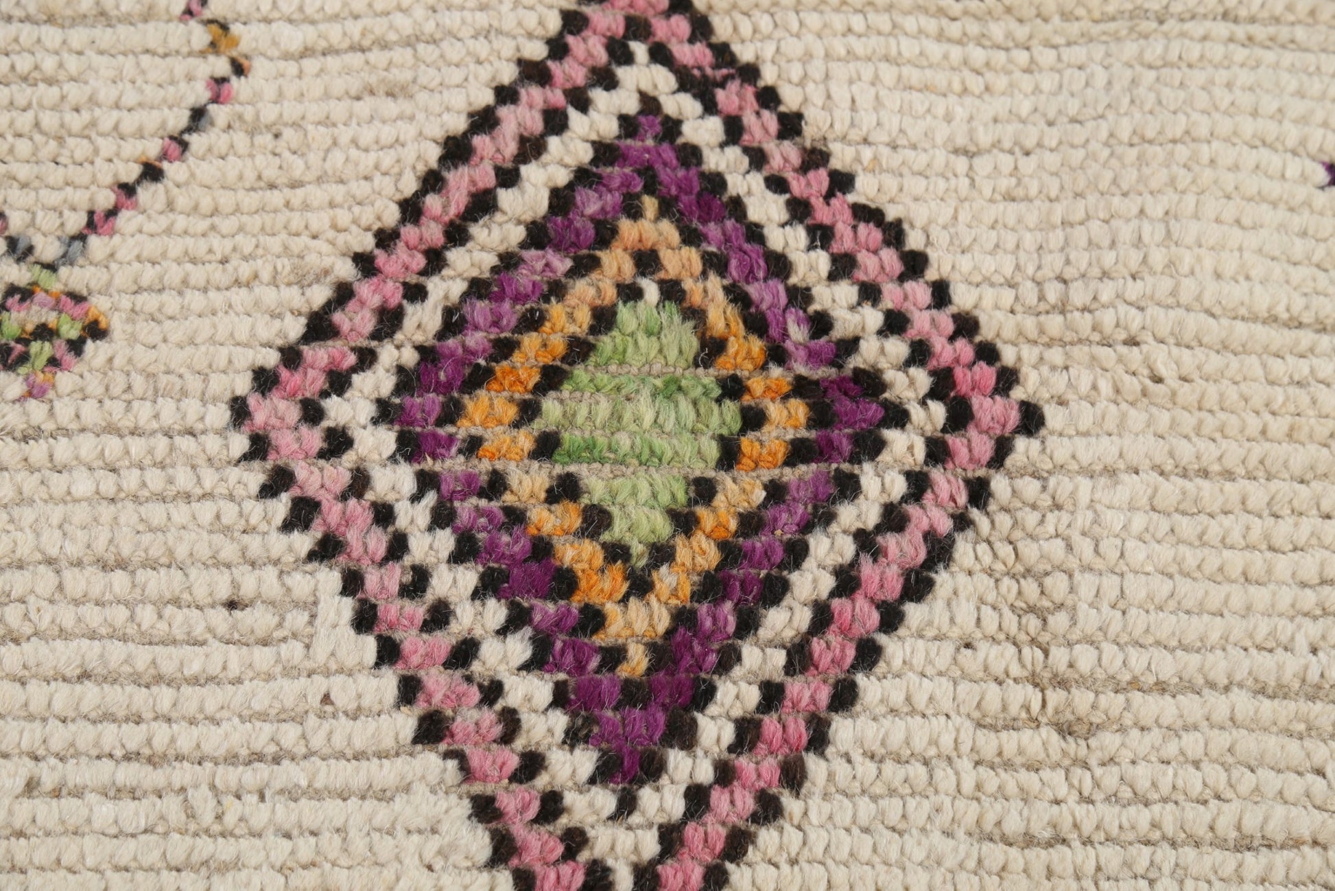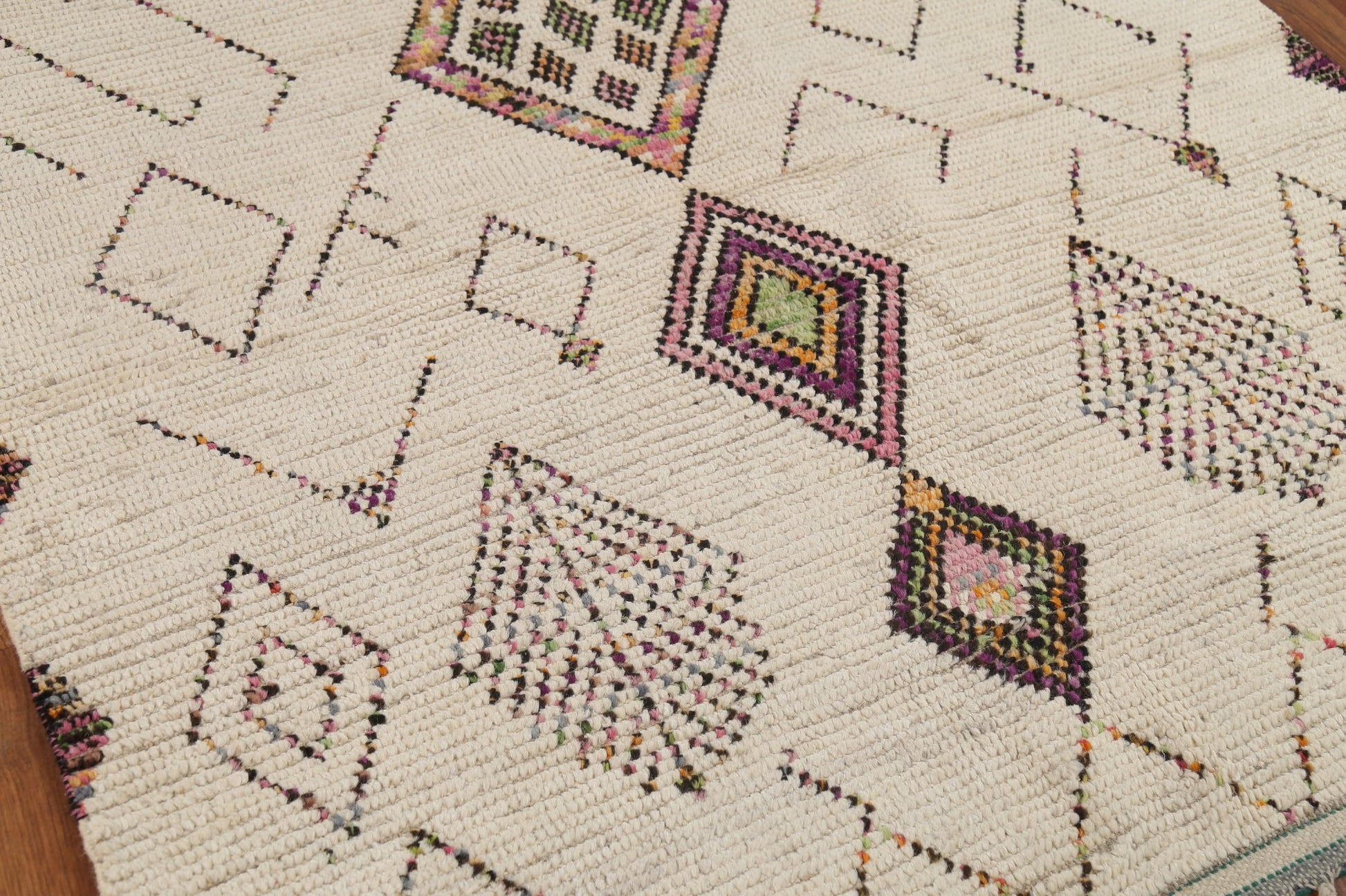 A Beautiful Genuine Pakistan Moroccan rug is Hand Knotted by skillful weavers in Pakistan with 100% Wool Material. This rug is in New, First Quality condition. dimensions are 8' 8'' X 5' 0'' in foot and 264 X 152 in centimeter. the primary color is Beige & Ivories.