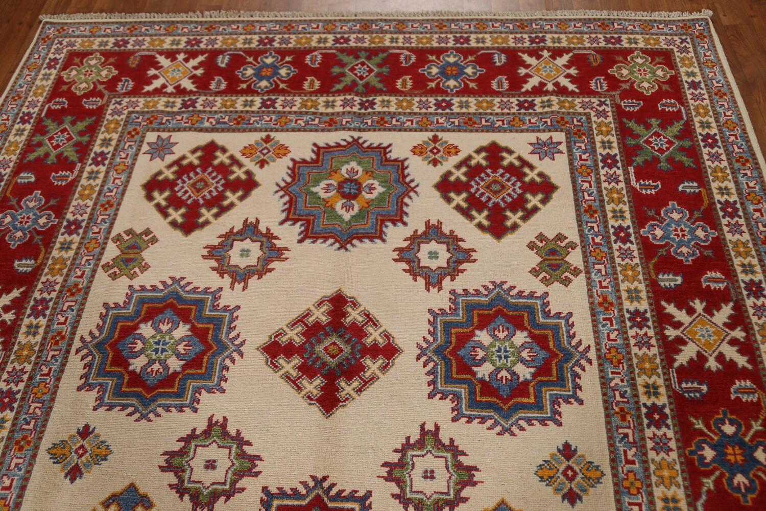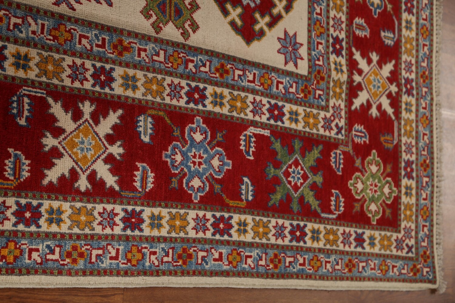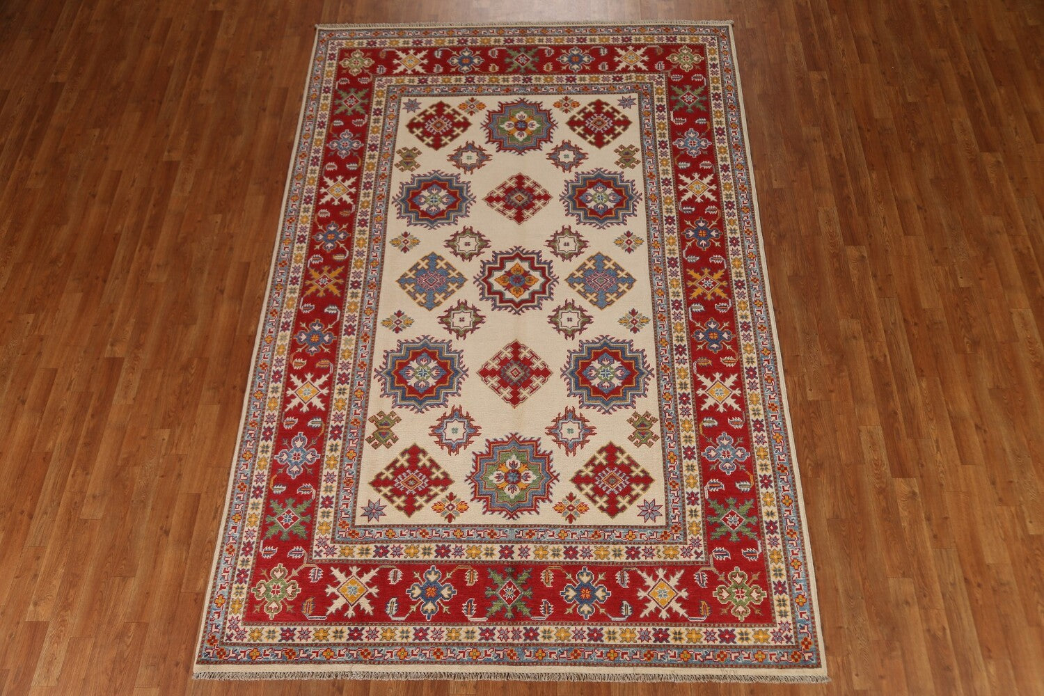 Ivory Wool Kazak Hand-Knotted Area Rug 7x10