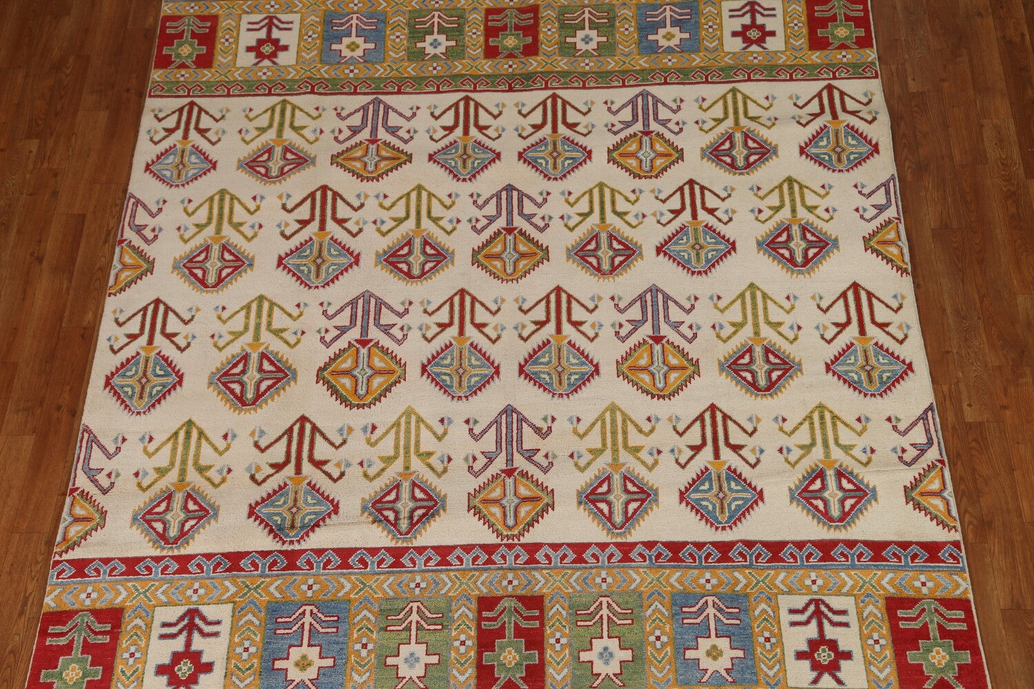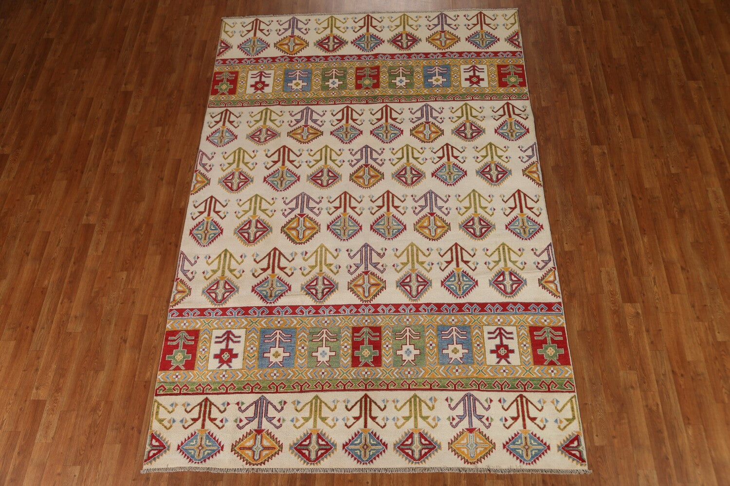 Ivory Wool Kazak Oriental Area Rug 7x10