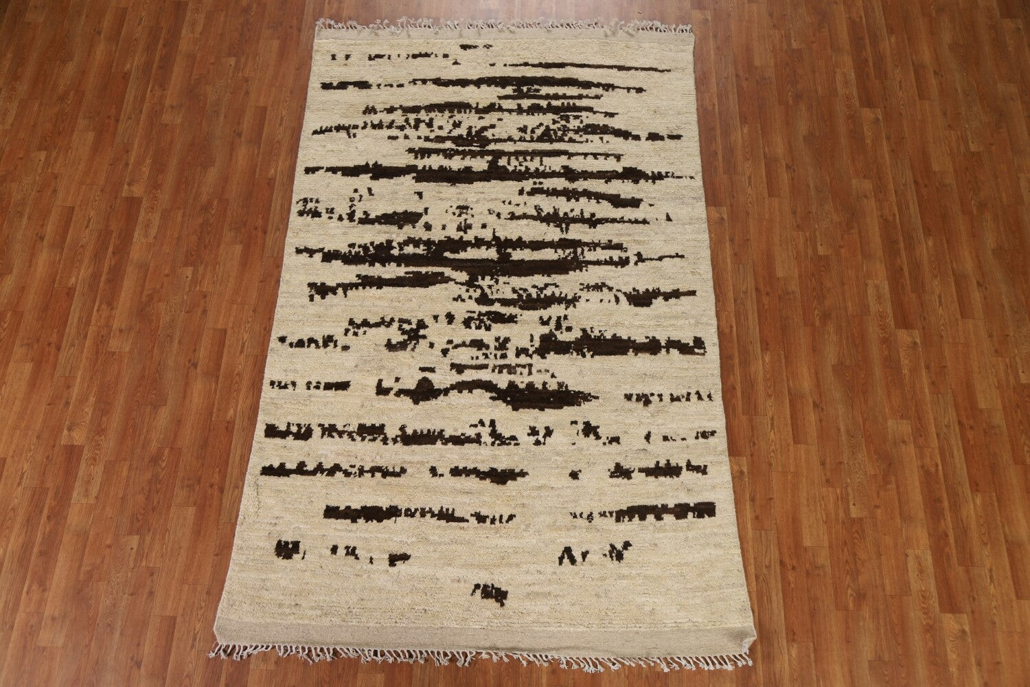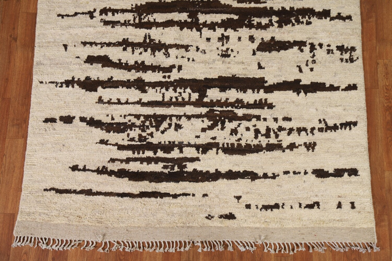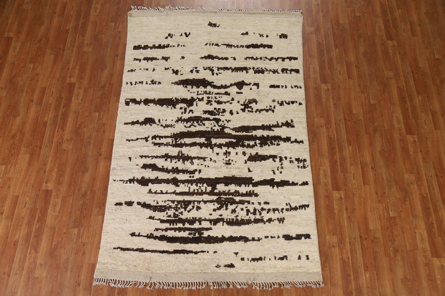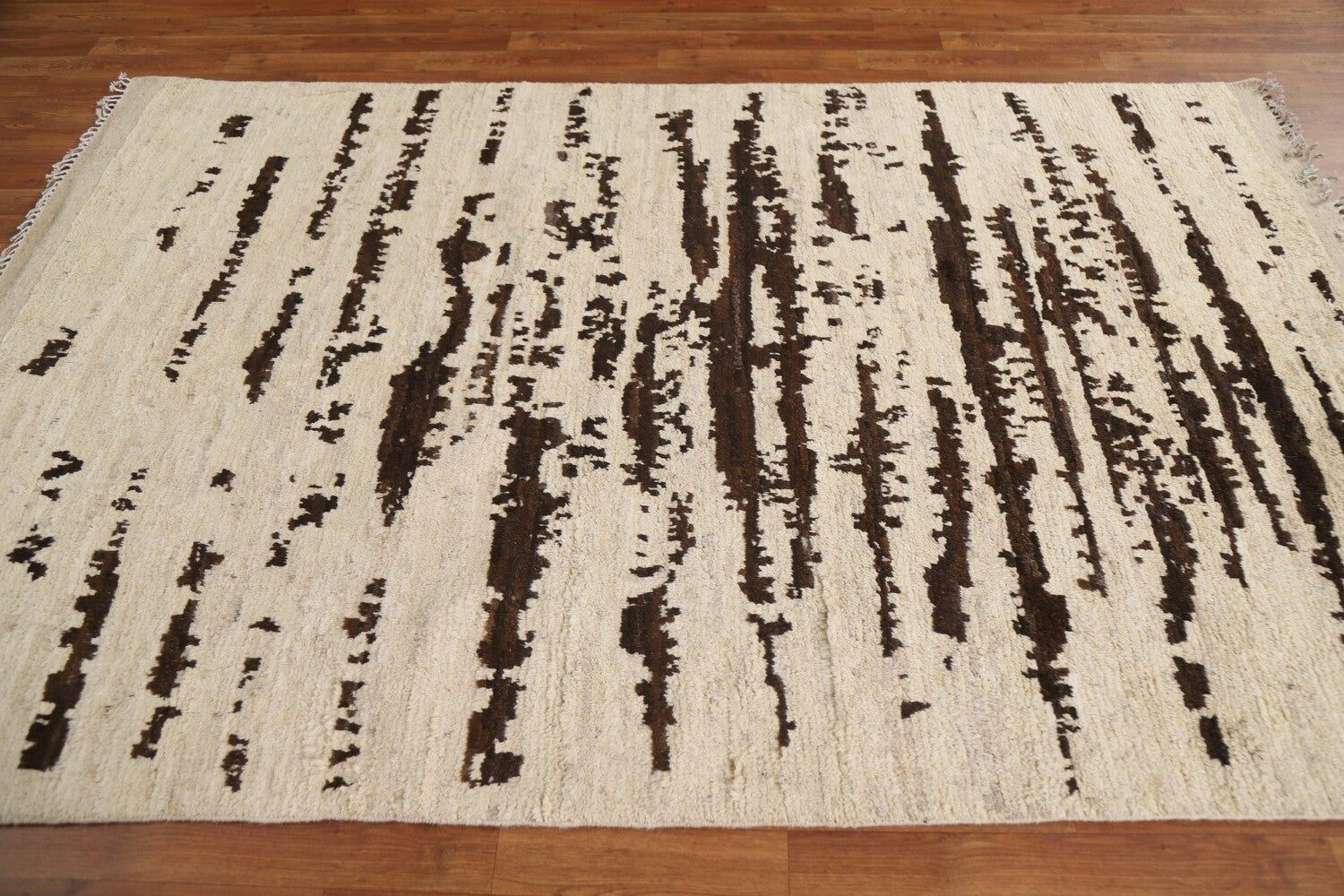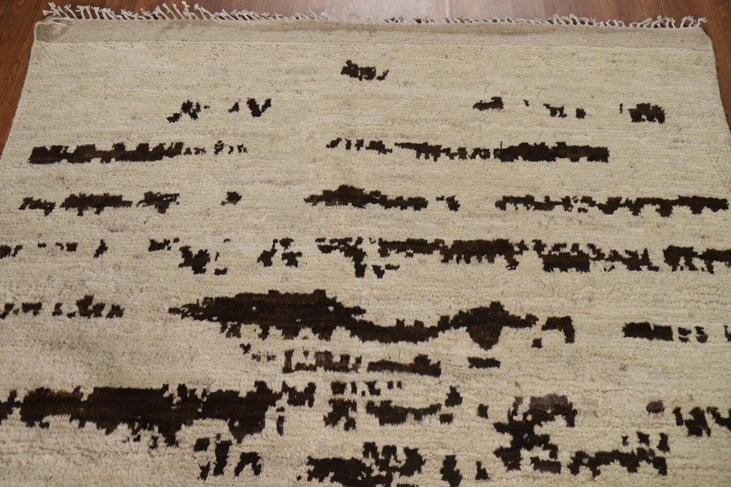 A Beautiful Genuine Pakistan Moroccan rug is Hand Knotted by skillful weavers in Pakistan with 100% Wool Material. This rug is in condition. dimensions are 8' 2'' X 5' 3'' in foot and 249 X 160 in centimeter. the primary color is Beige & Ivories.