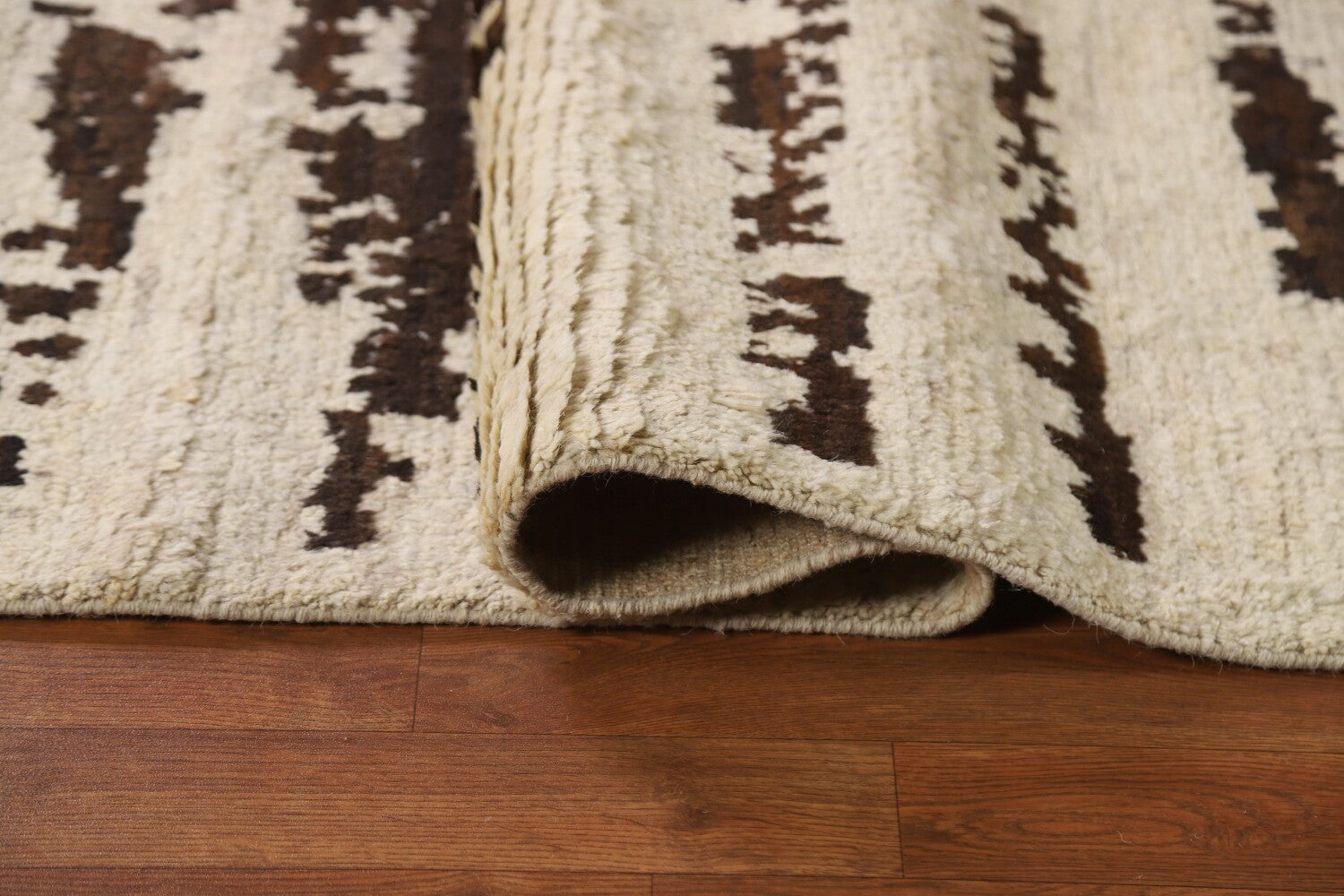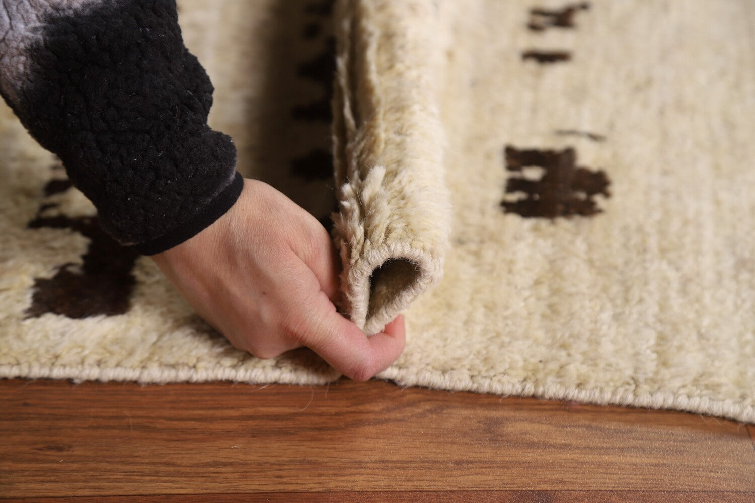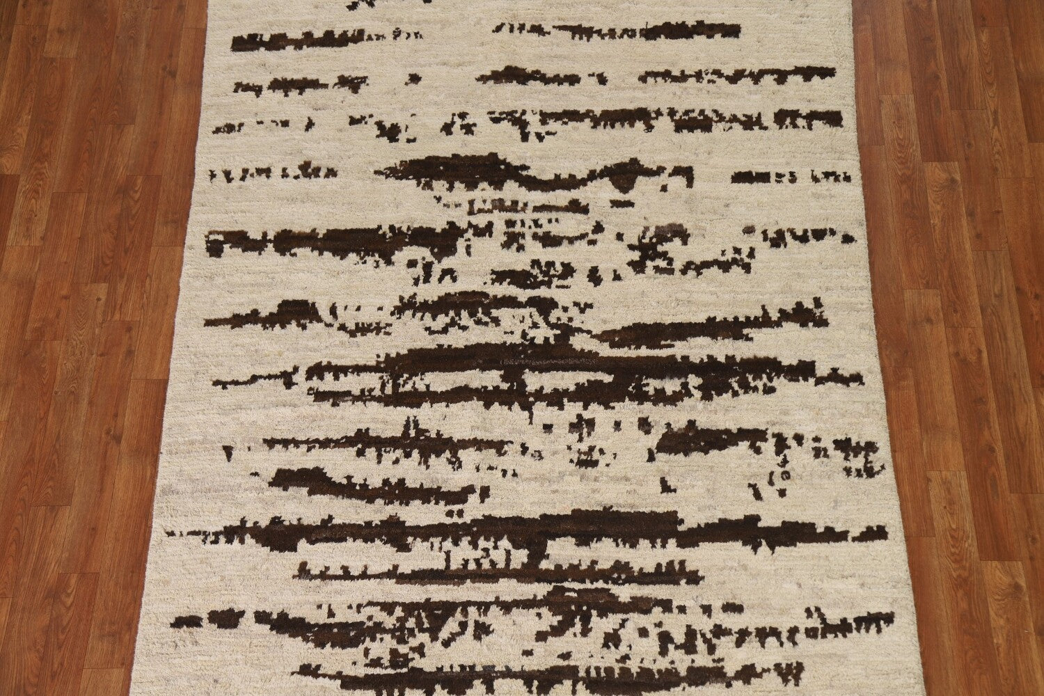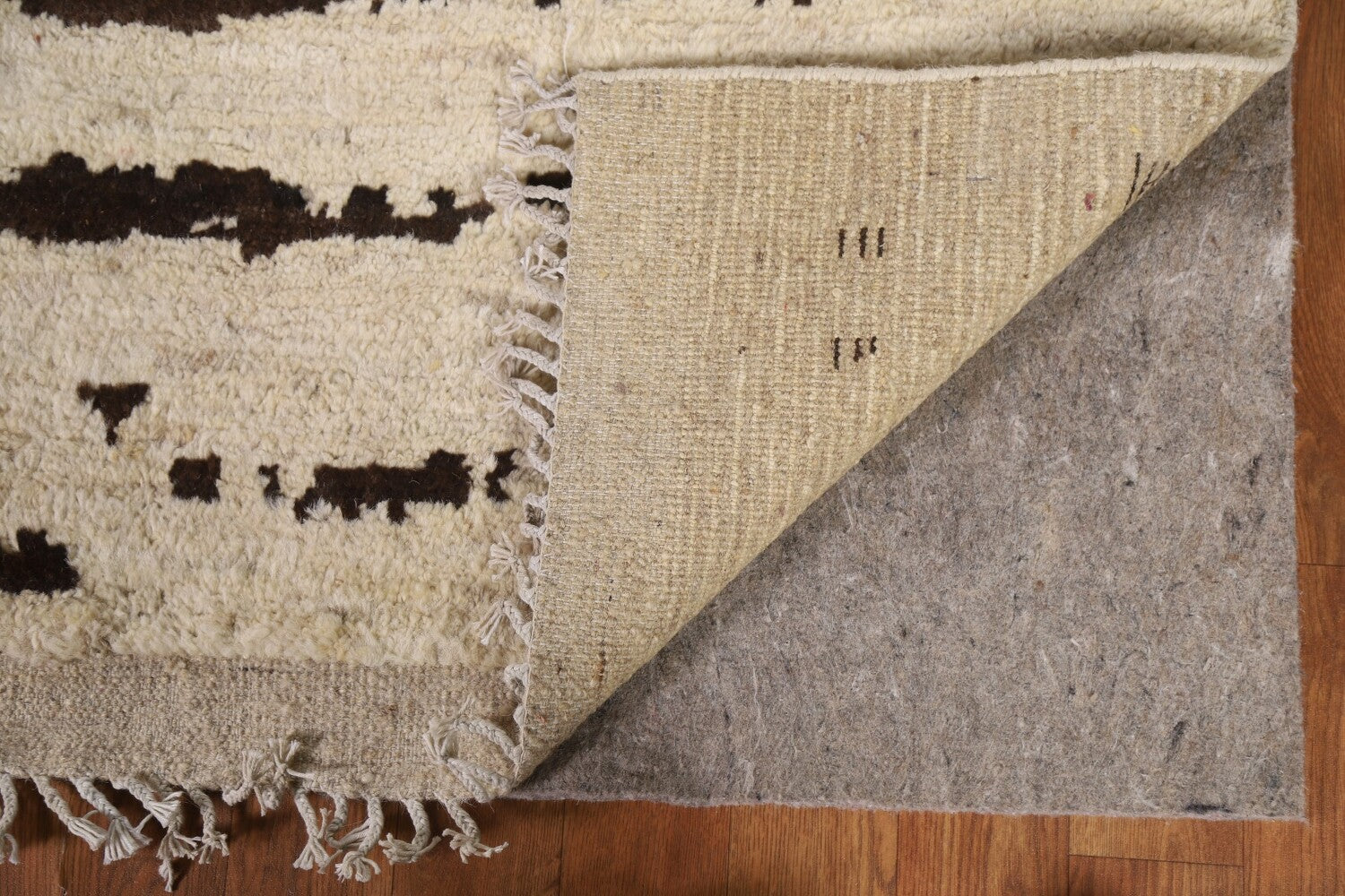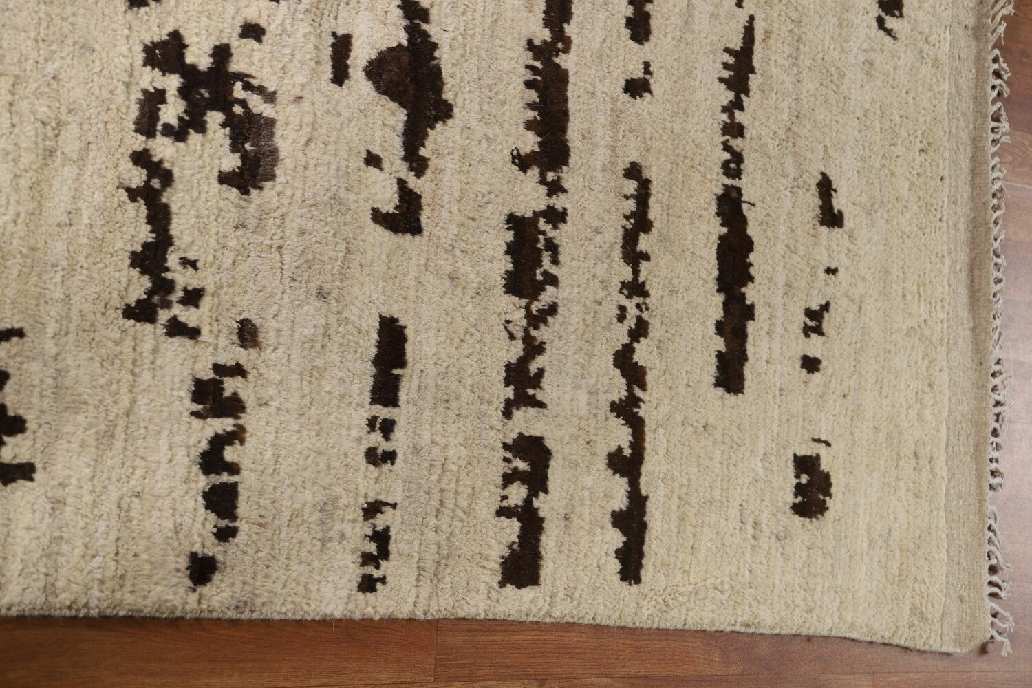 A Beautiful Genuine Pakistan Moroccan rug is Hand Knotted by skillful weavers in Pakistan with 100% Wool Material. This rug is in condition. dimensions are 8' 2'' X 5' 3'' in foot and 249 X 160 in centimeter. the primary color is Beige & Ivories.