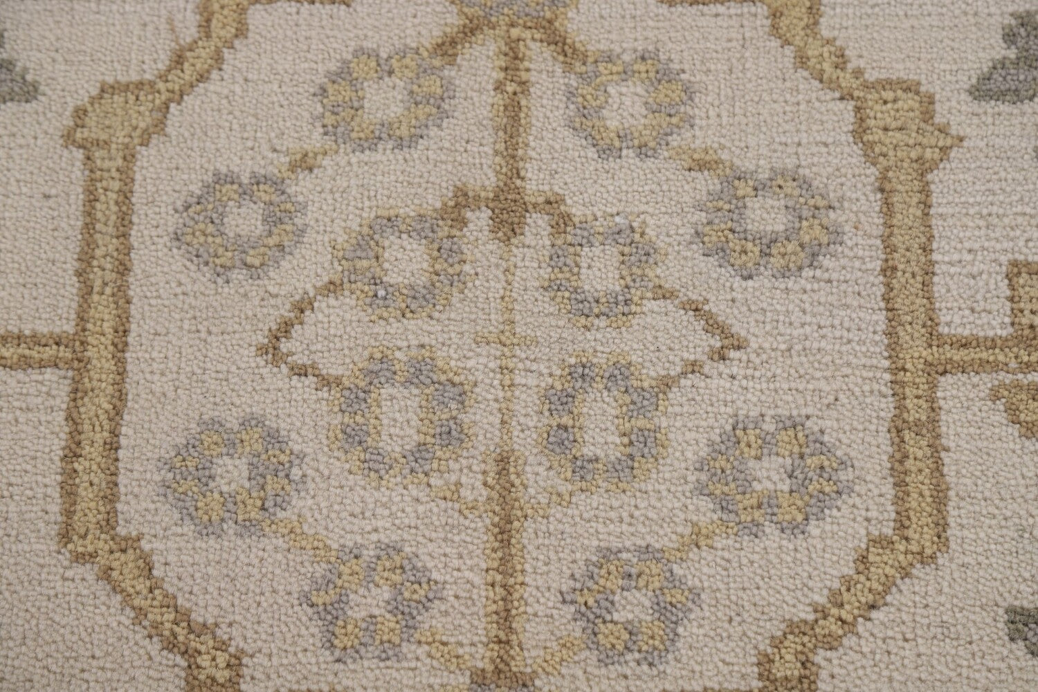 A Beautiful Genuine India Oushak rug is Hand Knotted by skillful weavers in India with 100% Wool Material. This rug is in New, First Quality condition. dimensions are 9' 10'' X 8' 2'' in foot and 300 X 249 in centimeter. the primary color is Beige & Ivories.