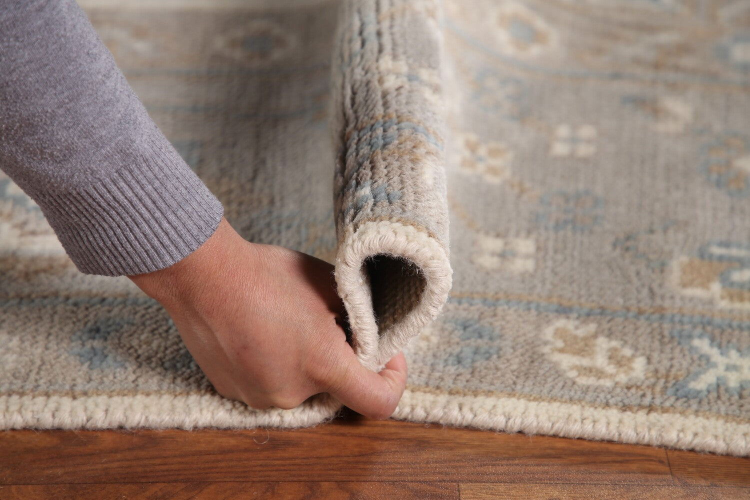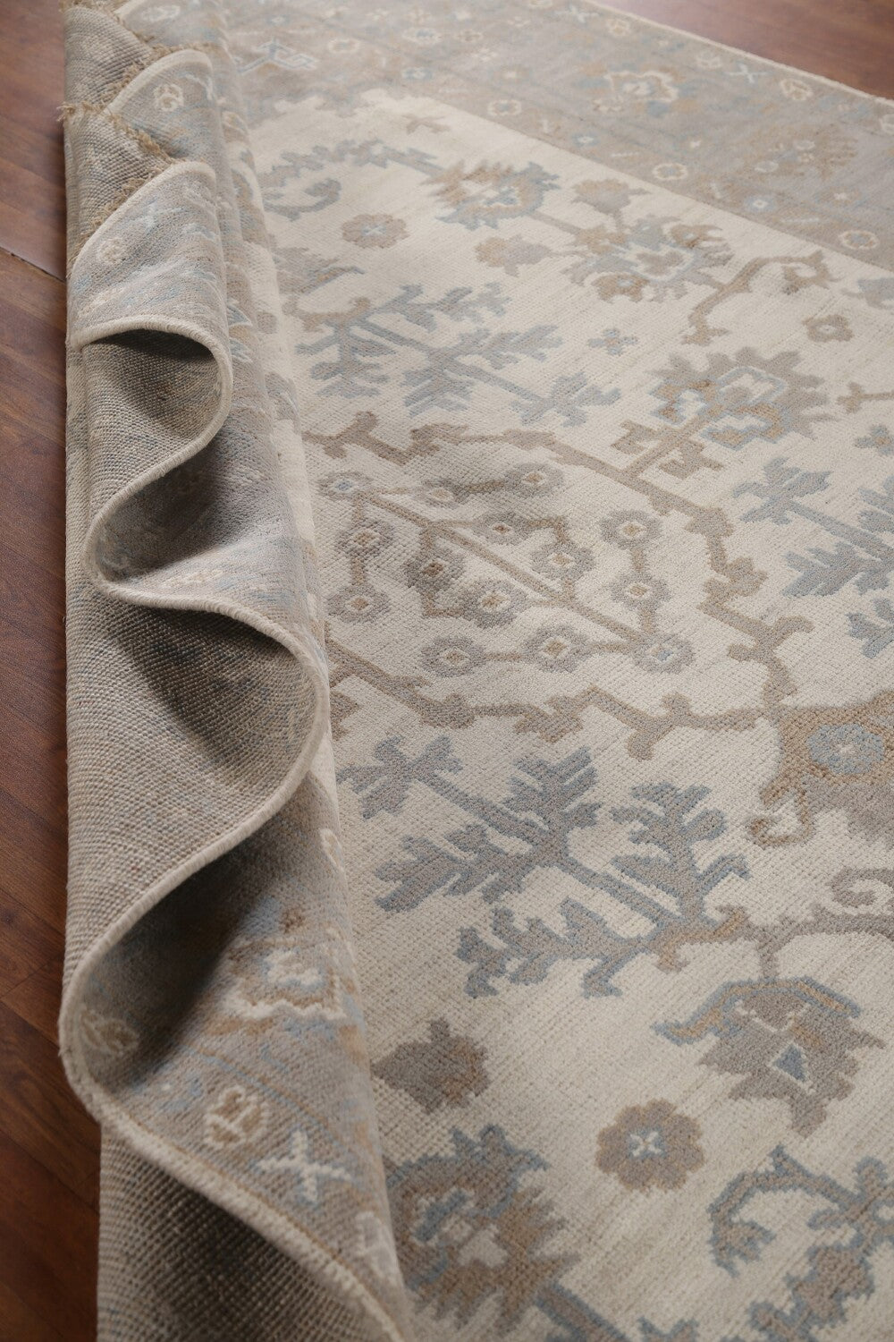 A Beautiful Genuine India Oushak rug is Hand Knotted by skillful weavers in India with 100% Wool Material. This rug is in New, First Quality condition. dimensions are 10' 1'' X 7' 11'' in foot and 307 X 241 in centimeter. the primary color is Beige & Ivories.
