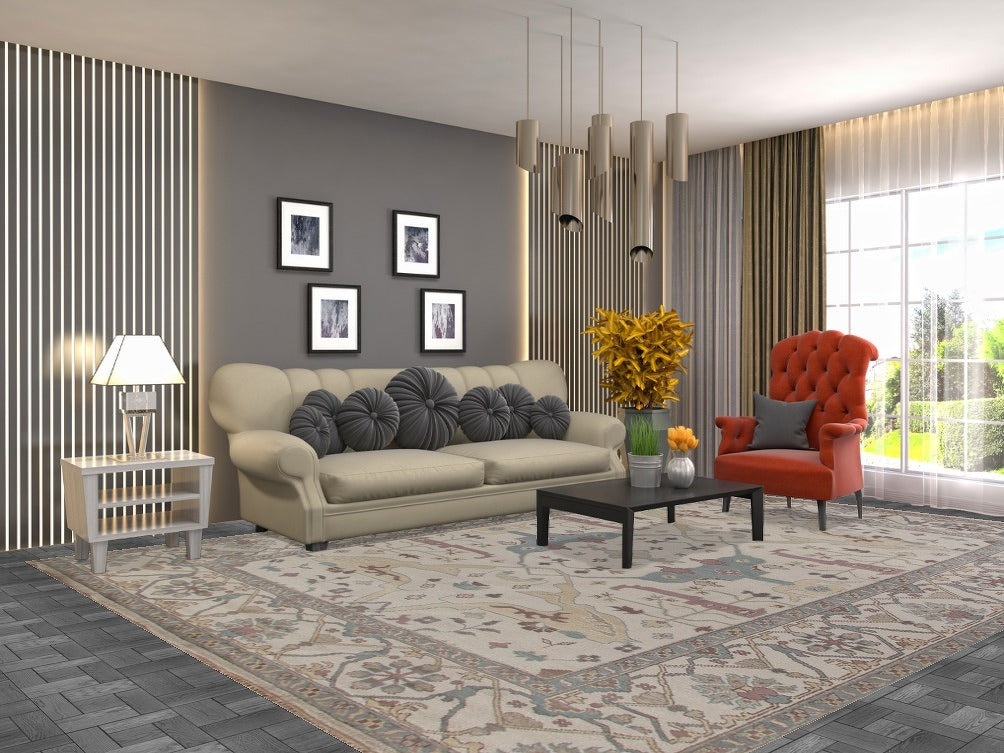 Ivory Wool Oushak Oriental Area Rug 9x12