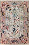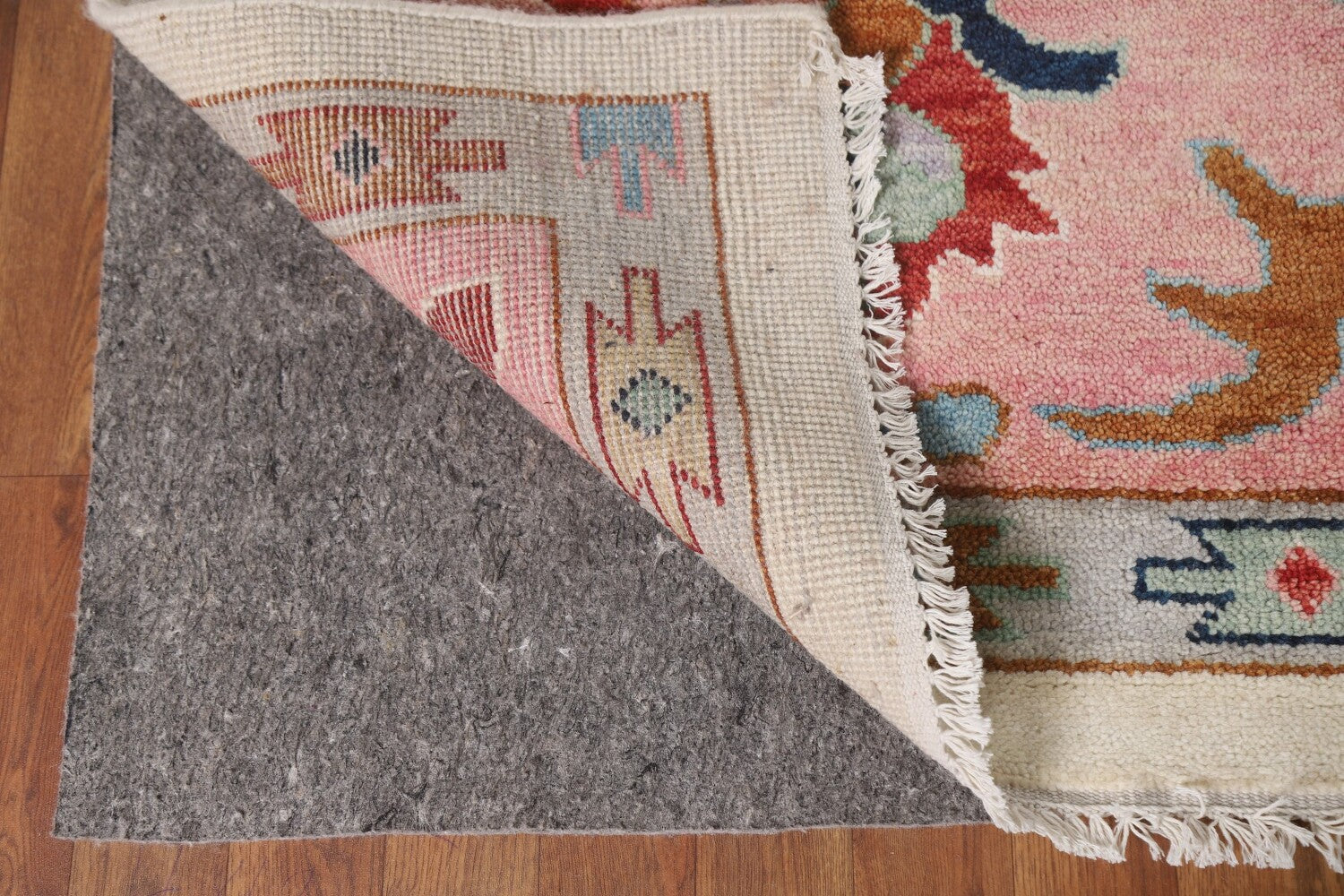 A Beautiful Genuine India Oushak rug is Hand Knotted by skillful weavers in India with 100% Wool Material. This rug is in New, First Quality condition. dimensions are 14' 7'' X 10' 3'' in foot and 445 X 312 in centimeter. the primary color is Beige & Ivories.