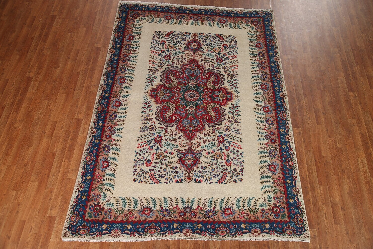 Ivory Wool Tabriz Persian Area Rug 7x10