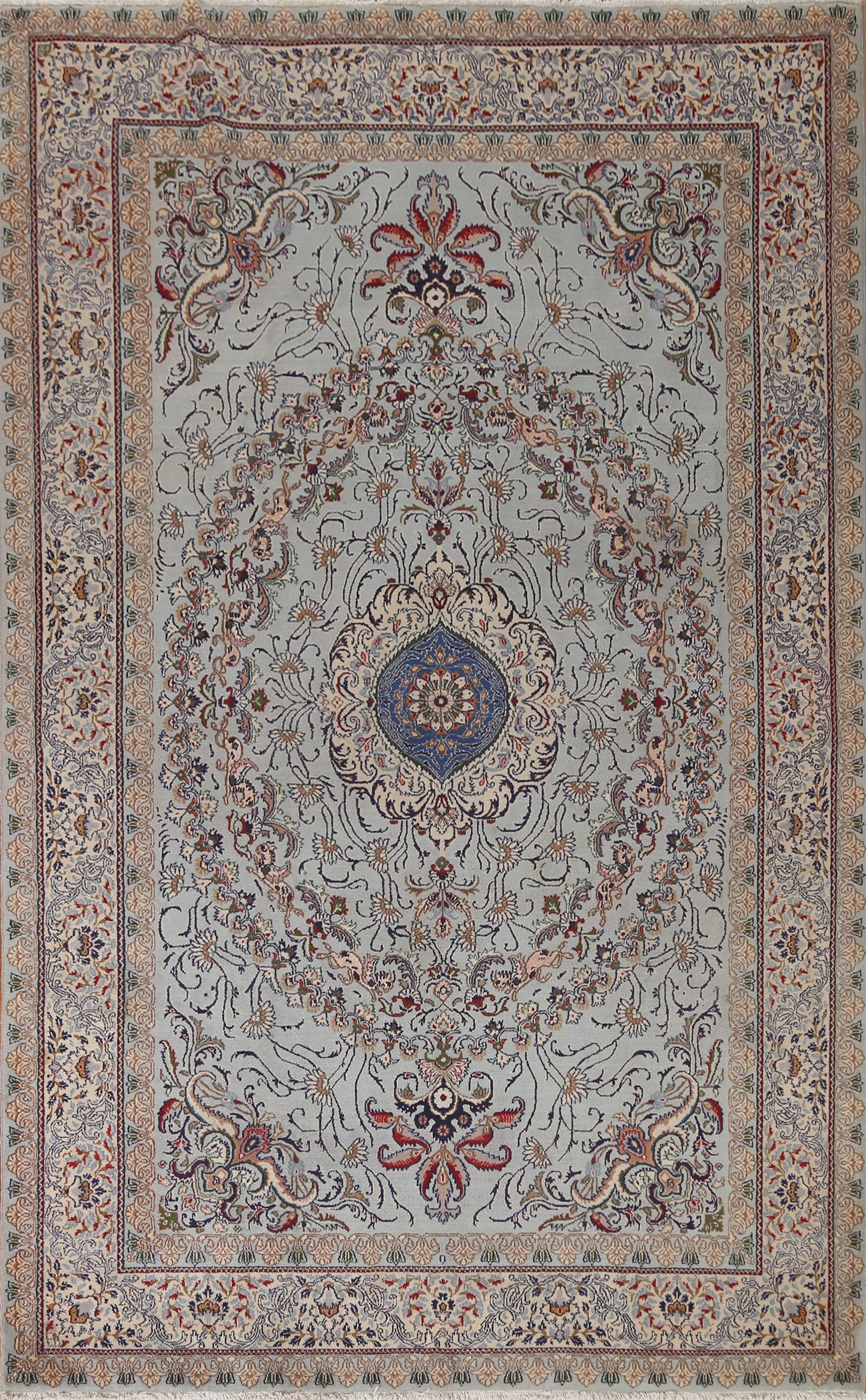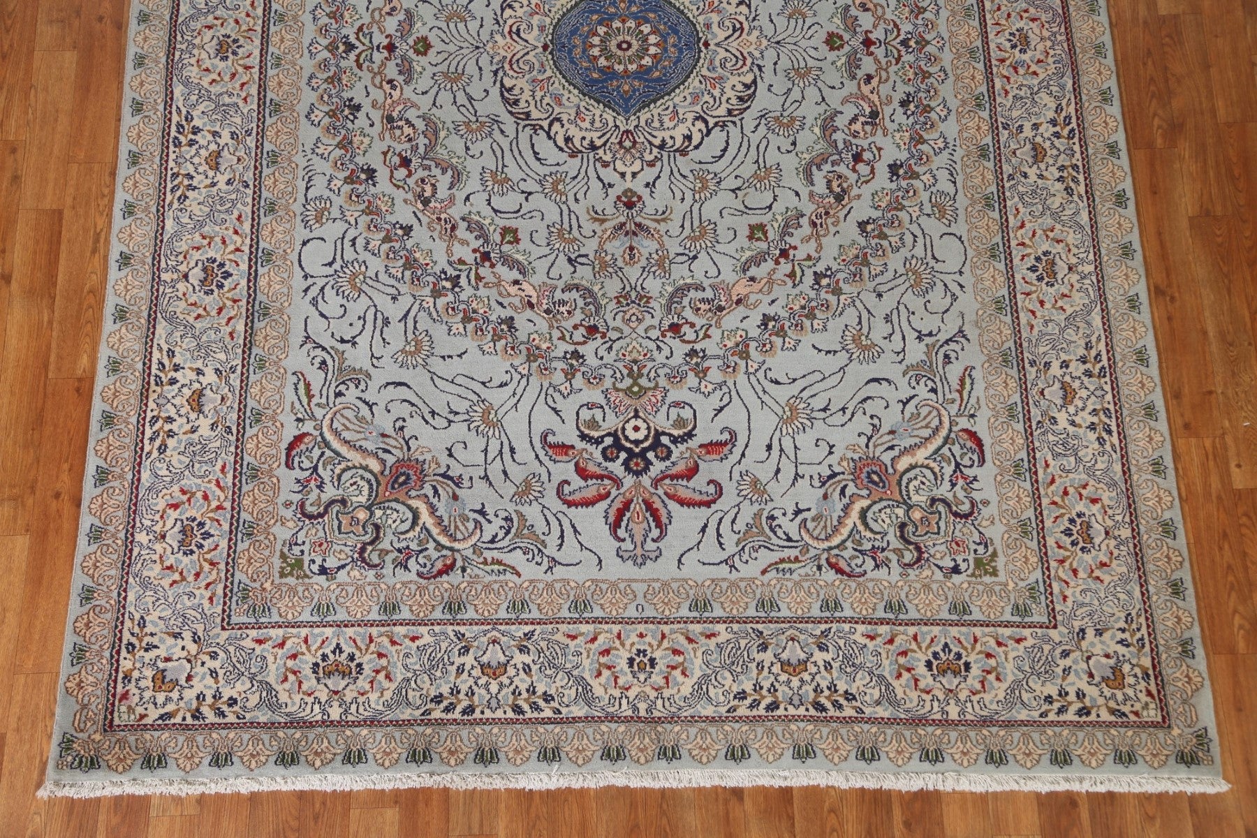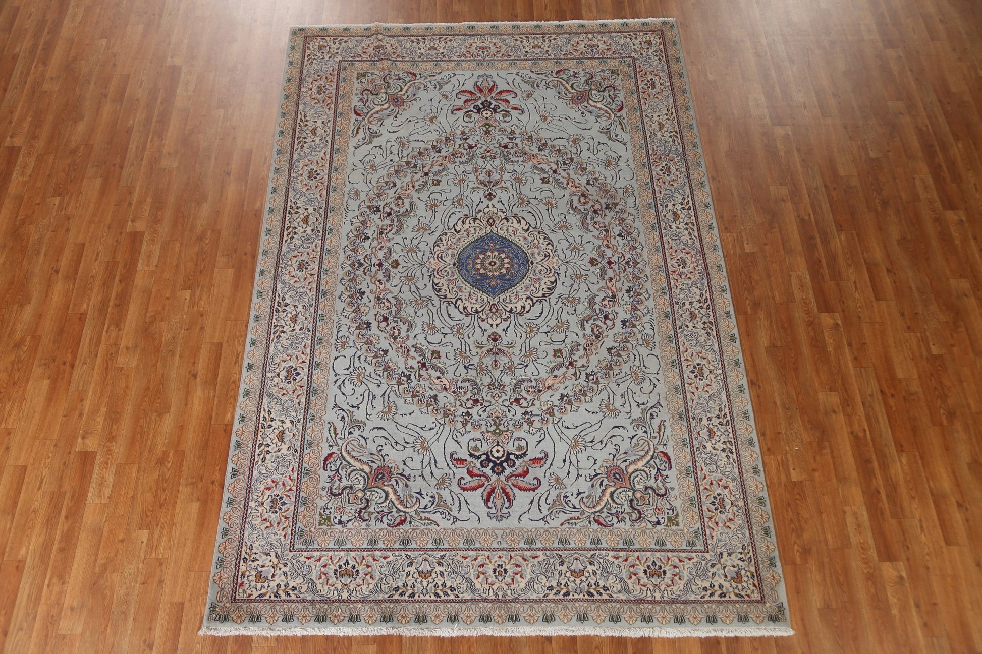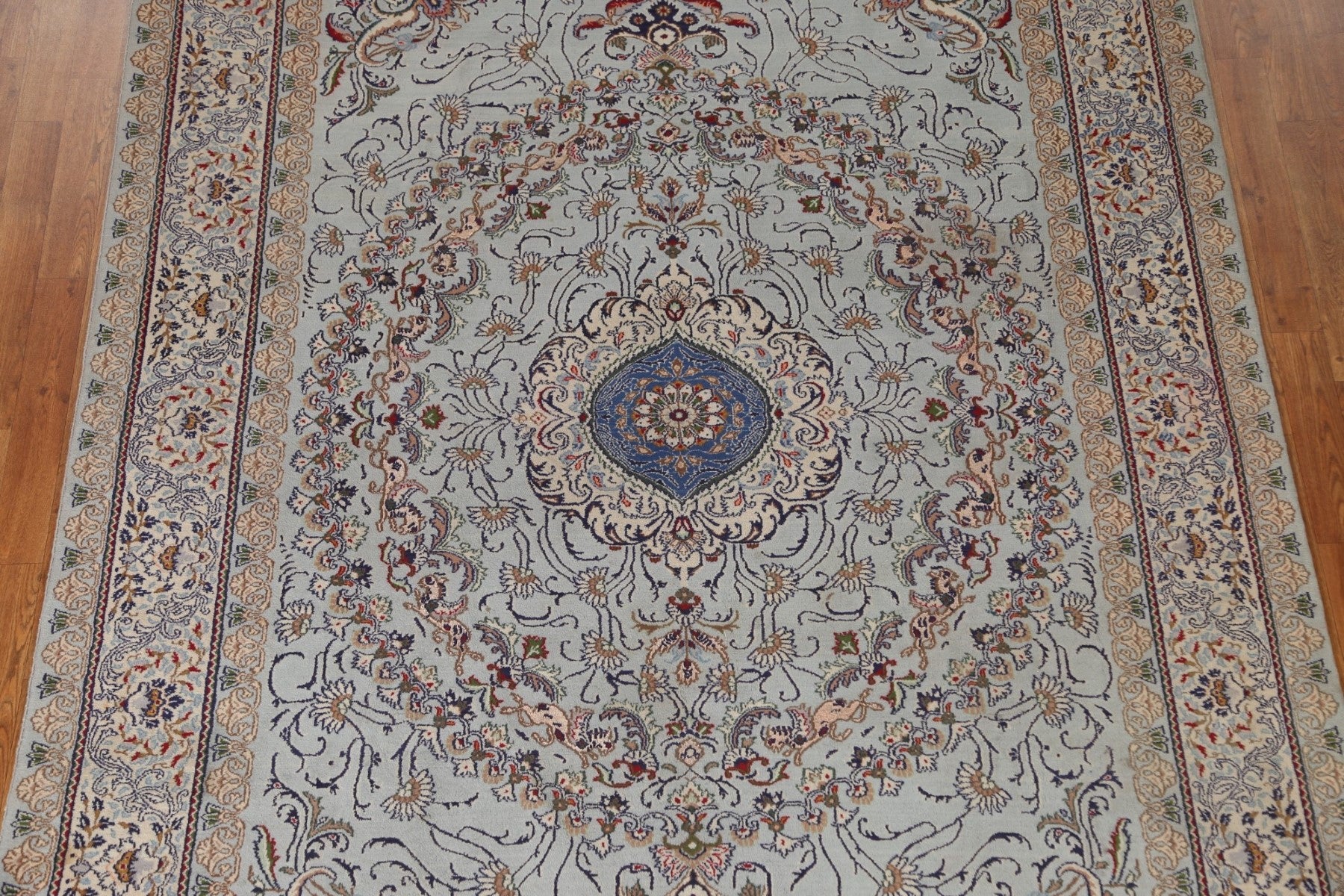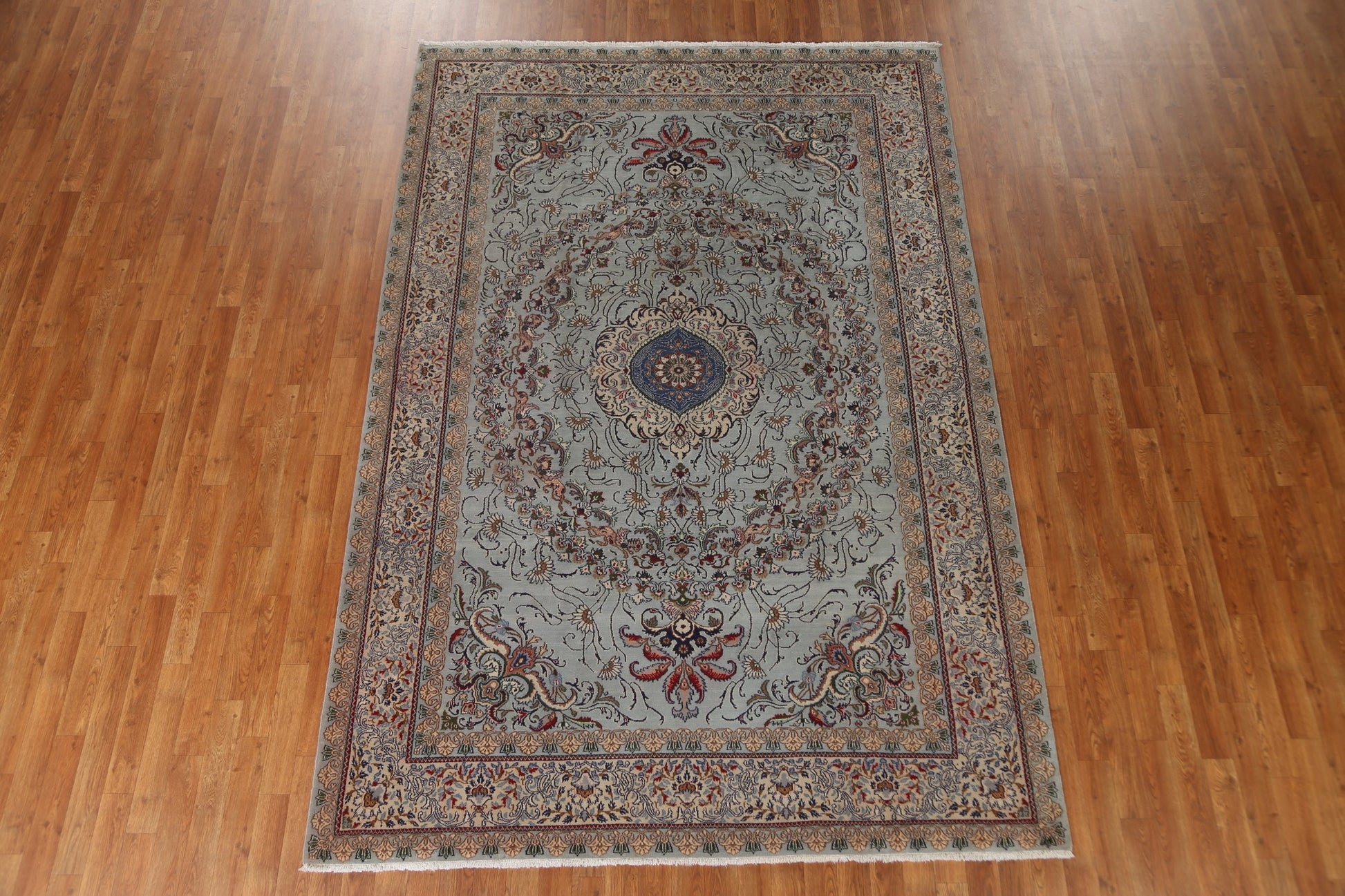 A Beautiful Genuine Persia ( Persia ) Kashan rug is Hand Knotted by skillful weavers in Persia ( Persia ) with 100% Wool Material. This rug is in Very Good condition. dimensions are 9' 6'' X 6' 6'' in foot and 290 X 198 in centimeter. the primary color is Greys & Charcoal.