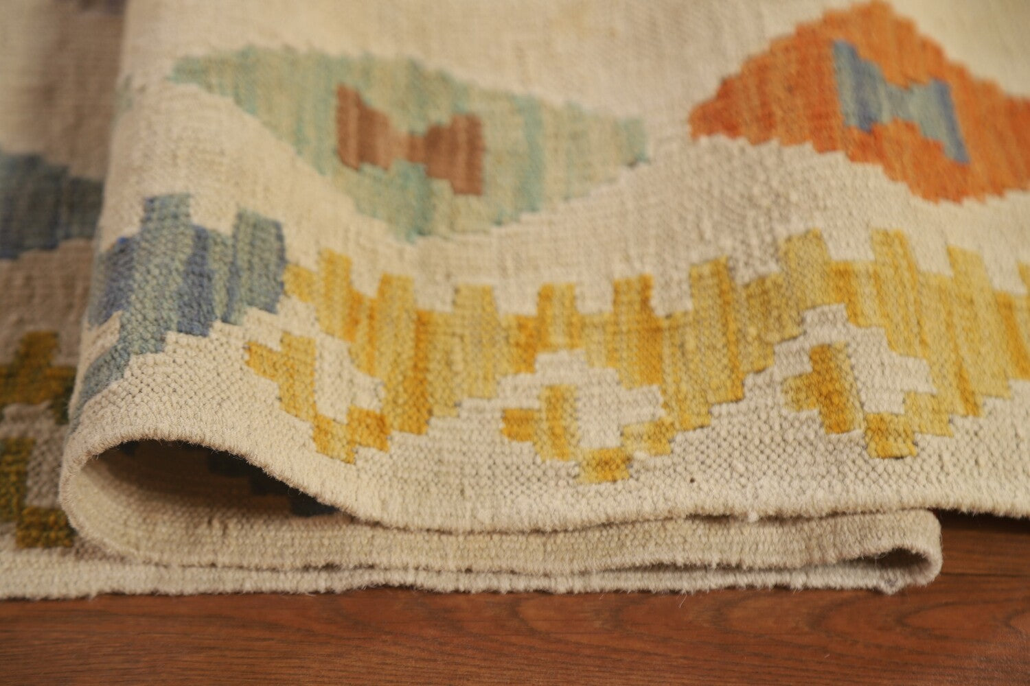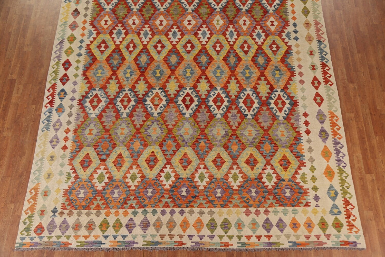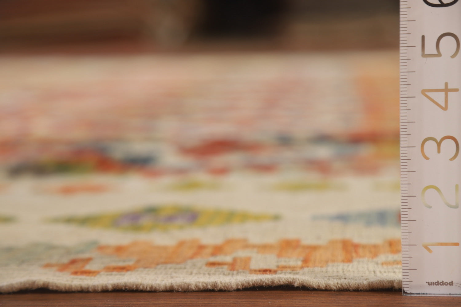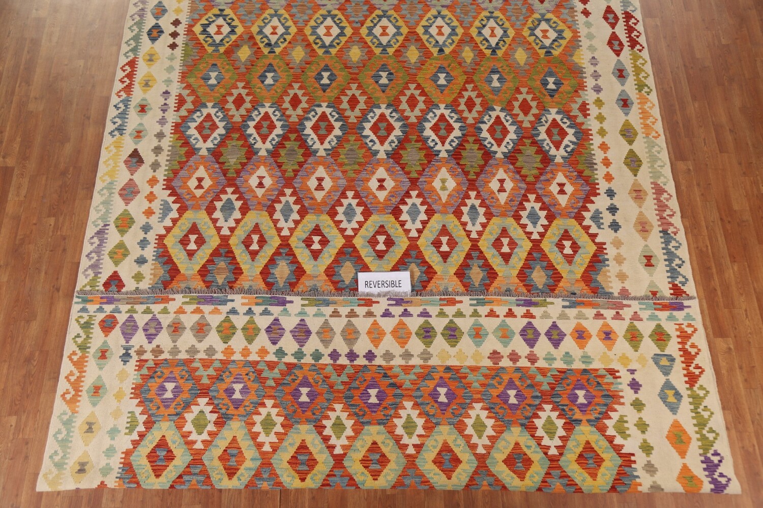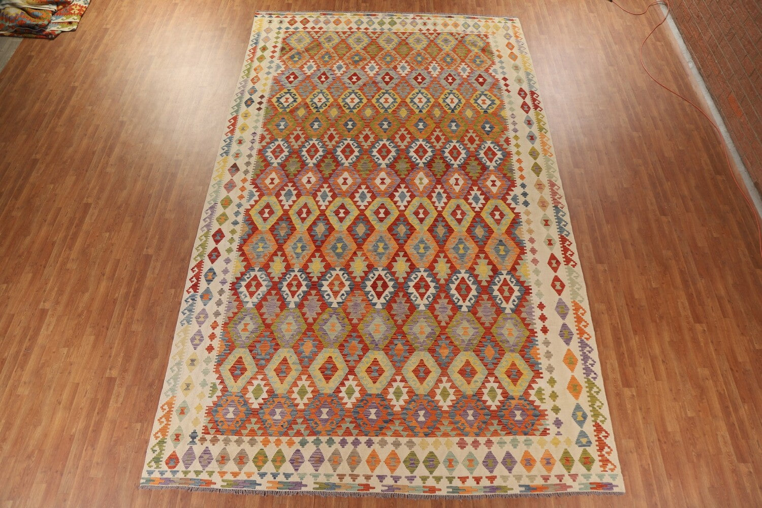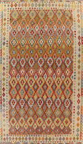 A Beautiful Genuine Pakistan Kilim rug is Hand Woven by skillful weavers in Pakistan with 100% Wool Material. This rug is in New, First Quality condition. dimensions are 16' 6'' X 9' 11'' in foot and 503 X 302 in centimeter. the primary color is Multi-Colored.